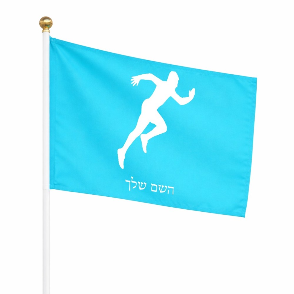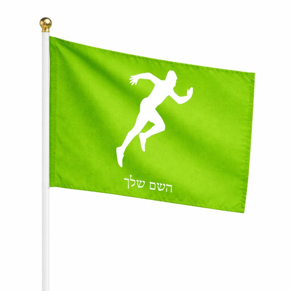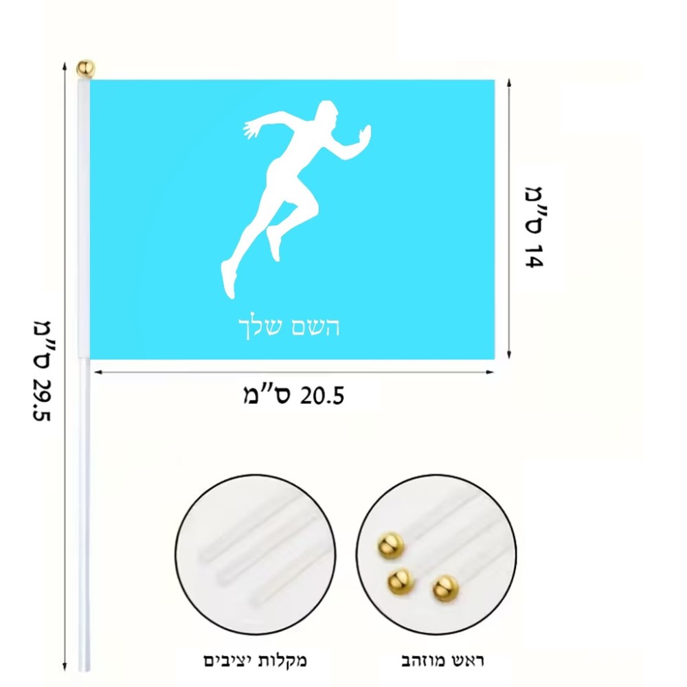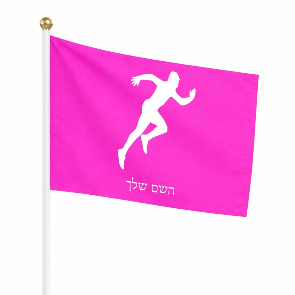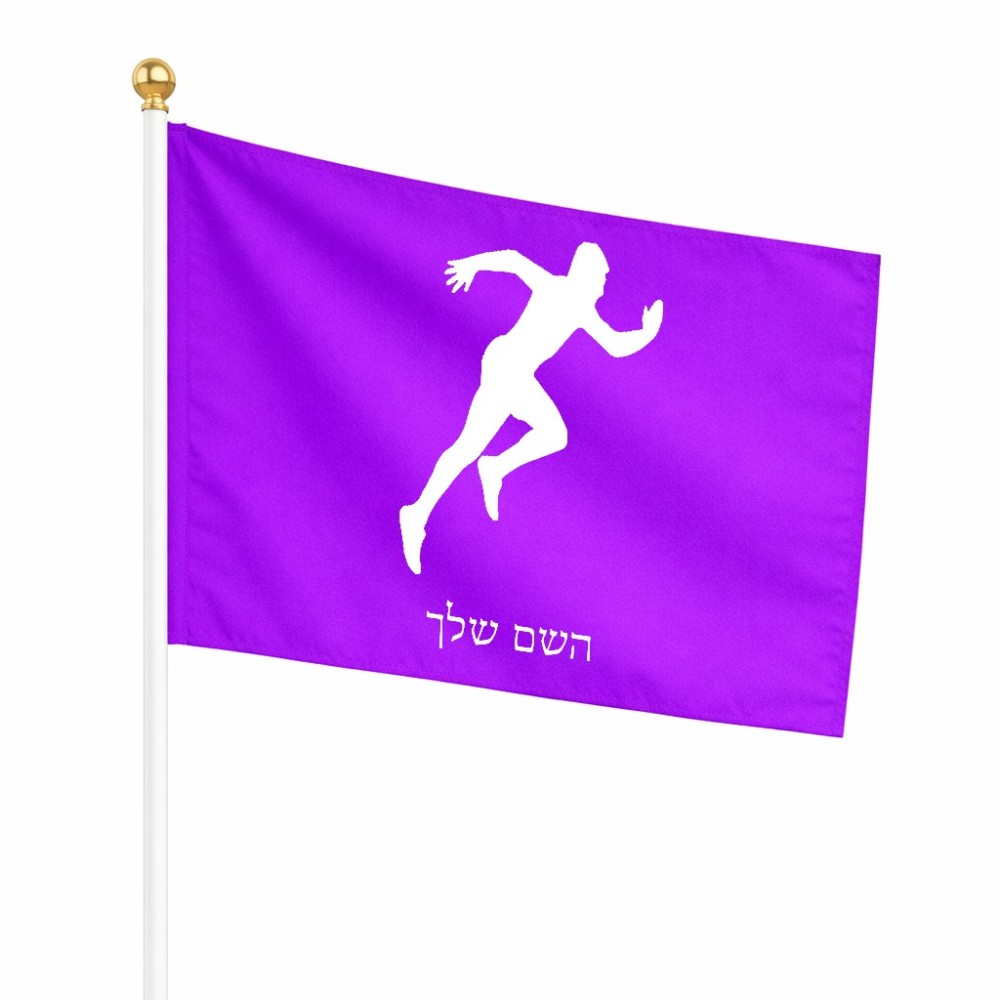 דיגלון בעיצוב אישי עם השם שלך בעיצוב רץ גודל הדיגלון 20.5 × 14 ס"מ, ההדפסה מתבצעת בשני צידי הדגל, את השם המבוקש ניתן לציין בהזמנה, אם לא צויין אנחנו ניצור קשר לבירור.