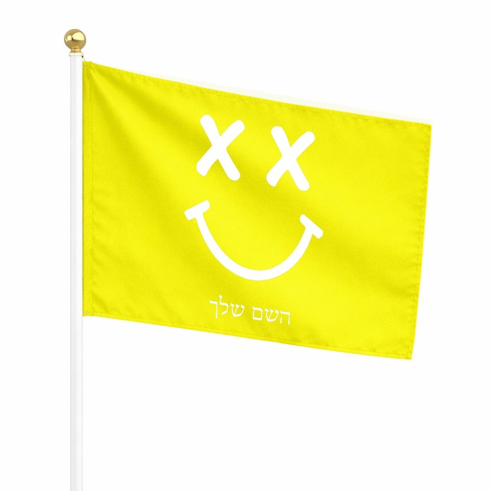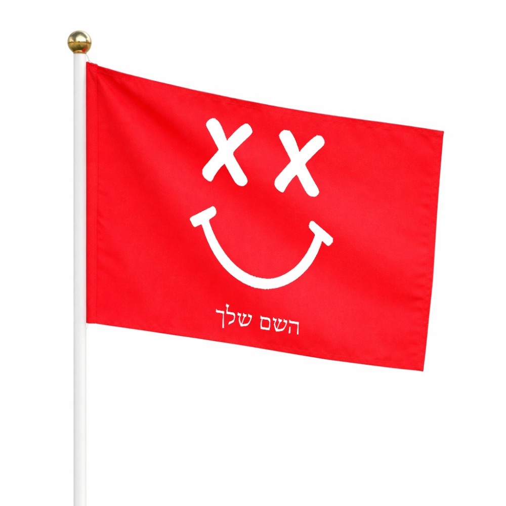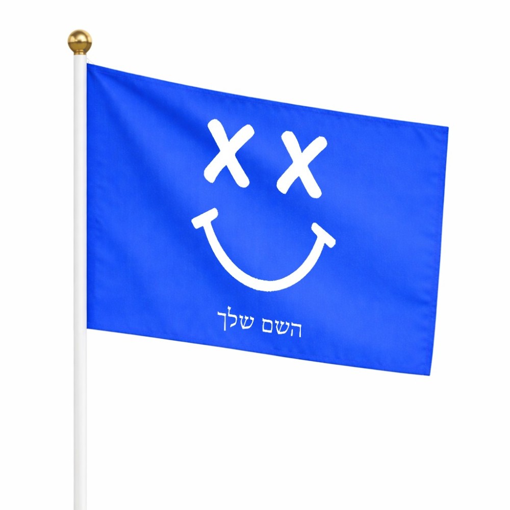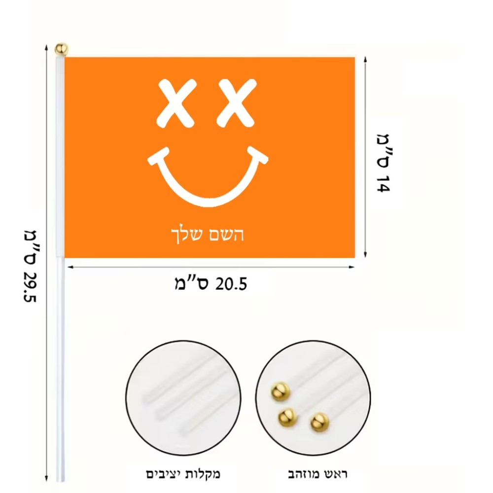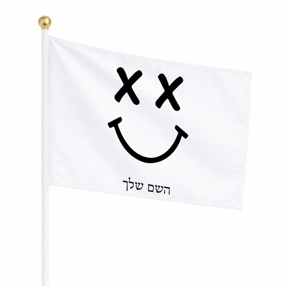 דיגלון בעיצוב אישי עם השם שלך בעיצוב סמיילי גודל הדיגלון 20.5 × 14 ס"מ, ההדפסה מתבצעת בשני צידי הדגל, את השם המבוקש ניתן לציין בהזמנה, אם לא צויין אנחנו ניצור קשר לבירור.