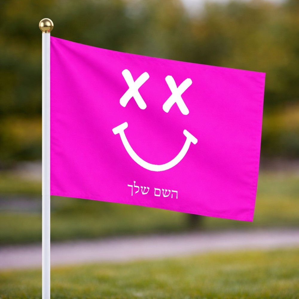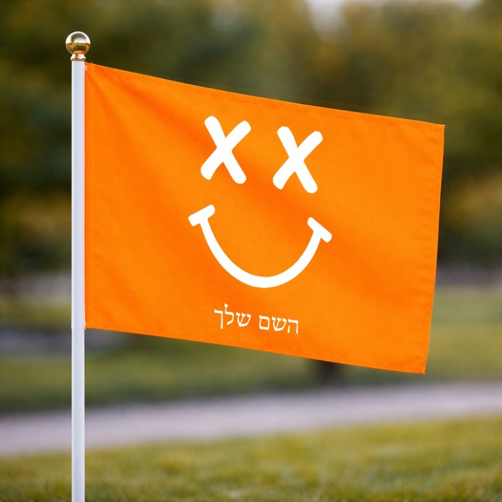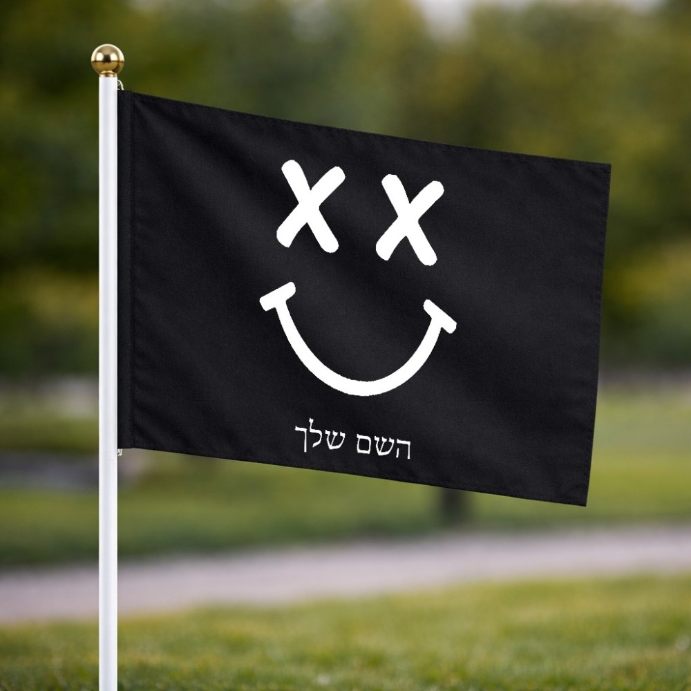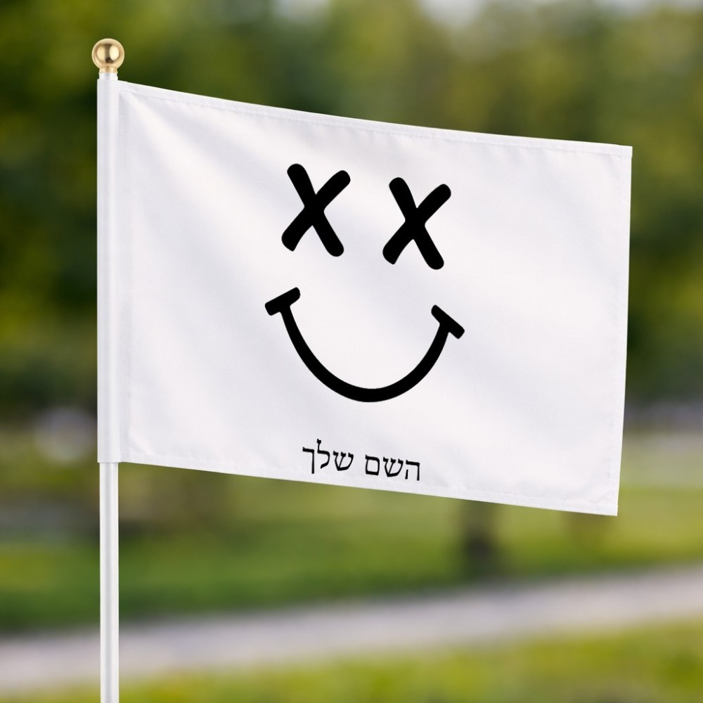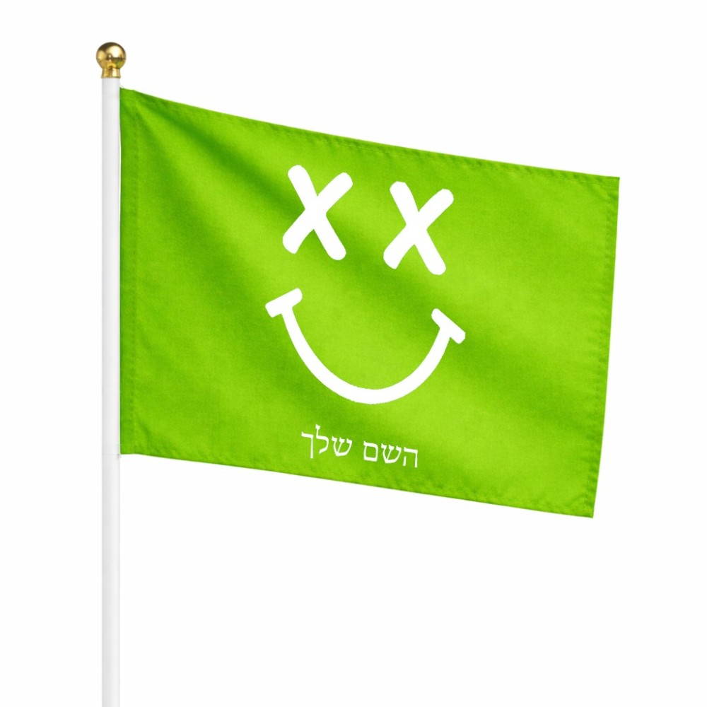 דיגלון בעיצוב אישי עם השם שלך בעיצוב סמיילי גודל הדיגלון 20.5 × 14 ס"מ, ההדפסה מתבצעת בשני צידי הדגל, את השם המבוקש ניתן לציין בהזמנה, אם לא צויין אנחנו ניצור קשר לבירור.