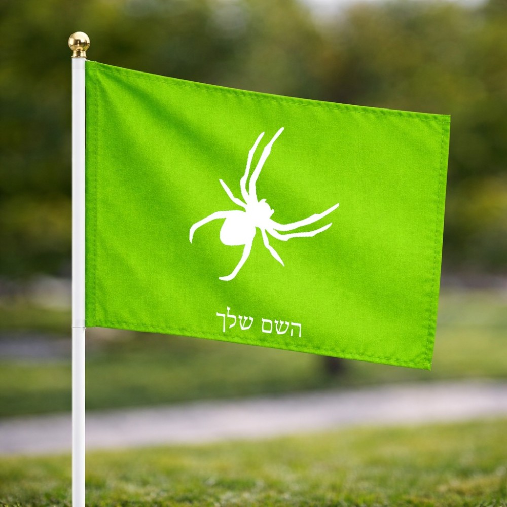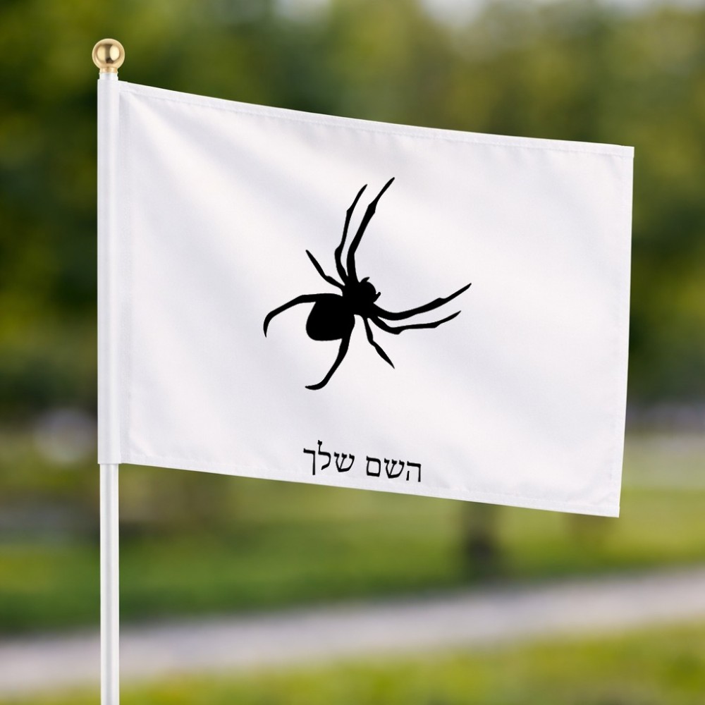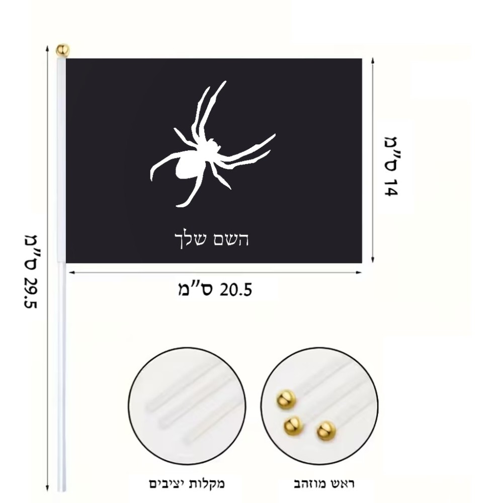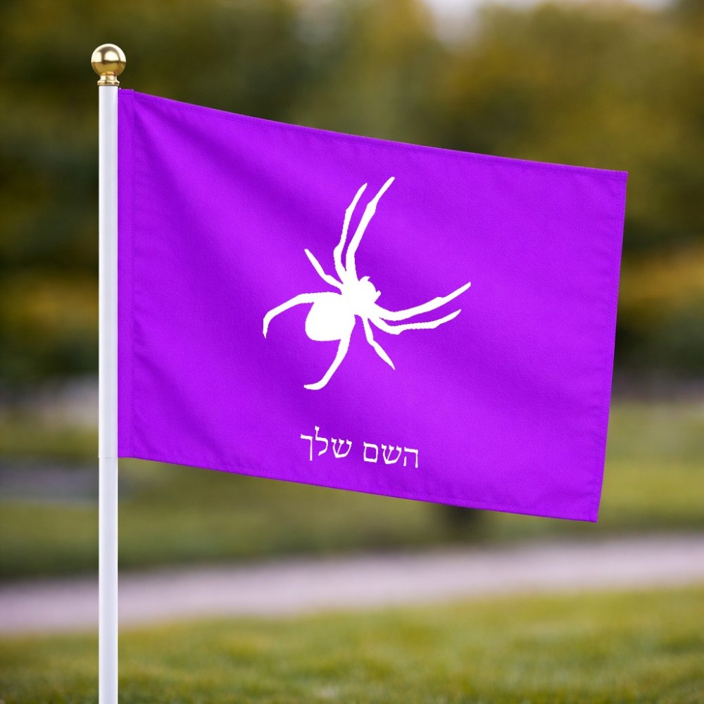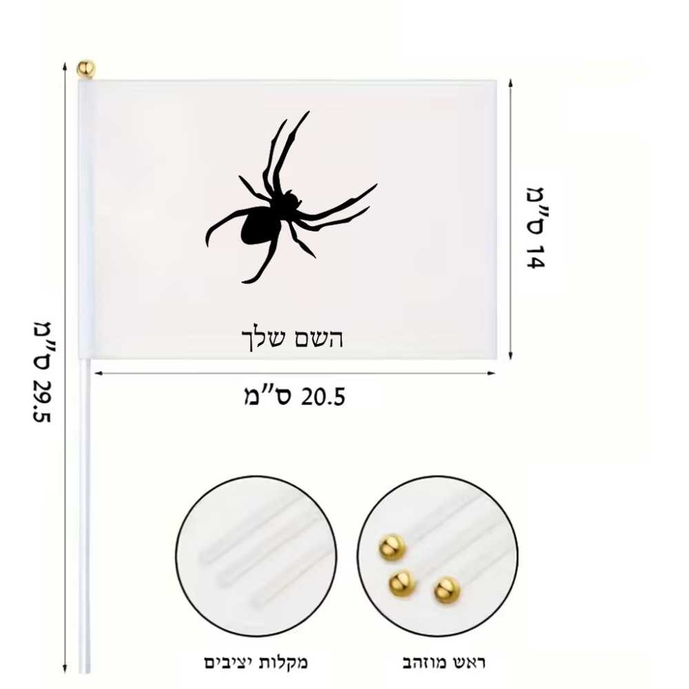 דיגלון בעיצוב אישי עם השם שלך בעיצוב עכביש גודל הדיגלון 20.5 × 14 ס"מ, ההדפסה מתבצעת בשני צידי הדגל, את השם המבוקש ניתן לציין בהזמנה, אם לא צויין אנחנו ניצור קשר לבירור.