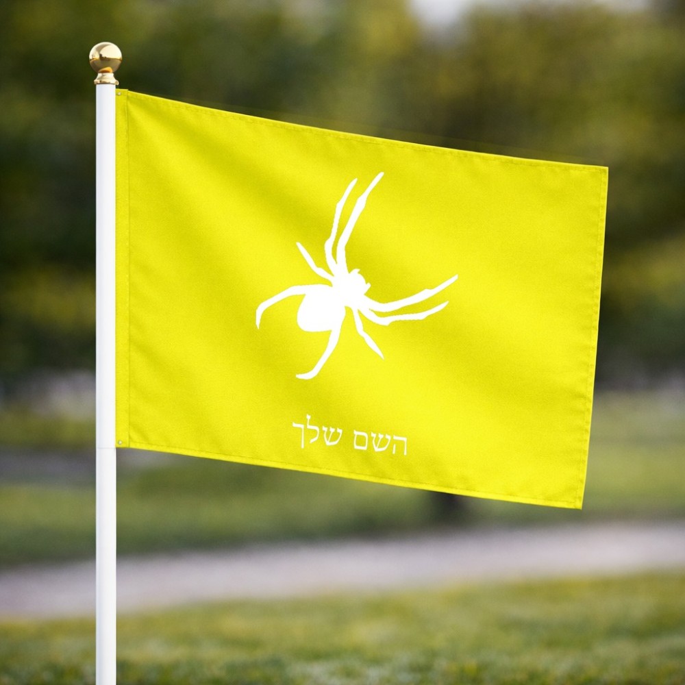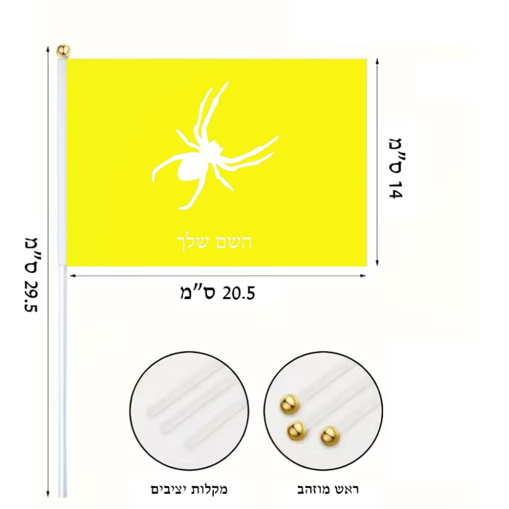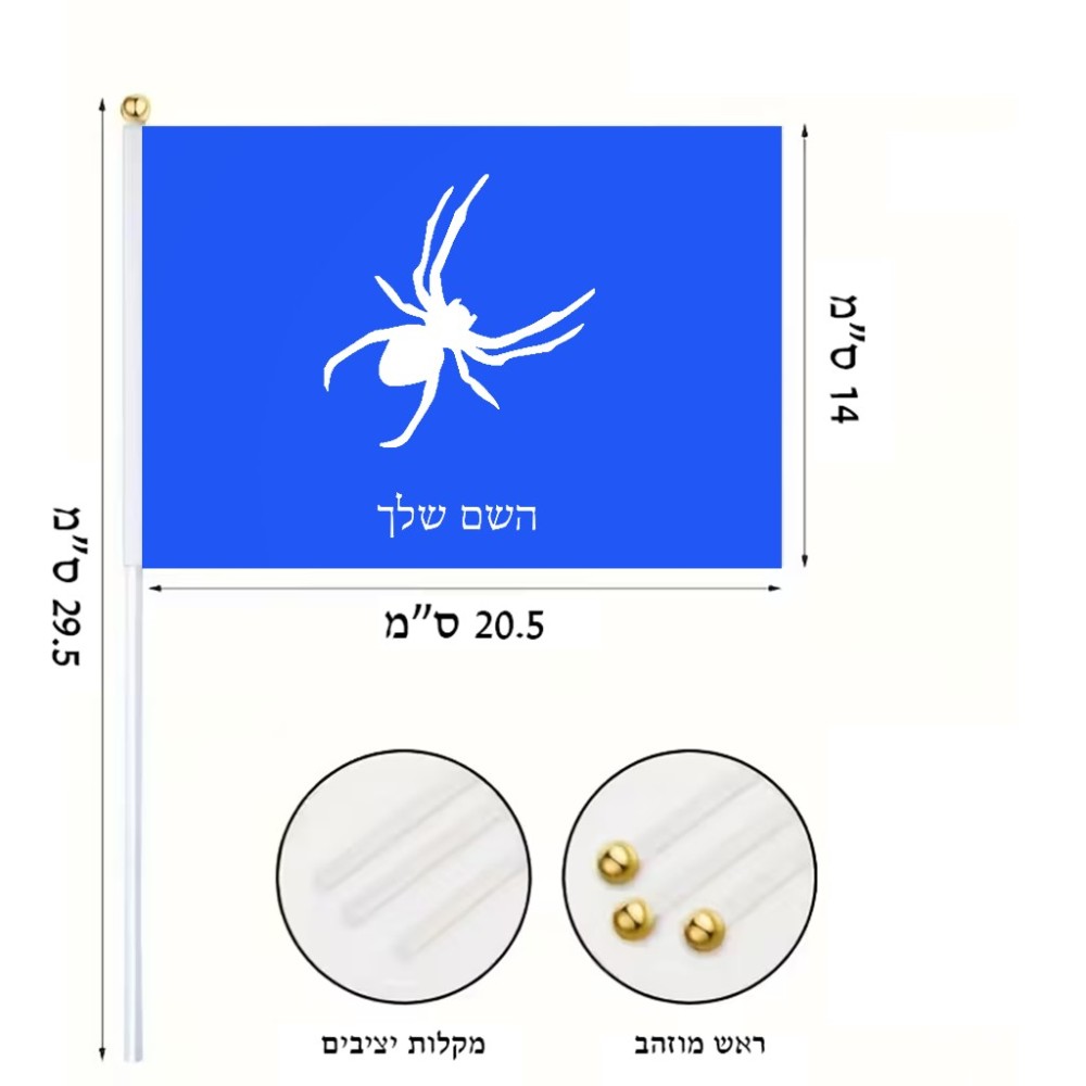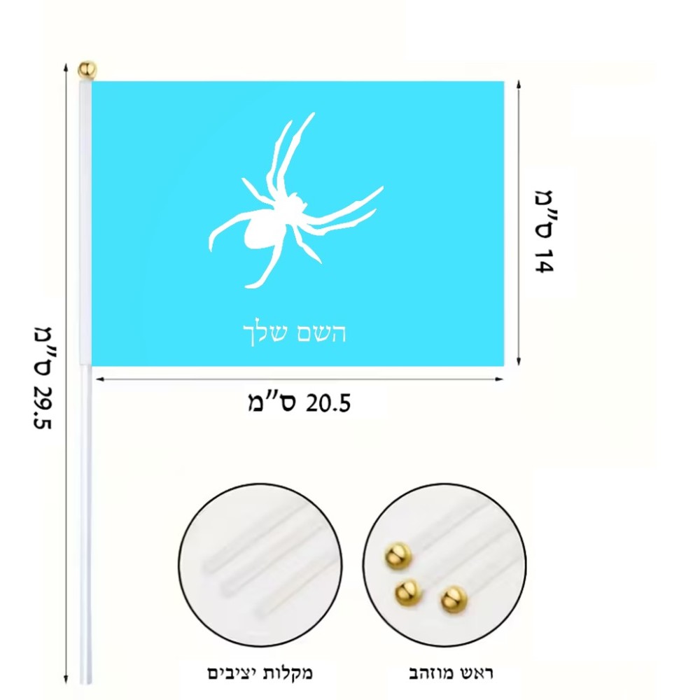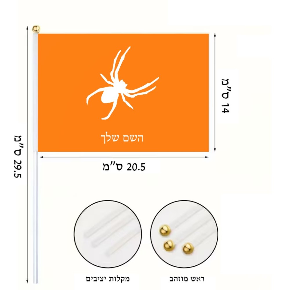 דיגלון בעיצוב אישי עם השם שלך בעיצוב עכביש גודל הדיגלון 20.5 × 14 ס"מ, ההדפסה מתבצעת בשני צידי הדגל, את השם המבוקש ניתן לציין בהזמנה, אם לא צויין אנחנו ניצור קשר לבירור.