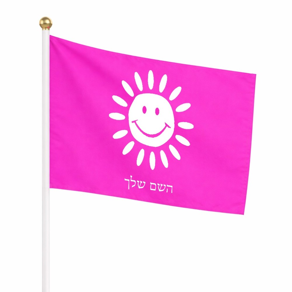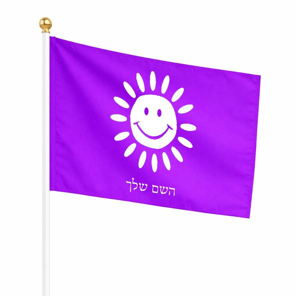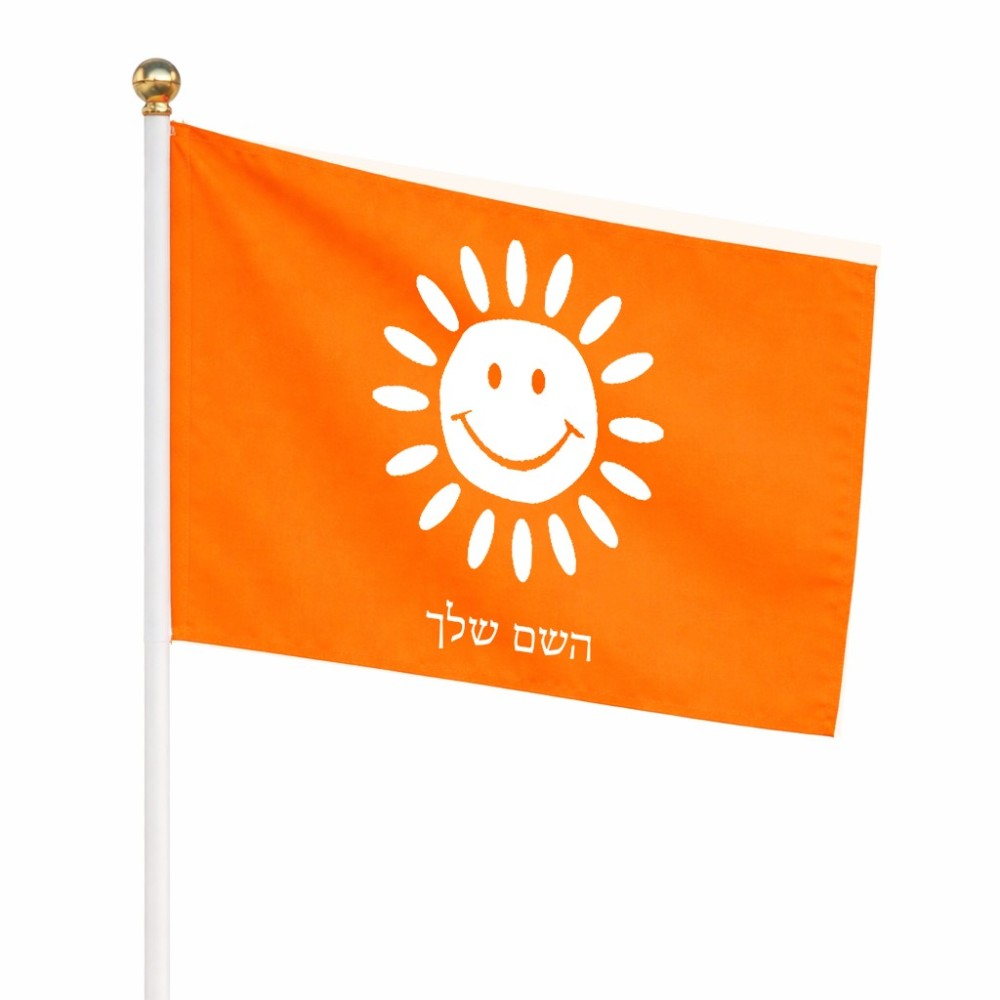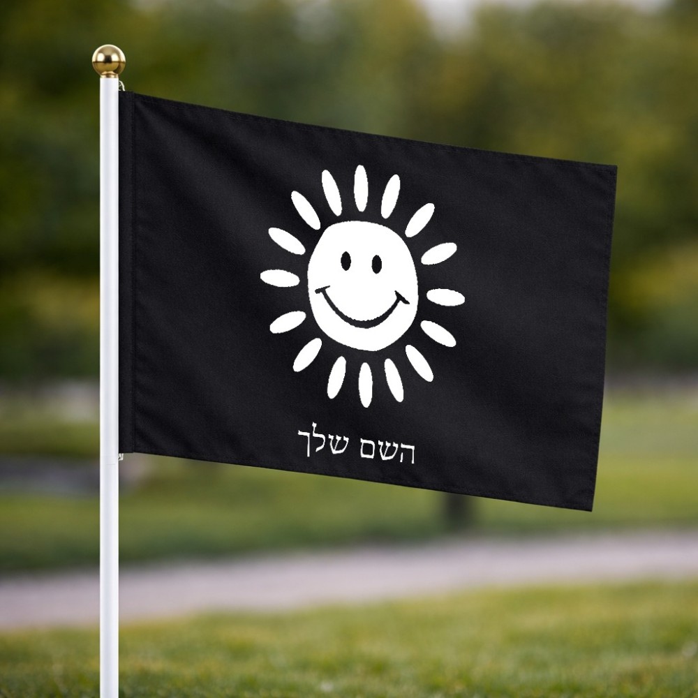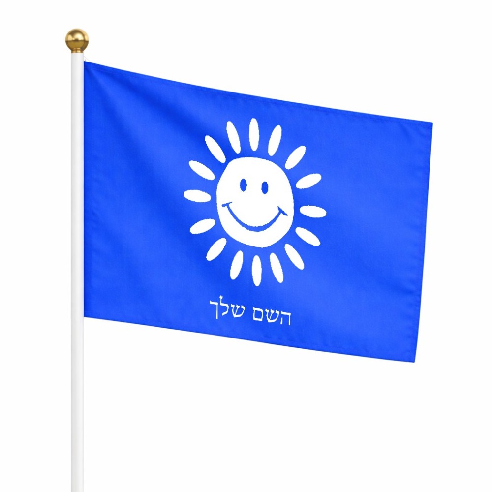 דיגלון בעיצוב אישי עם השם שלך בעיצוב שמש גודל הדיגלון 20.5 × 14 ס"מ, ההדפסה מתבצעת בשני צידי הדגל, את השם המבוקש ניתן לציין בהזמנה, אם לא צויין אנחנו ניצור קשר לבירור.