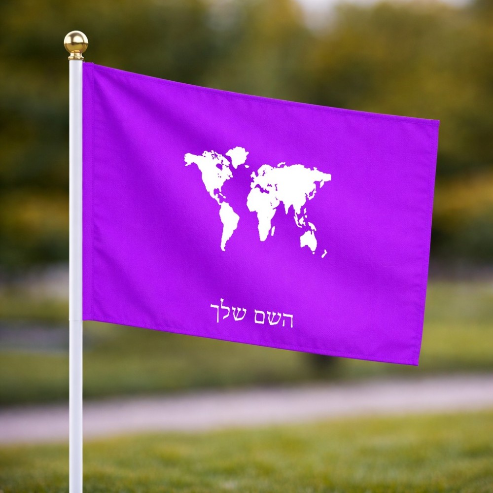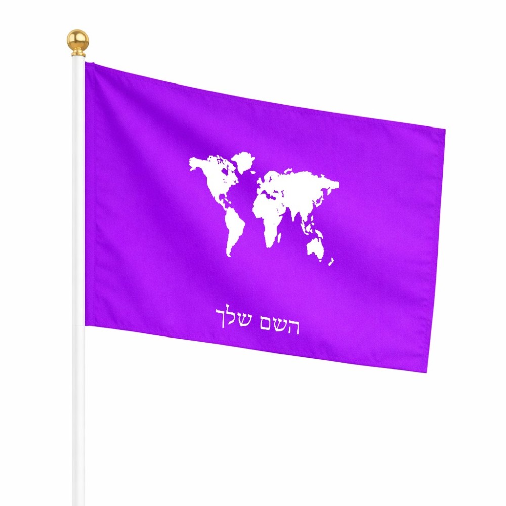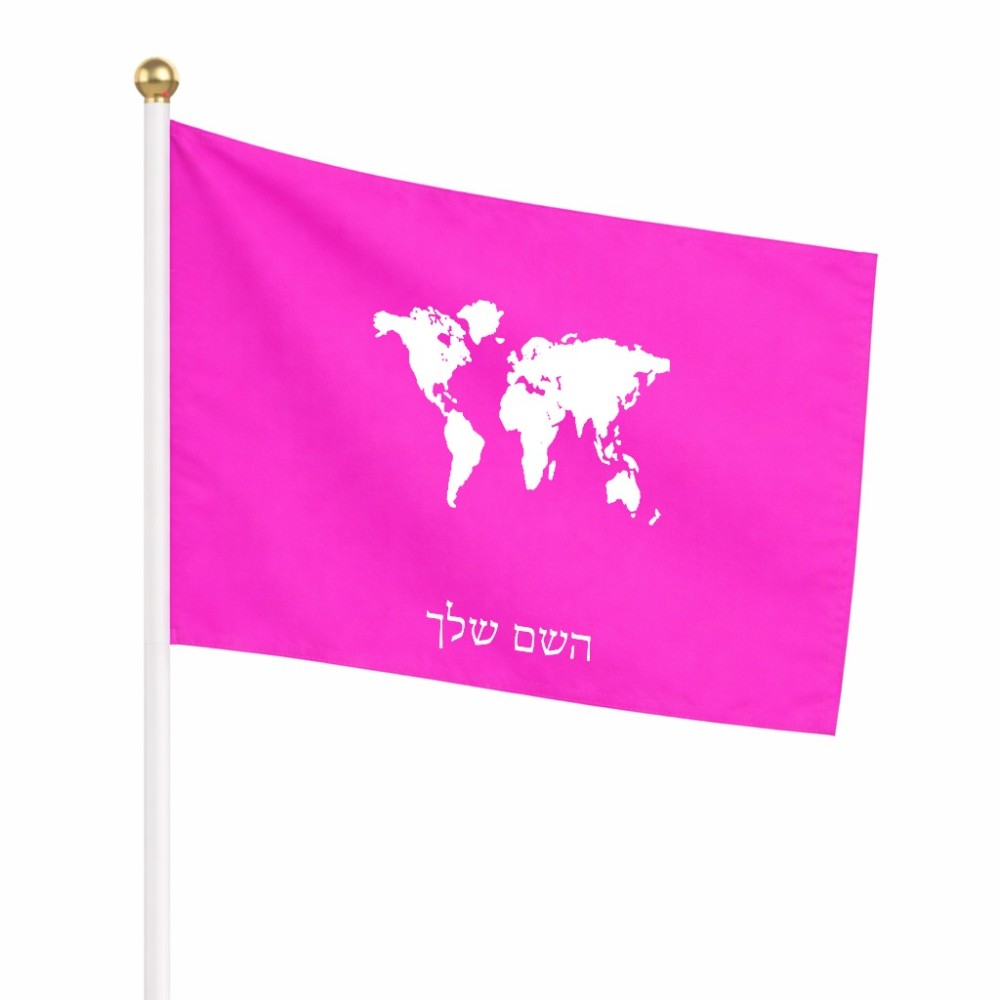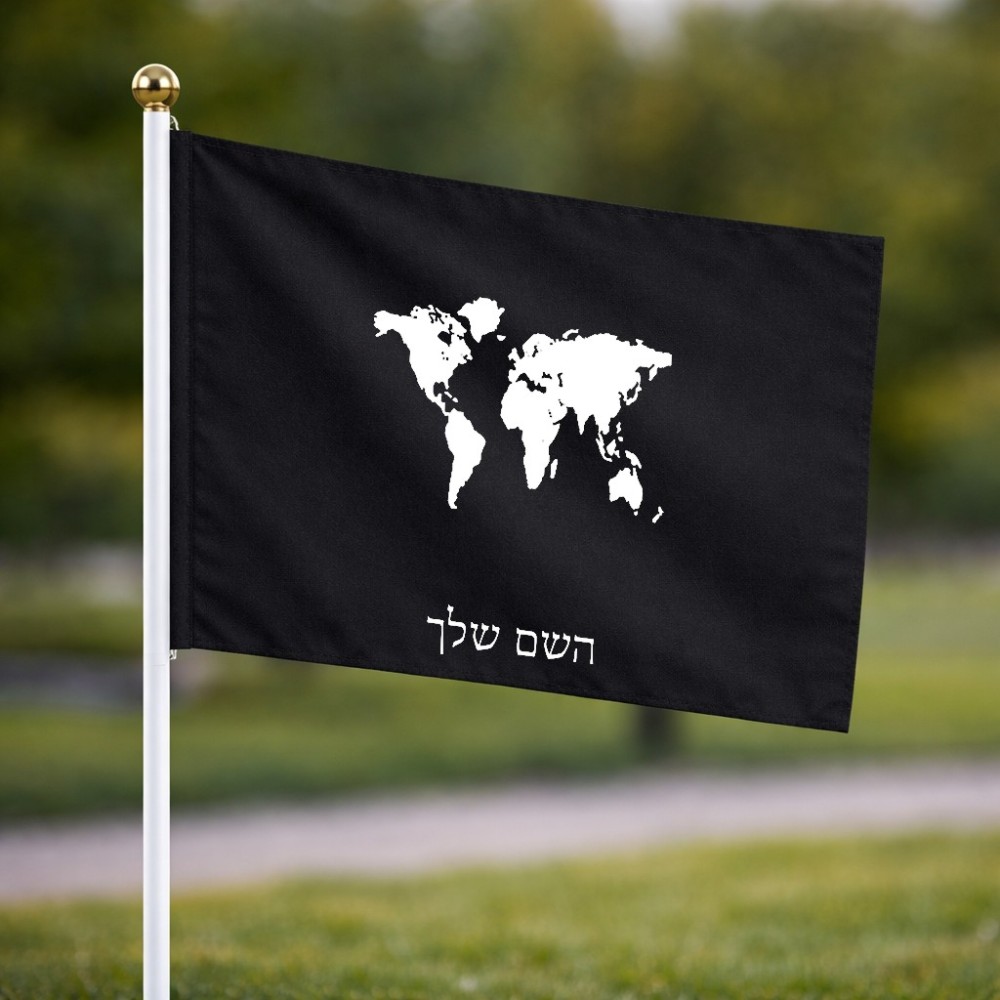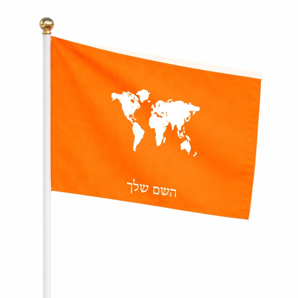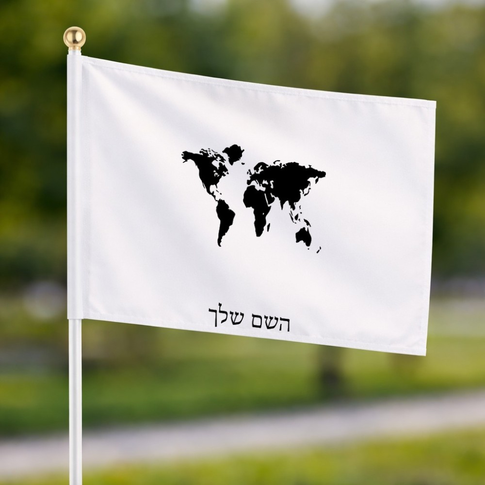 דיגלון בעיצוב אישי עם השם שלך בעיצוב מפת העולם גודל הדיגלון 20.5 × 14 ס"מ, ההדפסה מתבצעת בשני צידי הדגל, את השם המבוקש ניתן לציין בהזמנה, אם לא צויין אנחנו ניצור קשר לבירור.