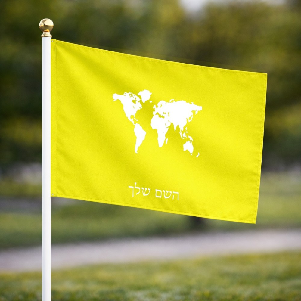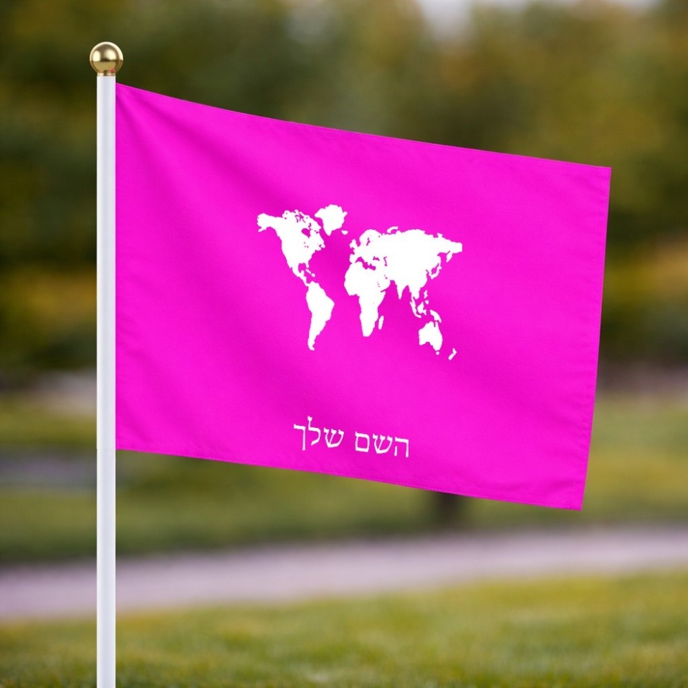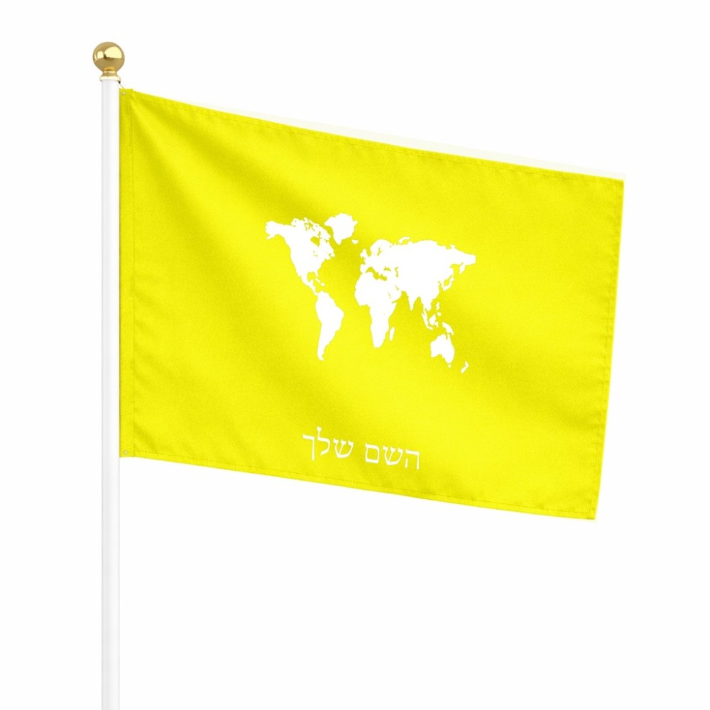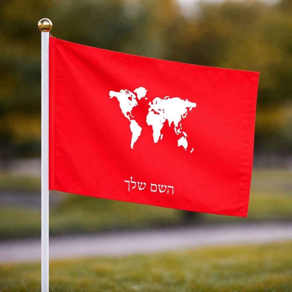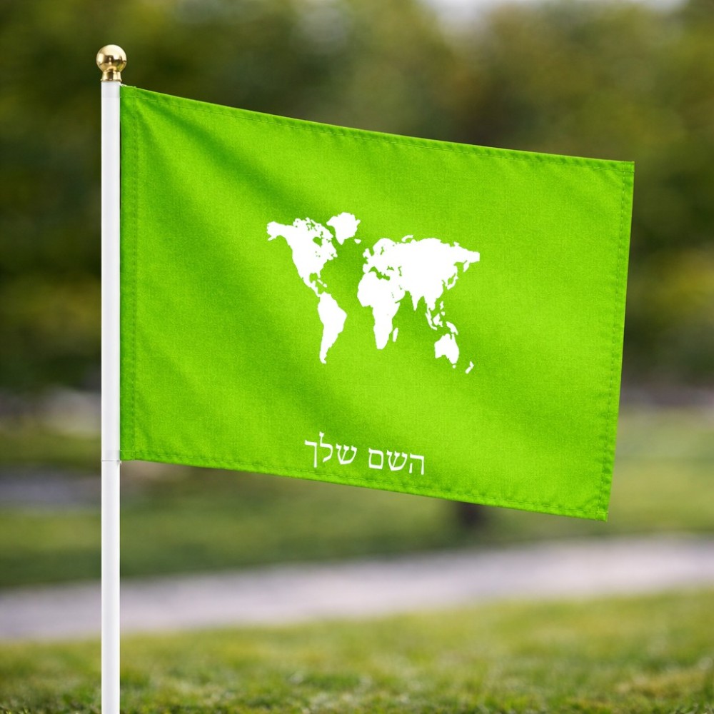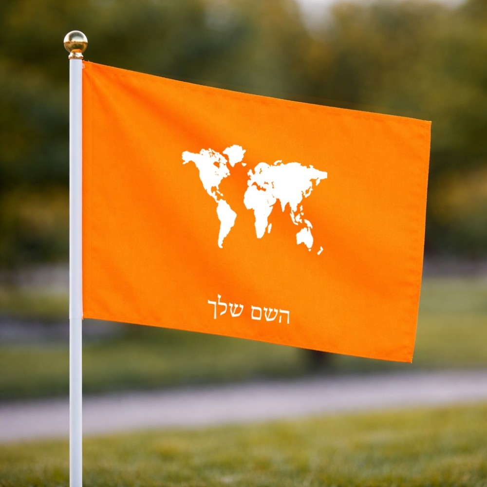 דיגלון בעיצוב אישי עם השם שלך בעיצוב מפת העולם גודל הדיגלון 20.5 × 14 ס"מ, ההדפסה מתבצעת בשני צידי הדגל, את השם המבוקש ניתן לציין בהזמנה, אם לא צויין אנחנו ניצור קשר לבירור.