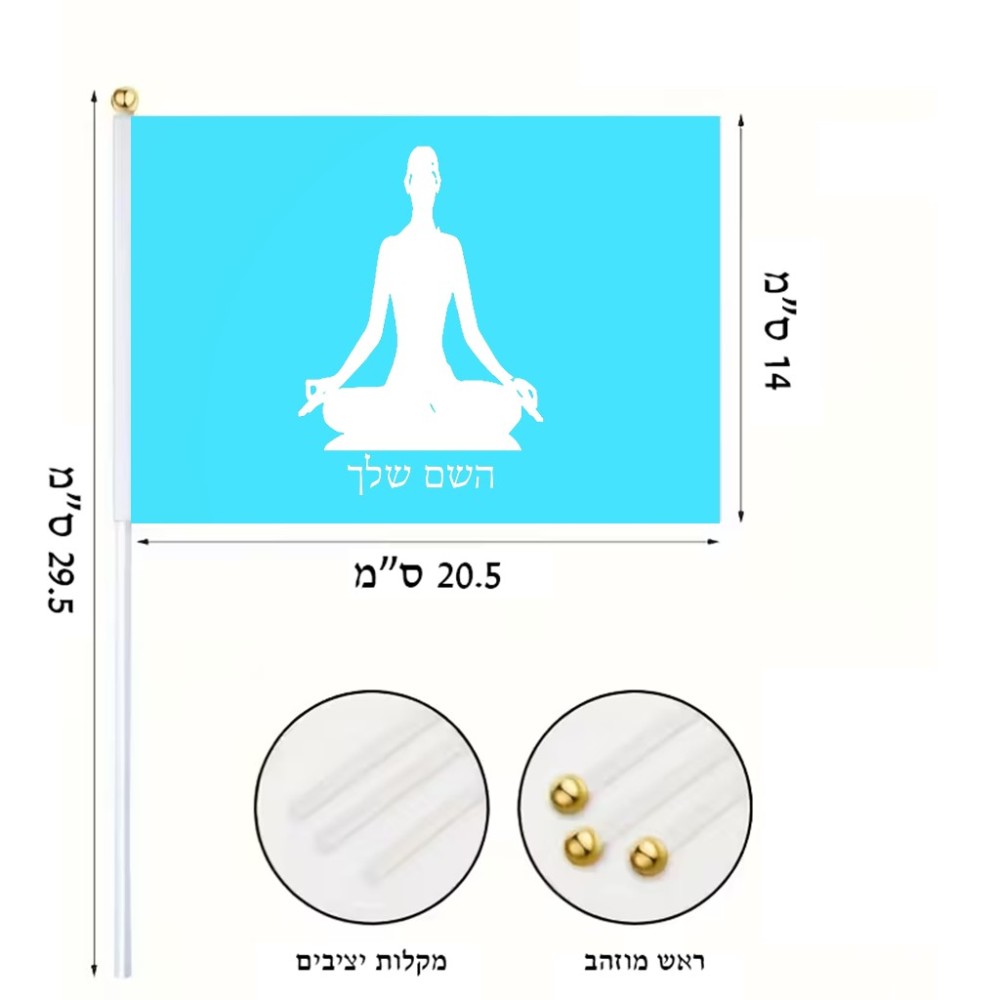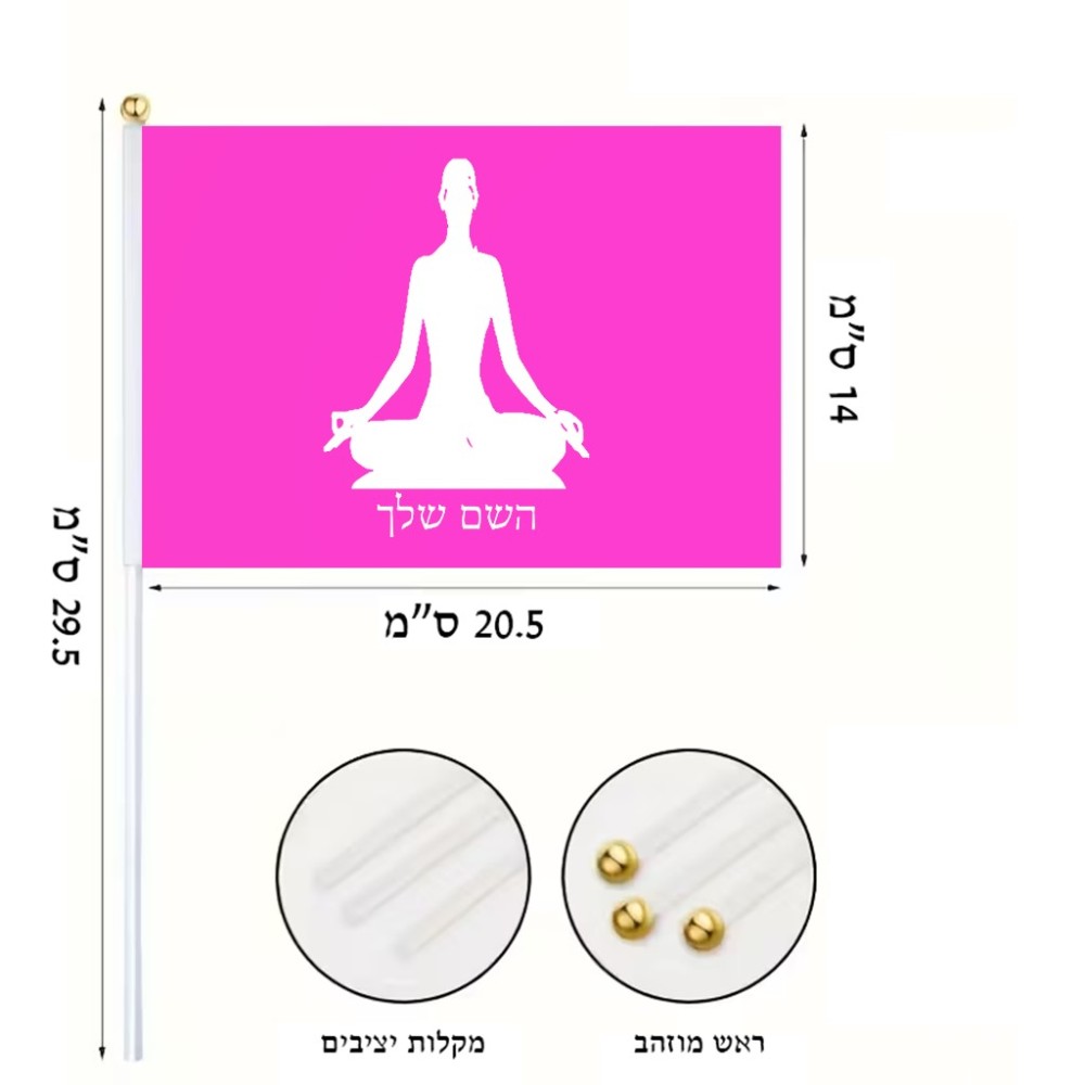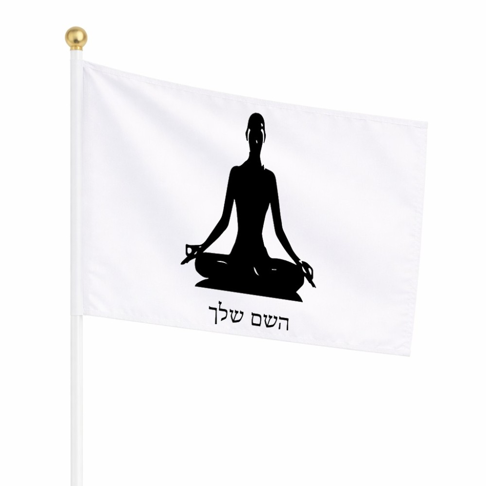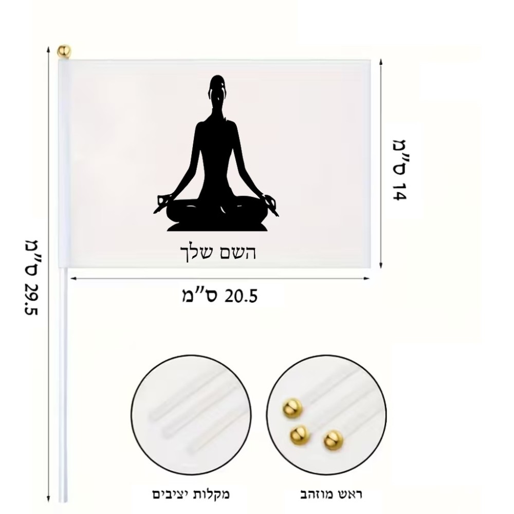 דיגלון בעיצוב אישי עם השם שלך בעיצוב אימון יוגה גודל הדיגלון 20.5 × 14 ס"מ, ההדפסה מתבצעת בשני צידי הדגל, את השם המבוקש ניתן לציין בהזמנה, אם לא צויין אנחנו ניצור קשר לבירור.