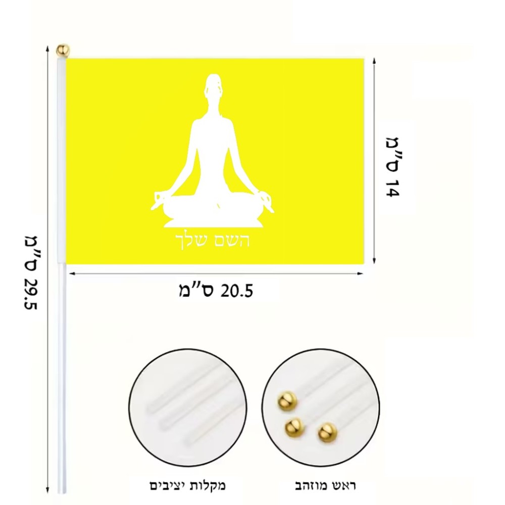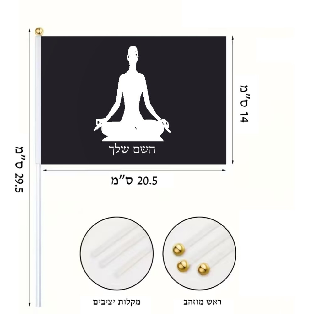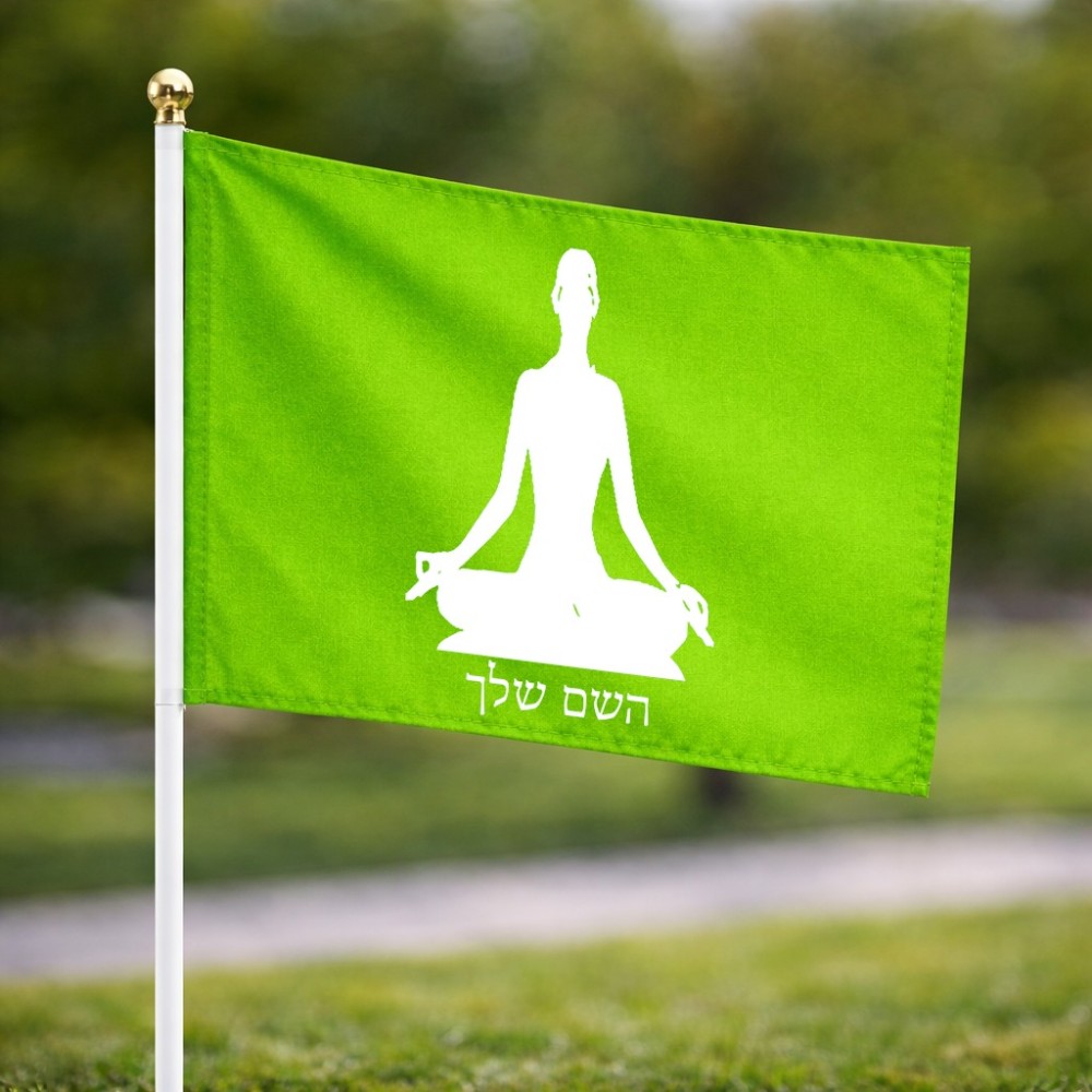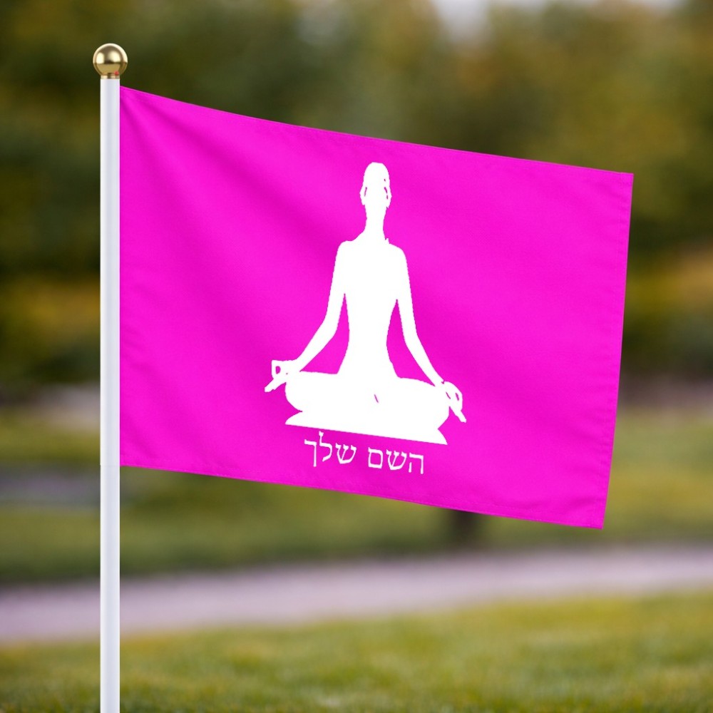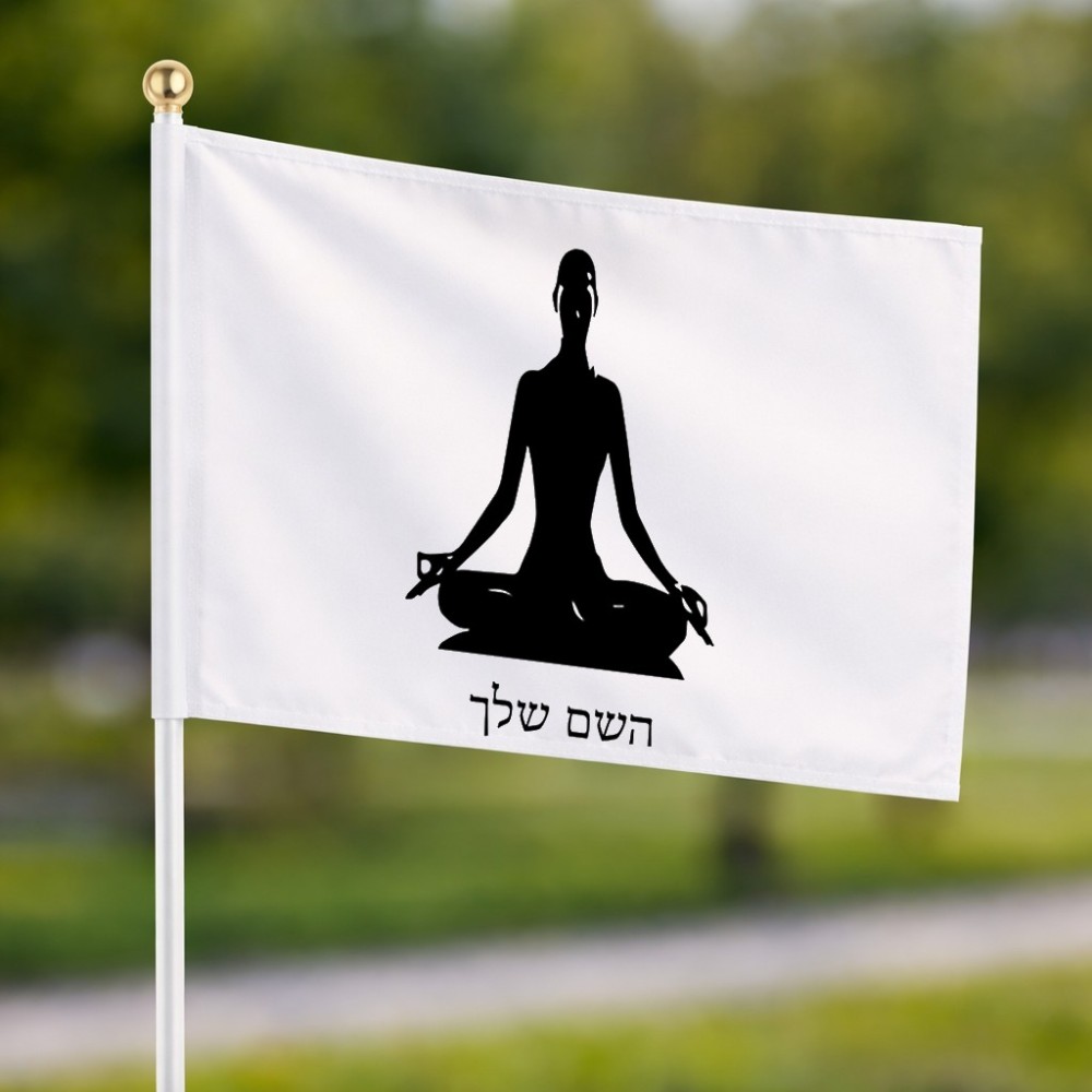 דיגלון בעיצוב אישי עם השם שלך בעיצוב אימון יוגה גודל הדיגלון 20.5 × 14 ס"מ, ההדפסה מתבצעת בשני צידי הדגל, את השם המבוקש ניתן לציין בהזמנה, אם לא צויין אנחנו ניצור קשר לבירור.