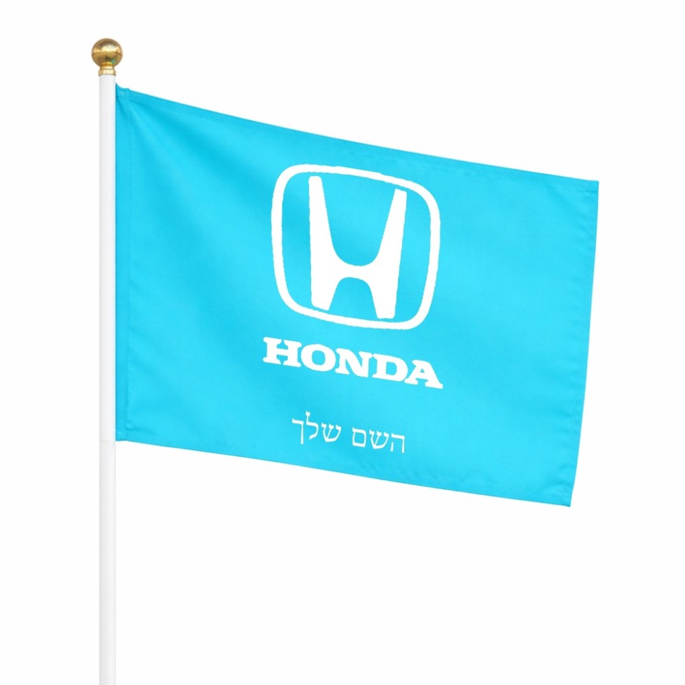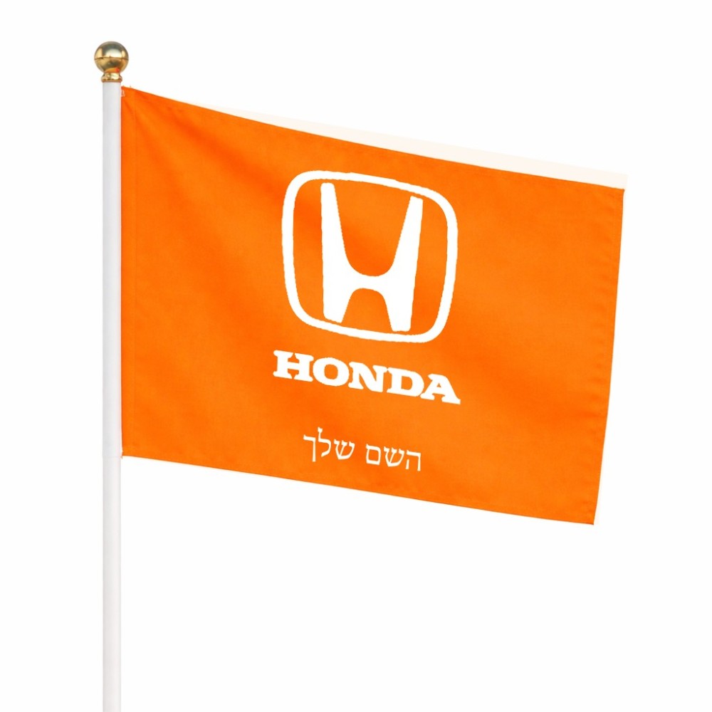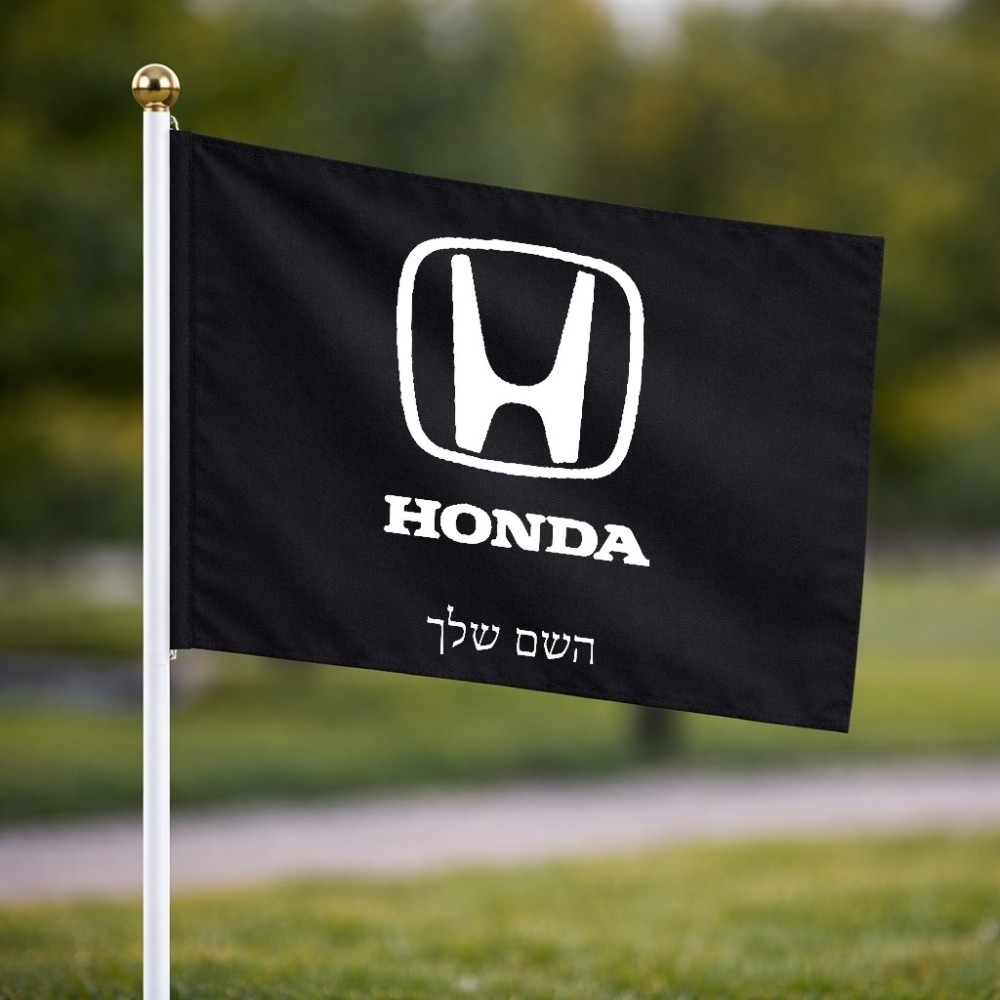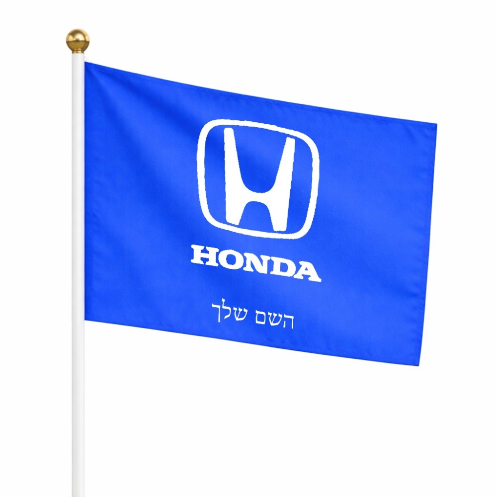 דיגלון בעיצוב אישי עם השם שלך בעיצוב הונדה 2 גודל הדיגלון 20.5 × 14 ס"מ, ההדפסה מתבצעת בשני צידי הדגל, את השם המבוקש ניתן לציין בהזמנה, אם לא צויין אנחנו ניצור קשר לבירור.