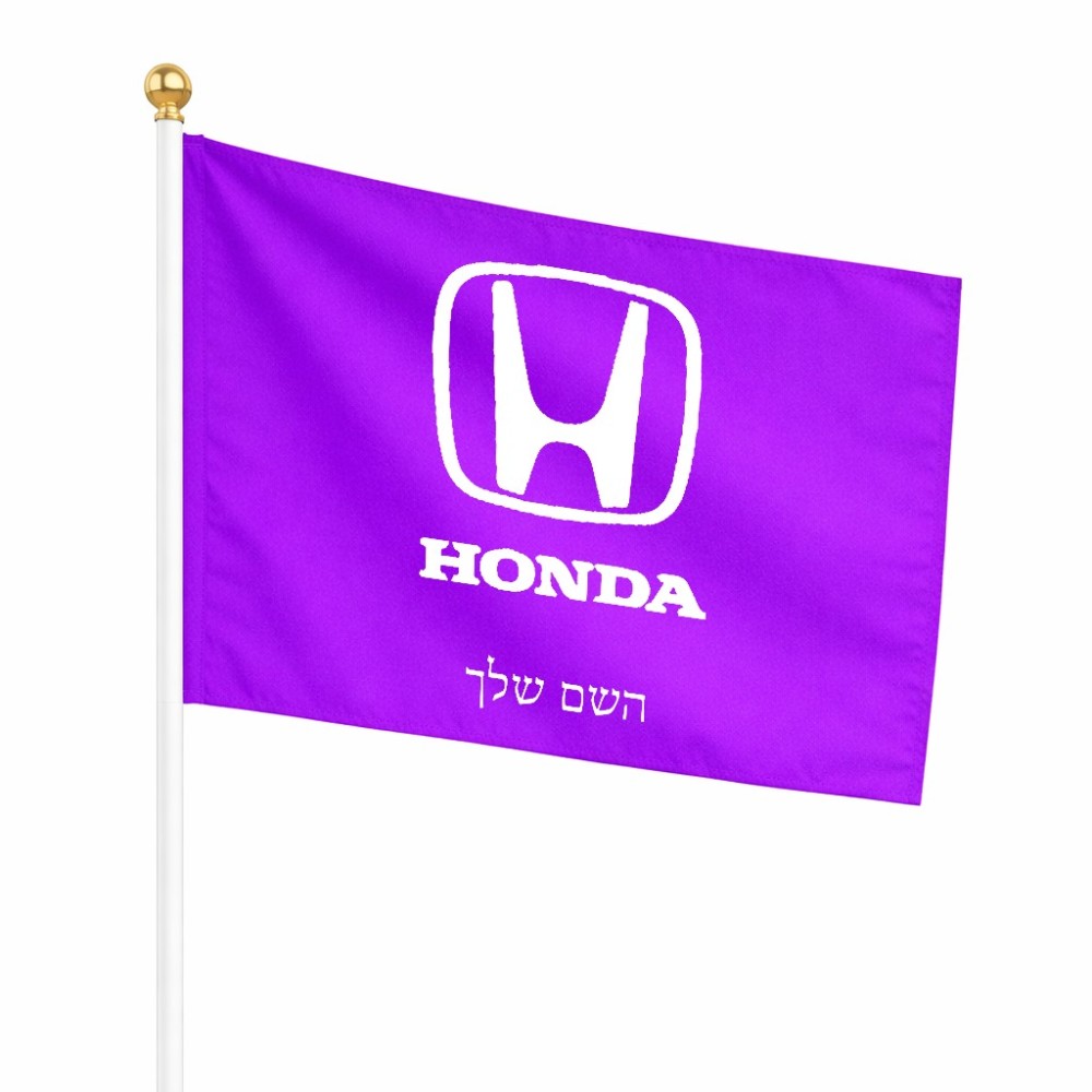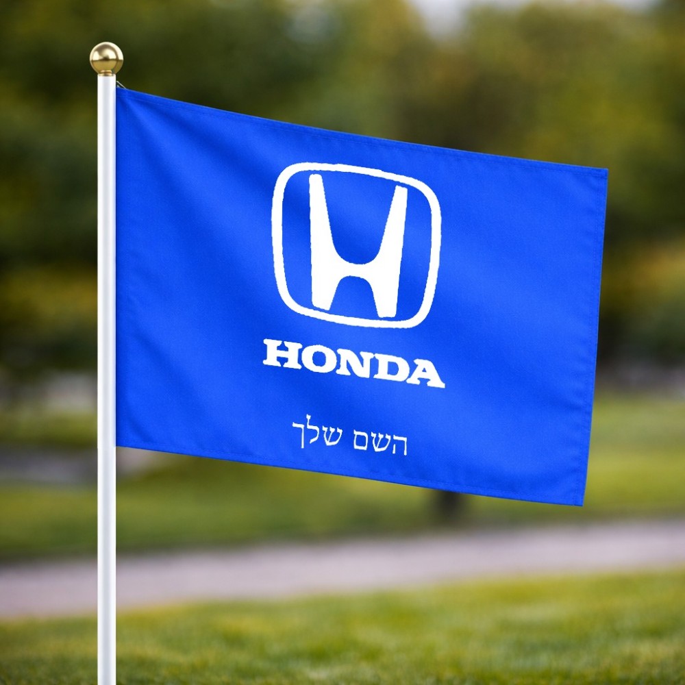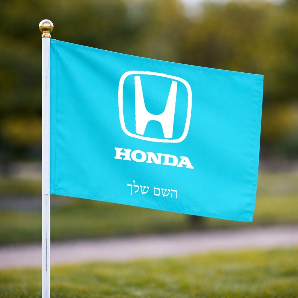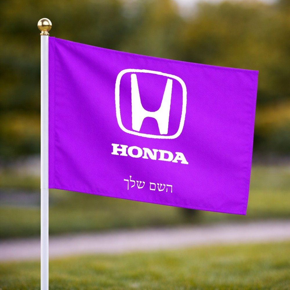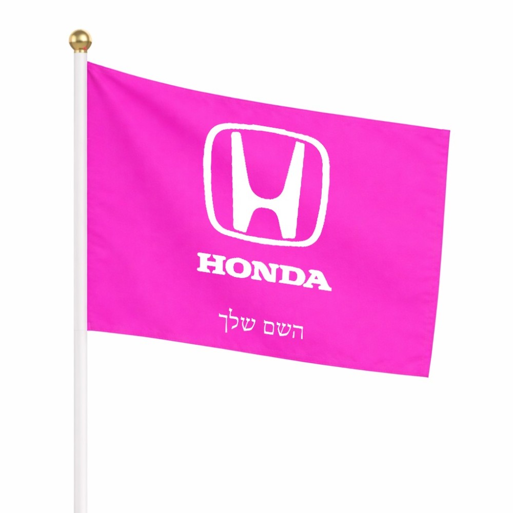 דיגלון בעיצוב אישי עם השם שלך בעיצוב הונדה 2 גודל הדיגלון 20.5 × 14 ס"מ, ההדפסה מתבצעת בשני צידי הדגל, את השם המבוקש ניתן לציין בהזמנה, אם לא צויין אנחנו ניצור קשר לבירור.