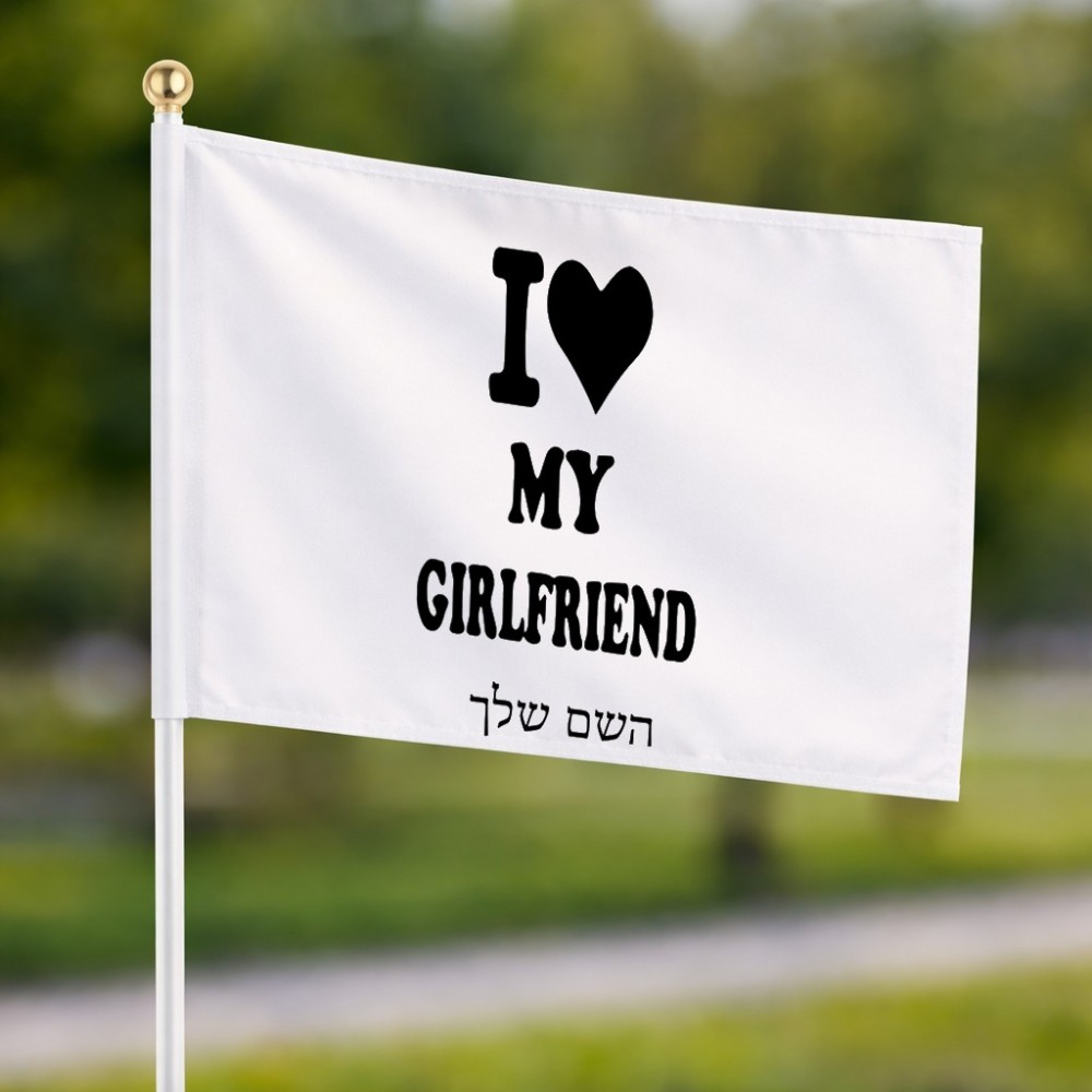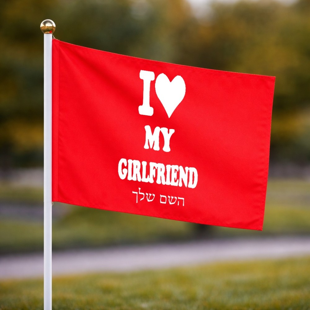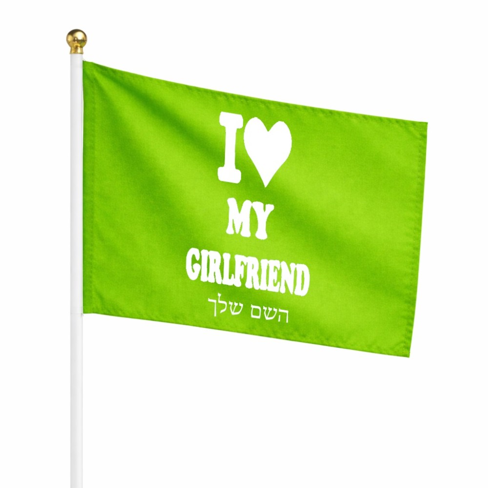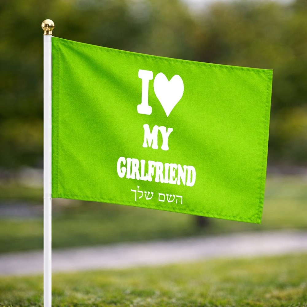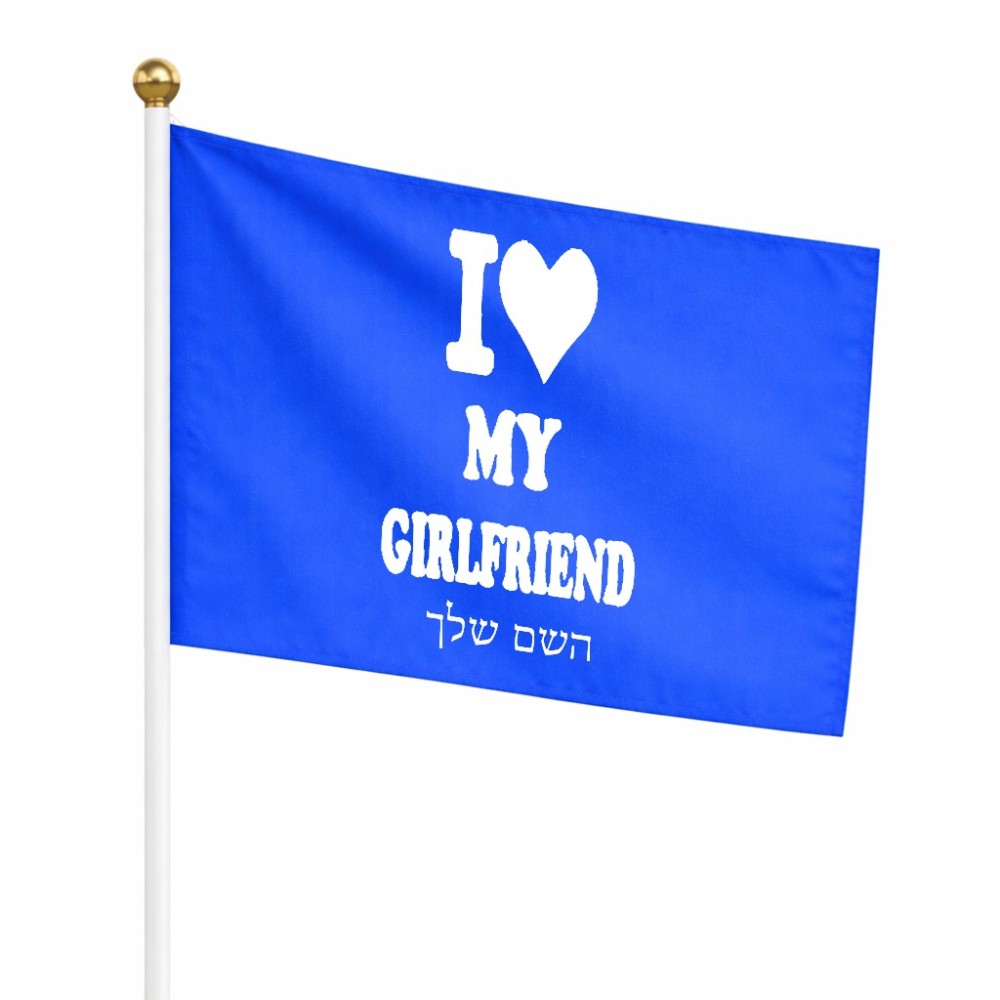 דיגלון בעיצוב אישי עם השם שלך בעיצוב אוהב את החברה שלי גודל הדיגלון 20.5 × 14 ס"מ, ההדפסה מתבצעת בשני צידי הדגל, את השם המבוקש ניתן לציין בהזמנה, אם לא צויין אנחנו ניצור קשר לבירור.