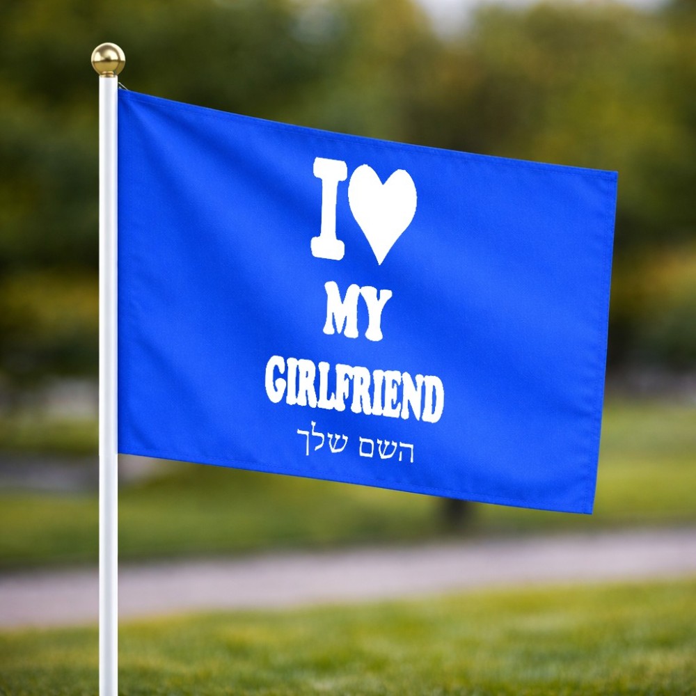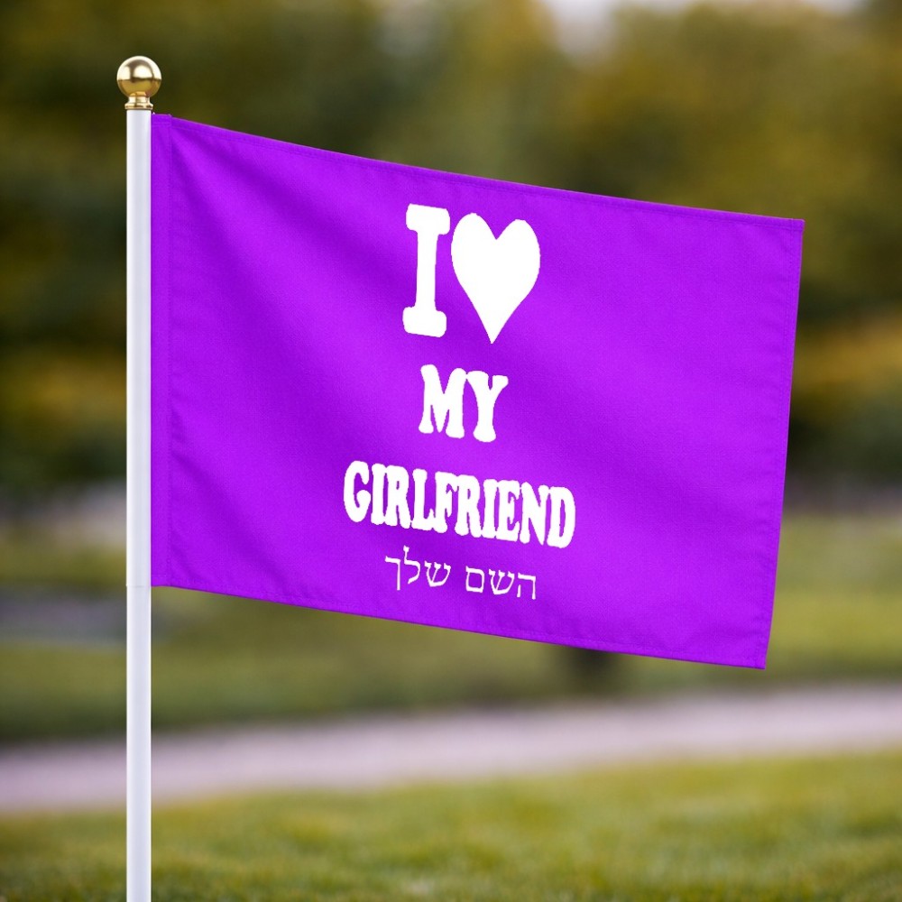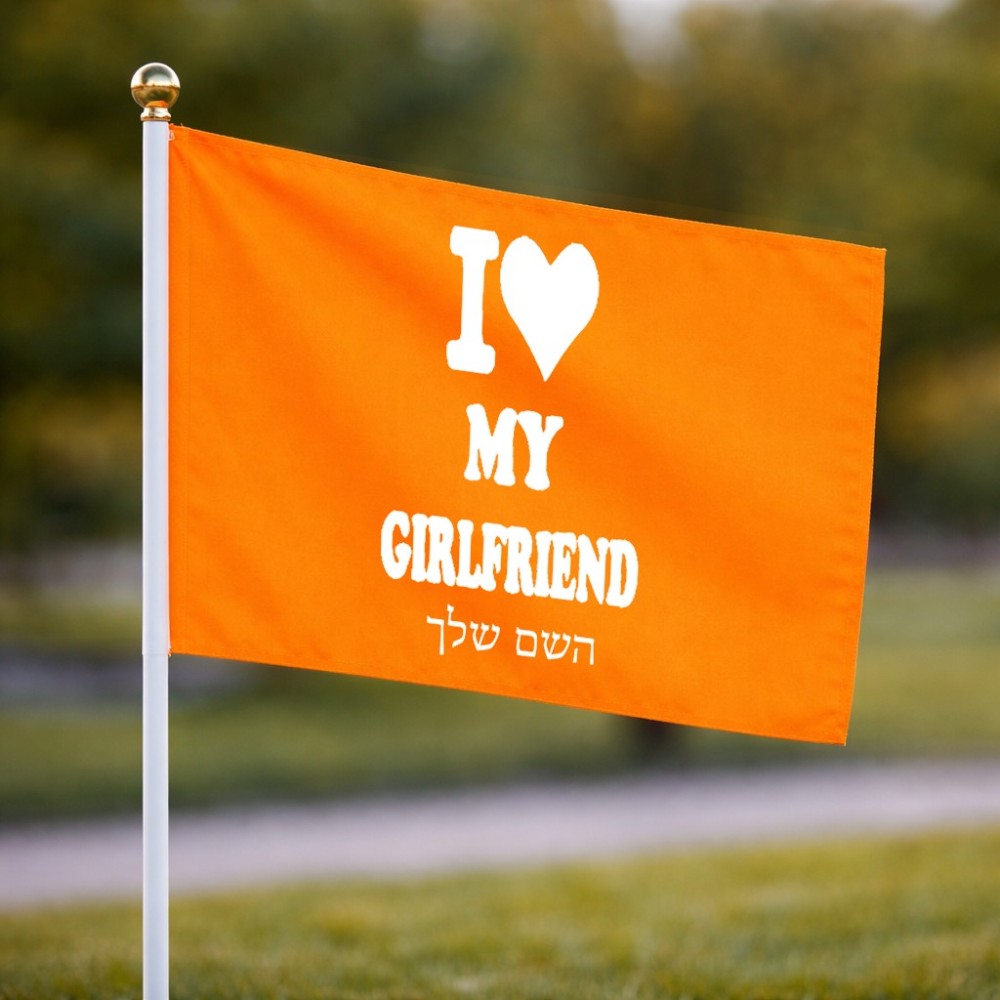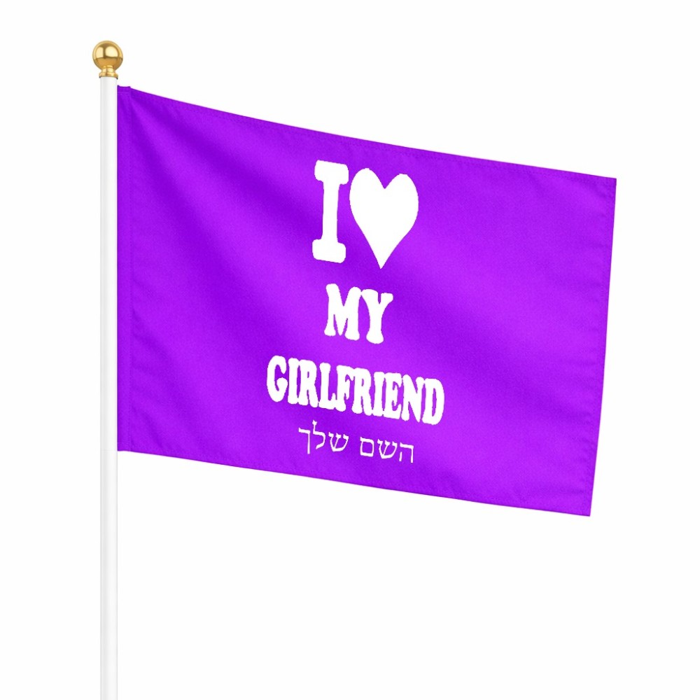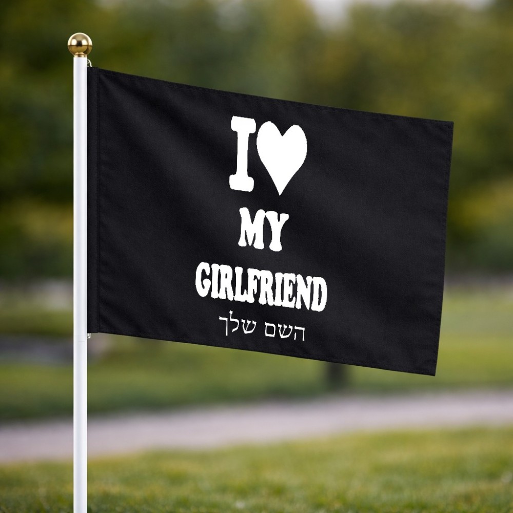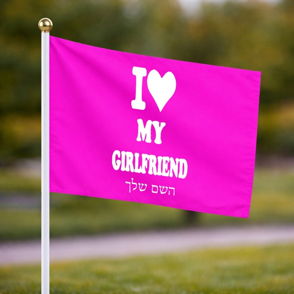 דיגלון בעיצוב אישי עם השם שלך בעיצוב אוהב את החברה שלי גודל הדיגלון 20.5 × 14 ס"מ, ההדפסה מתבצעת בשני צידי הדגל, את השם המבוקש ניתן לציין בהזמנה, אם לא צויין אנחנו ניצור קשר לבירור.