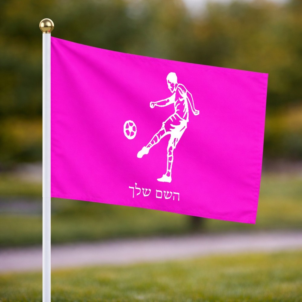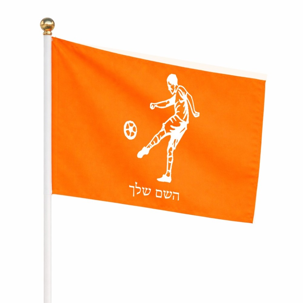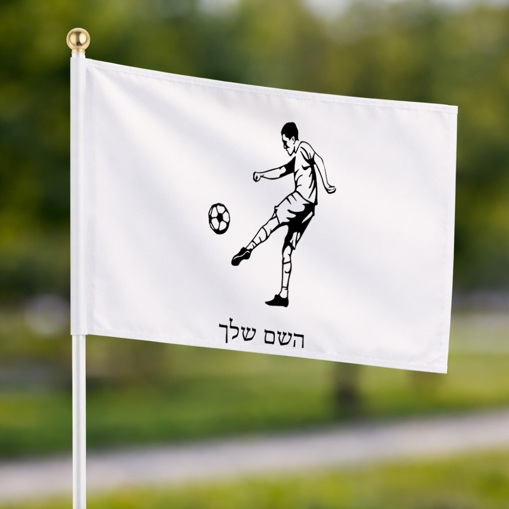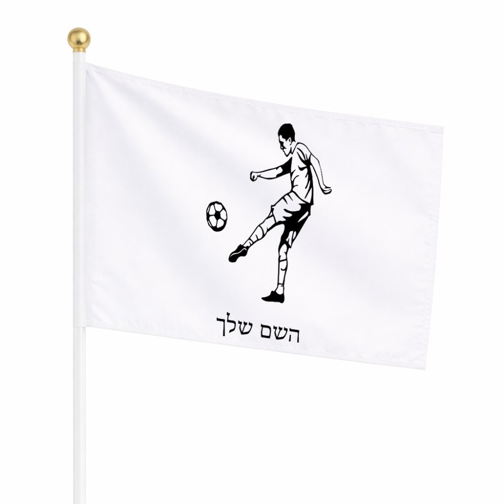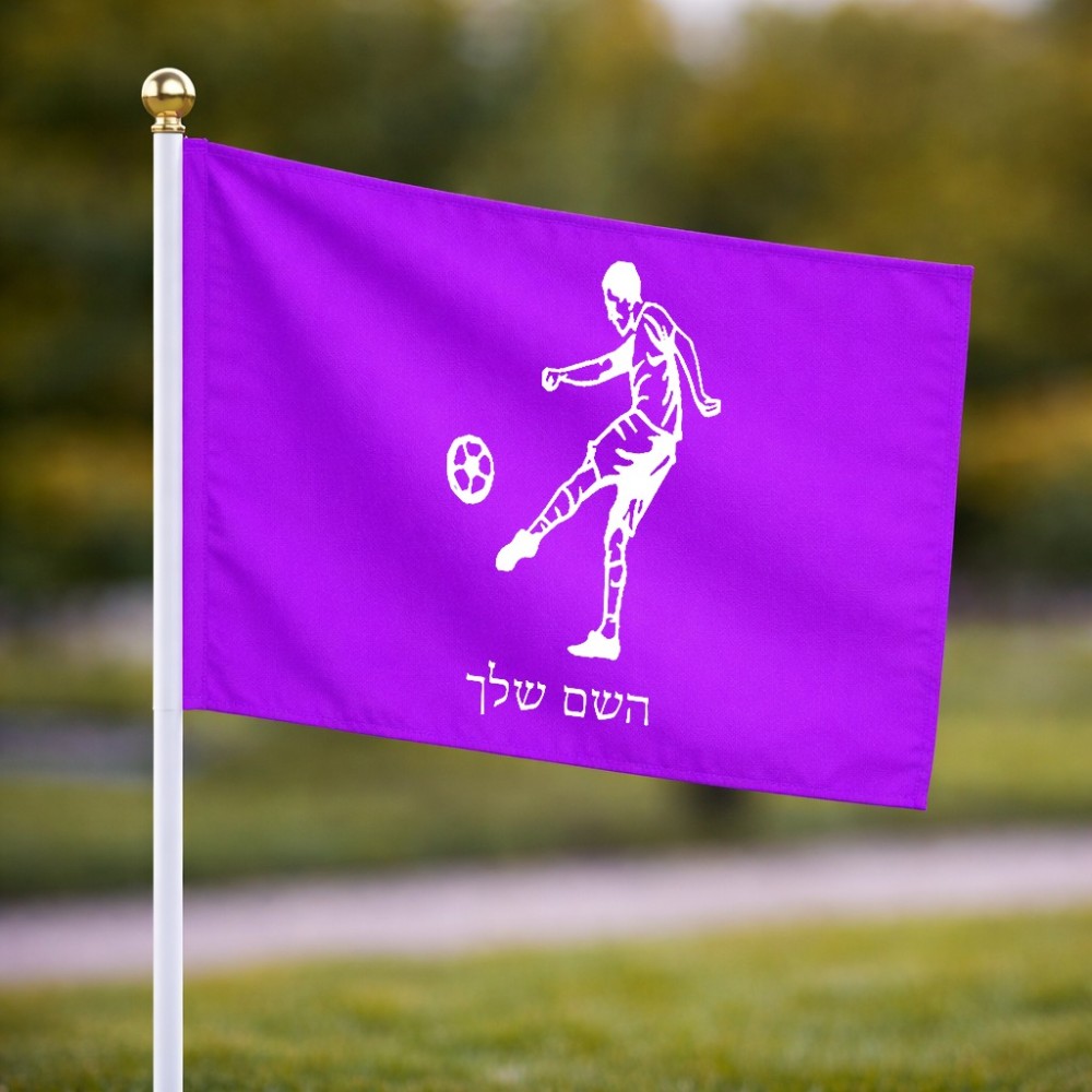 דיגלון בעיצוב אישי עם השם שלך בעיצוב שחקן כדורגל גודל הדיגלון 20.5 × 14 ס"מ, ההדפסה מתבצעת בשני צידי הדגל, את השם המבוקש ניתן לציין בהזמנה, אם לא צויין אנחנו ניצור קשר לבירור.
