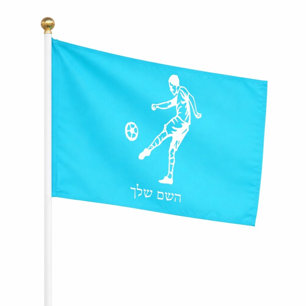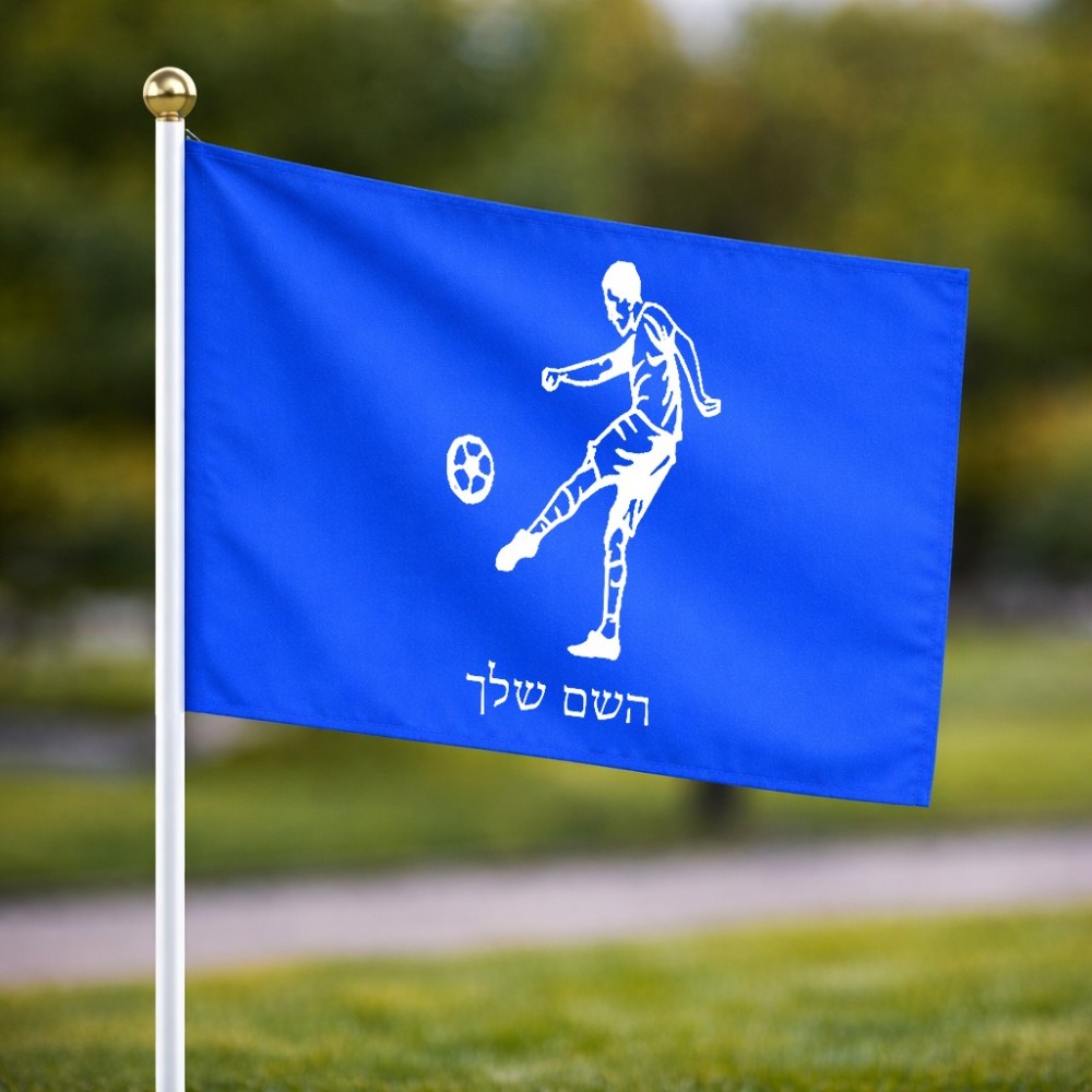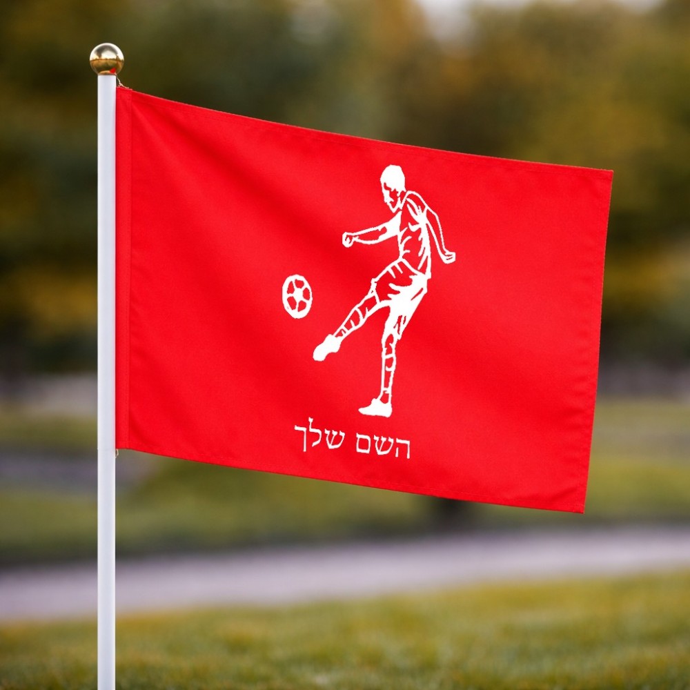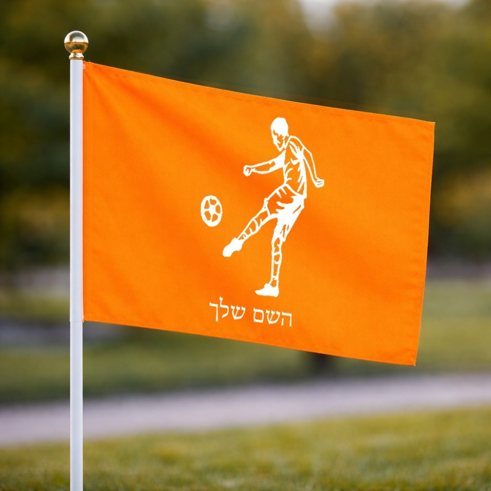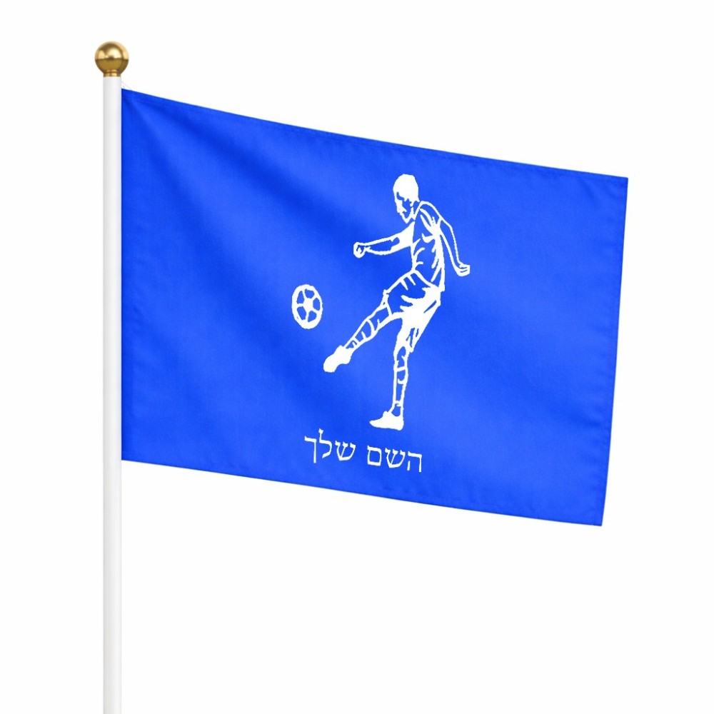 דיגלון בעיצוב אישי עם השם שלך בעיצוב שחקן כדורגל גודל הדיגלון 20.5 × 14 ס"מ, ההדפסה מתבצעת בשני צידי הדגל, את השם המבוקש ניתן לציין בהזמנה, אם לא צויין אנחנו ניצור קשר לבירור.