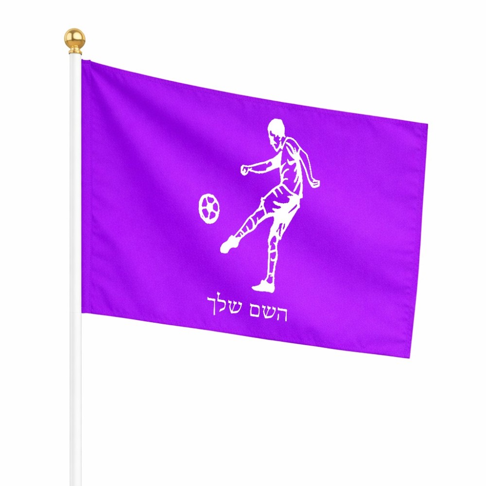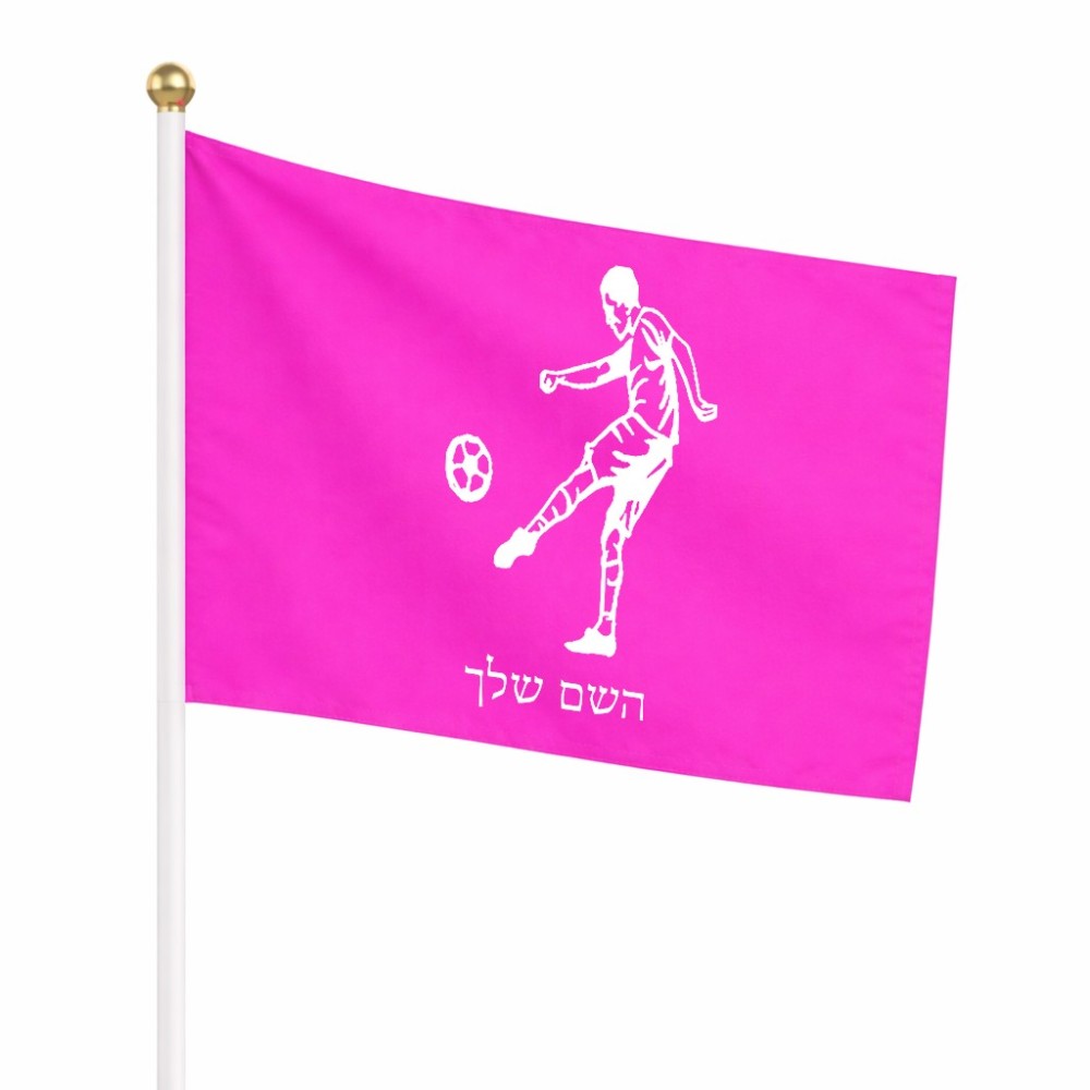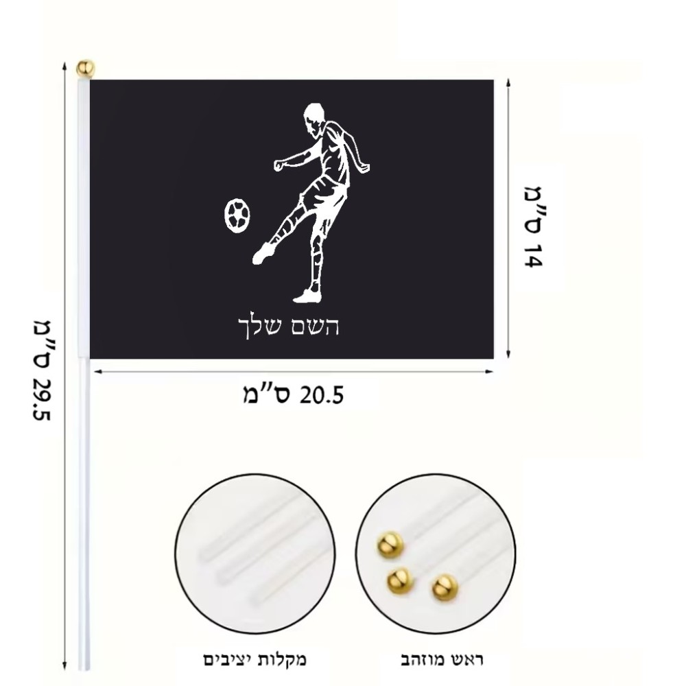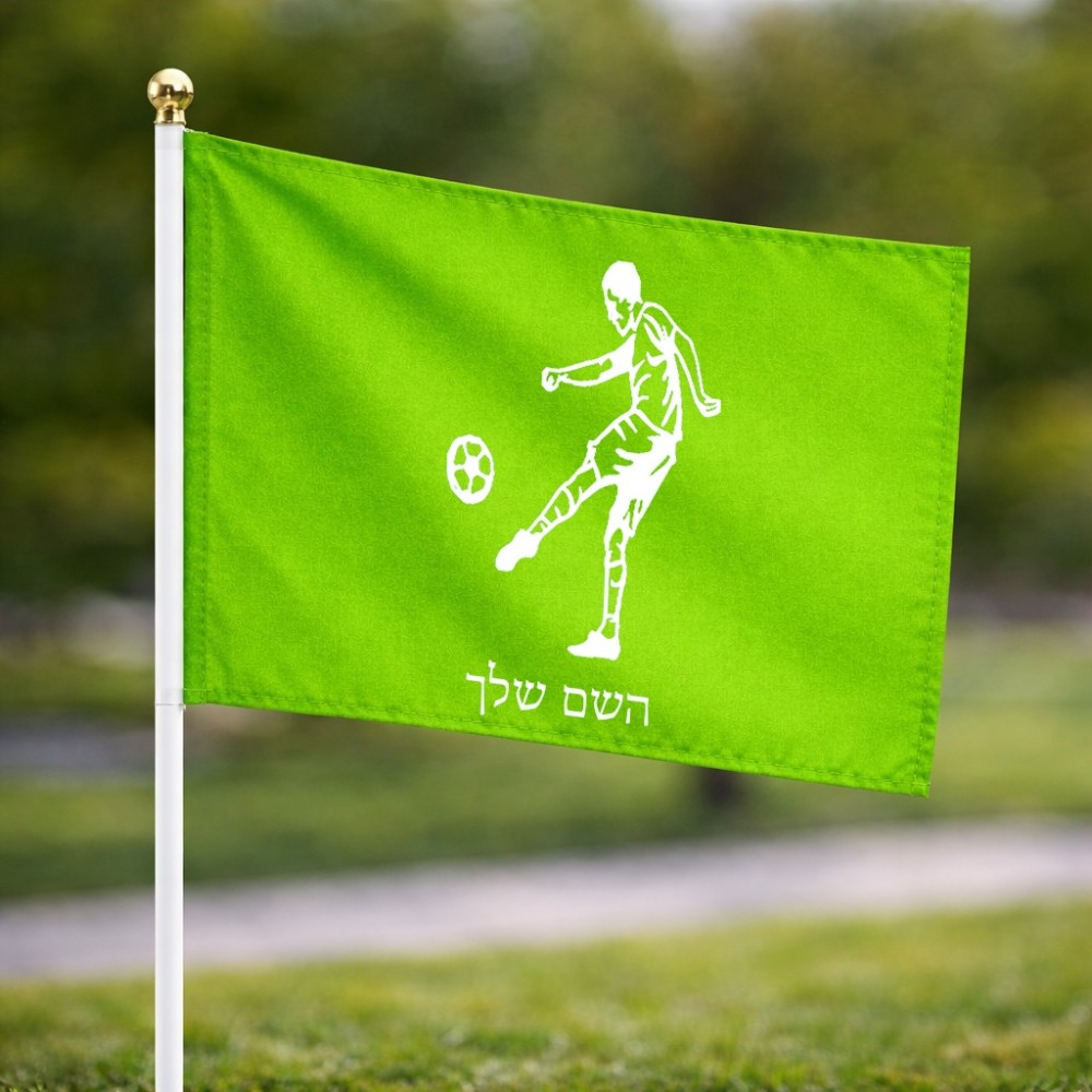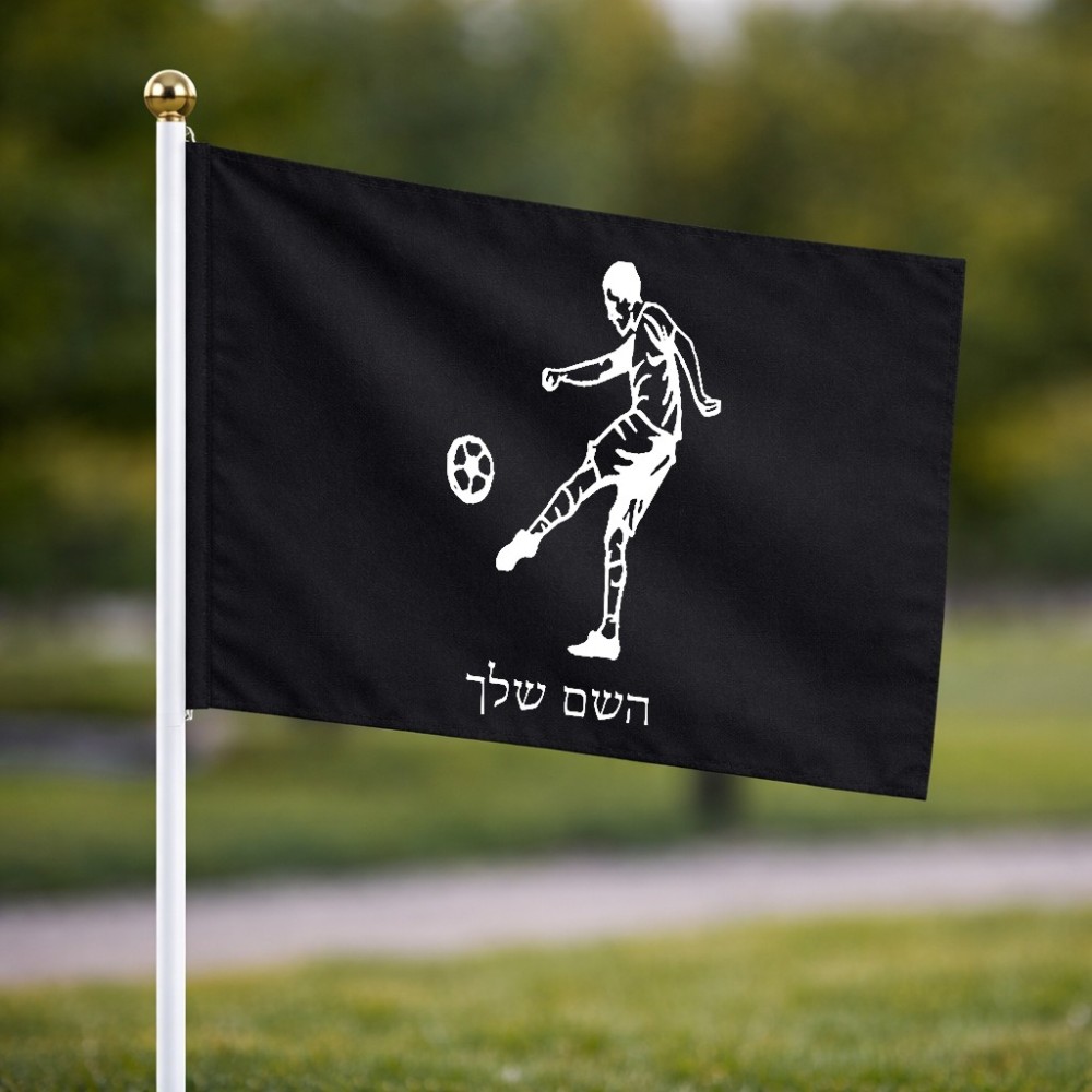 דיגלון בעיצוב אישי עם השם שלך בעיצוב שחקן כדורגל גודל הדיגלון 20.5 × 14 ס"מ, ההדפסה מתבצעת בשני צידי הדגל, את השם המבוקש ניתן לציין בהזמנה, אם לא צויין אנחנו ניצור קשר לבירור.