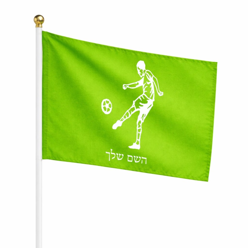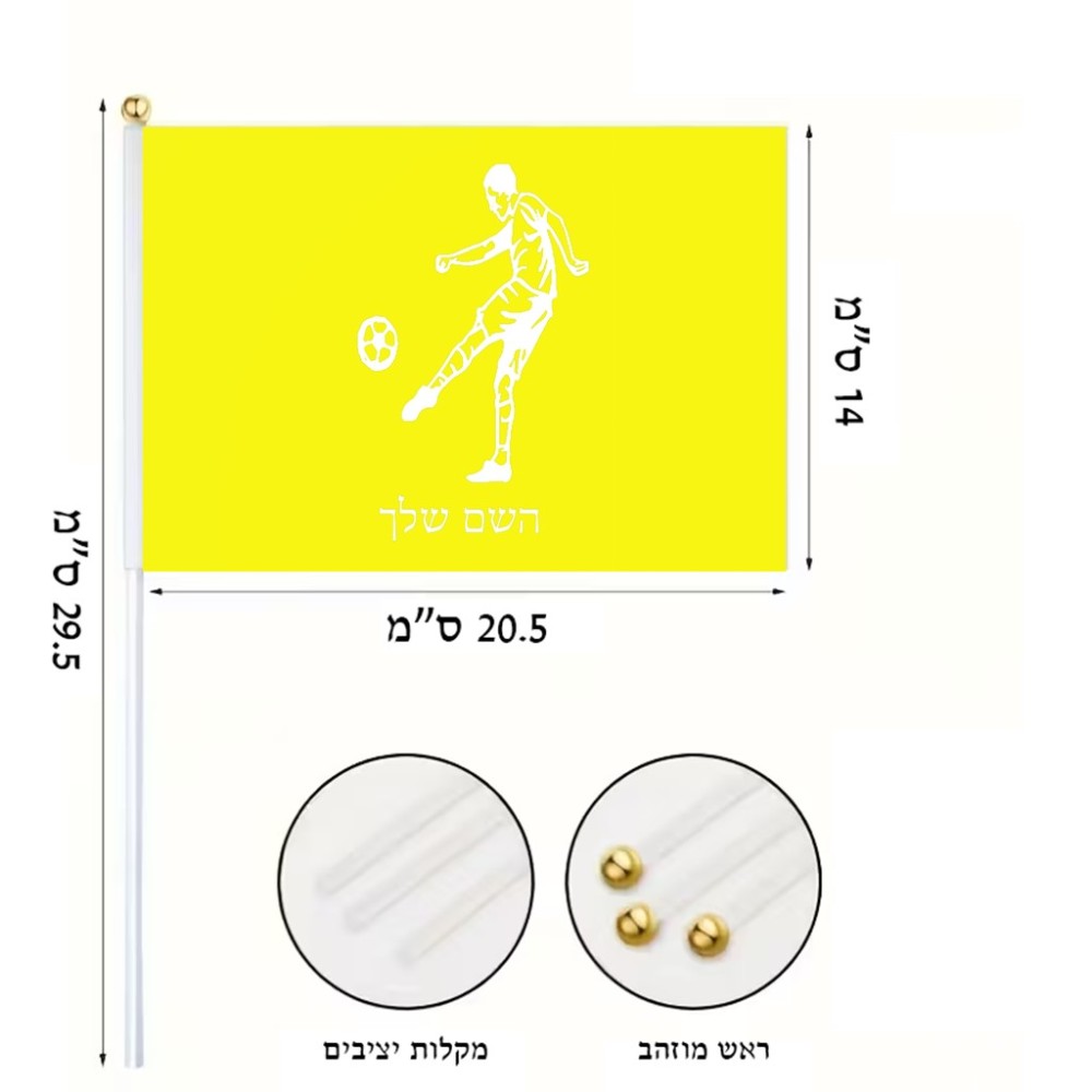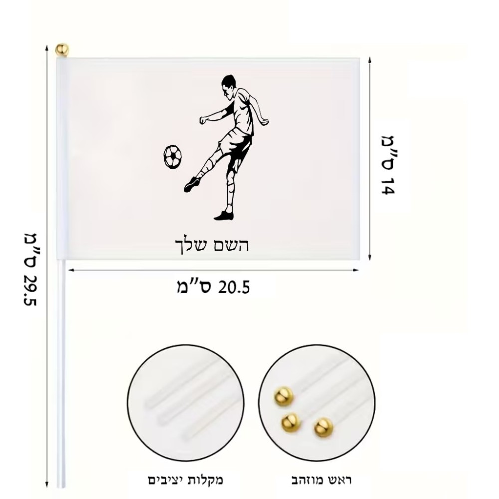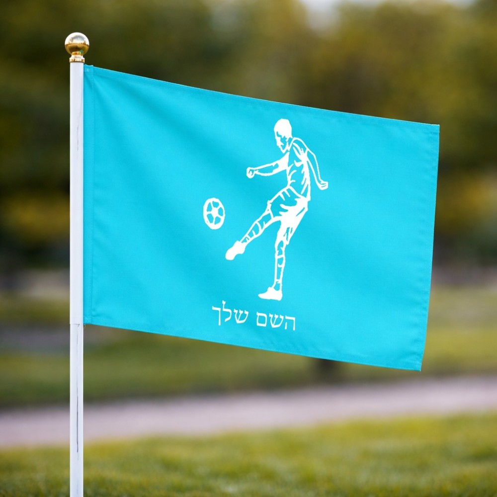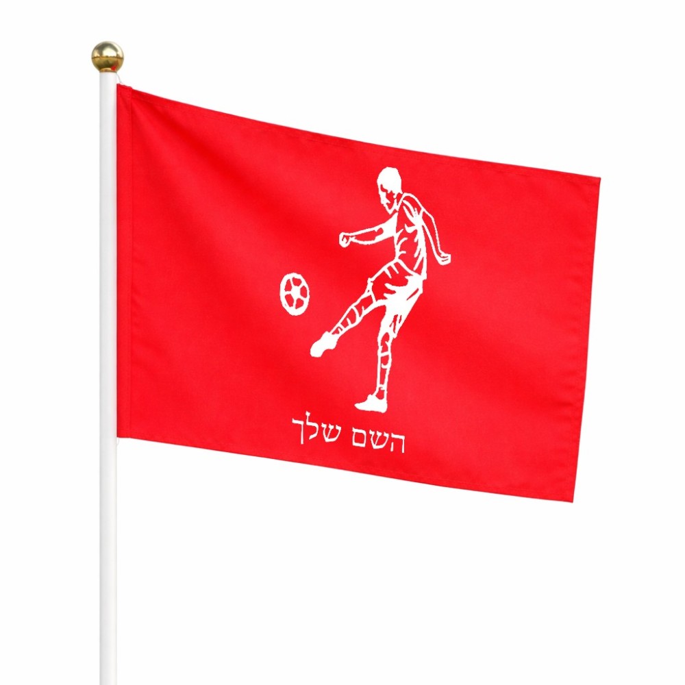 דיגלון בעיצוב אישי עם השם שלך בעיצוב שחקן כדורגל גודל הדיגלון 20.5 × 14 ס"מ, ההדפסה מתבצעת בשני צידי הדגל, את השם המבוקש ניתן לציין בהזמנה, אם לא צויין אנחנו ניצור קשר לבירור.
