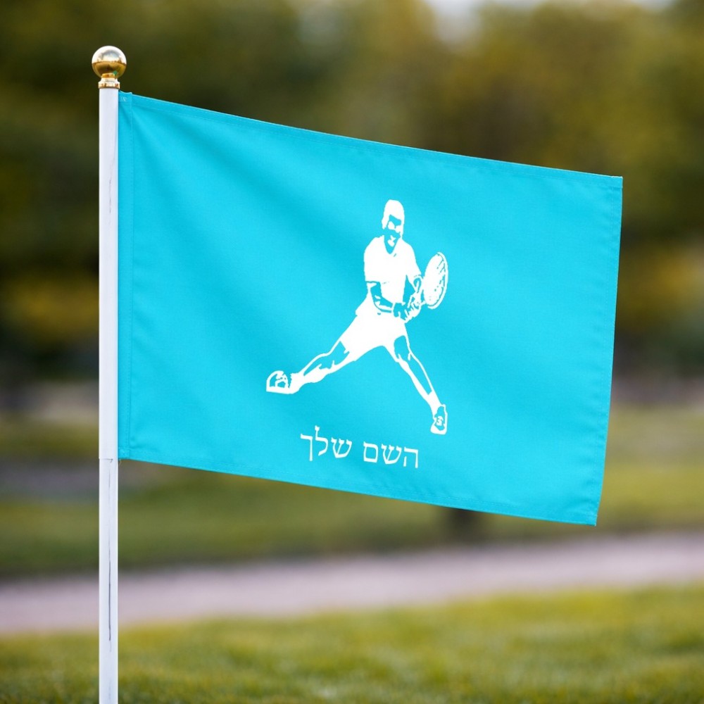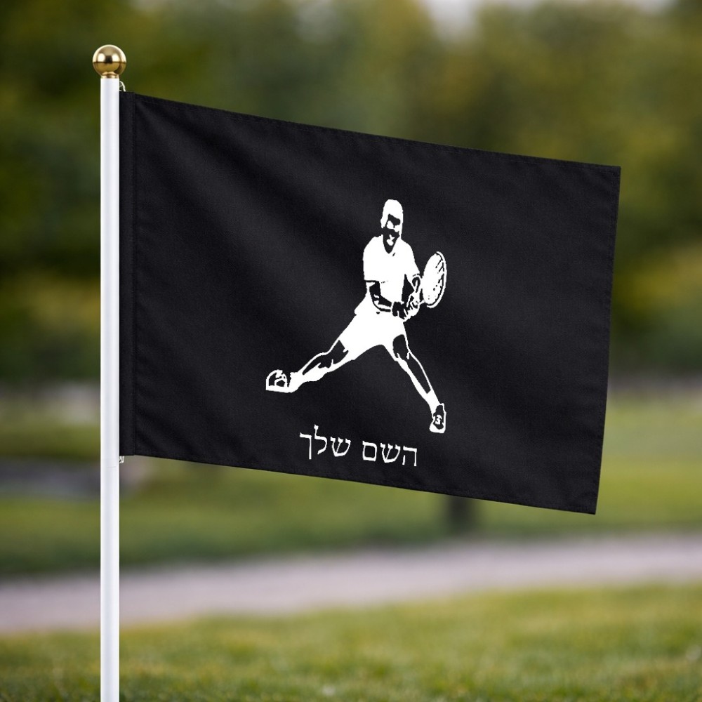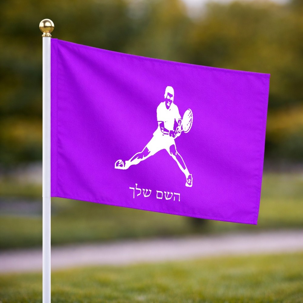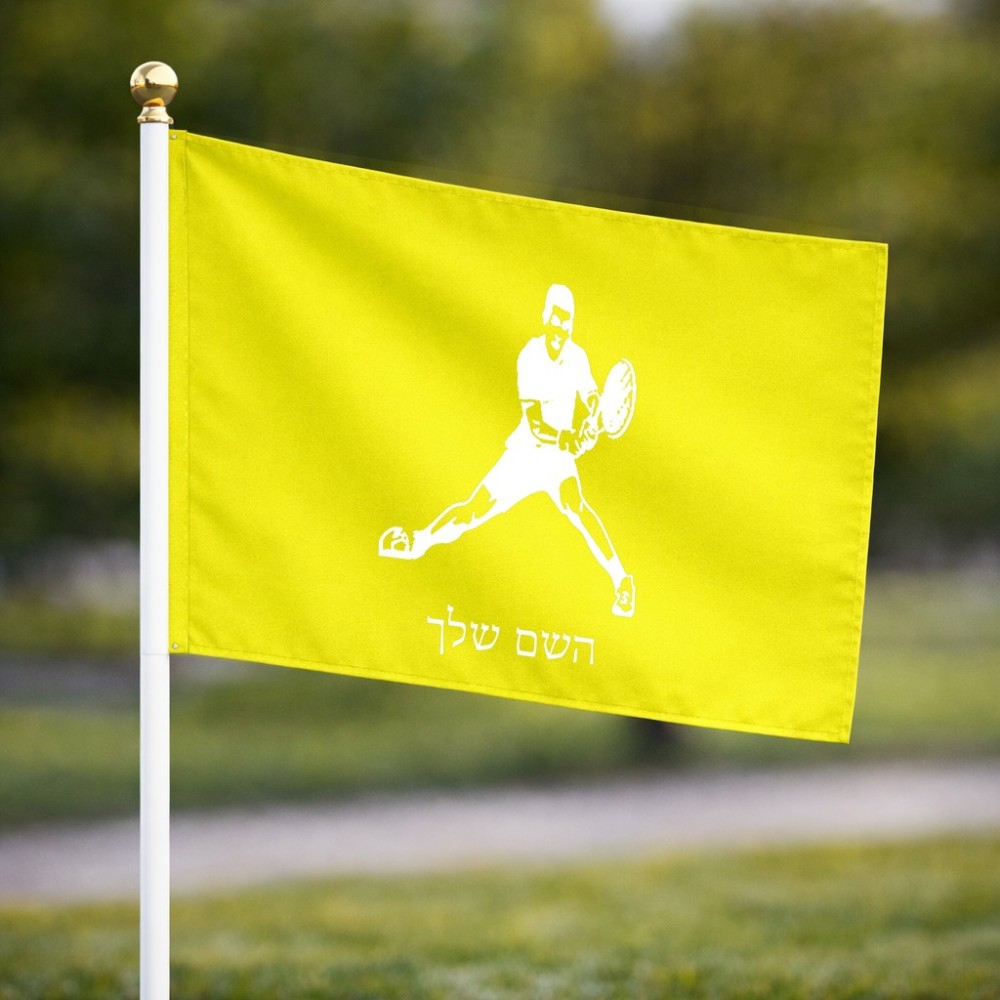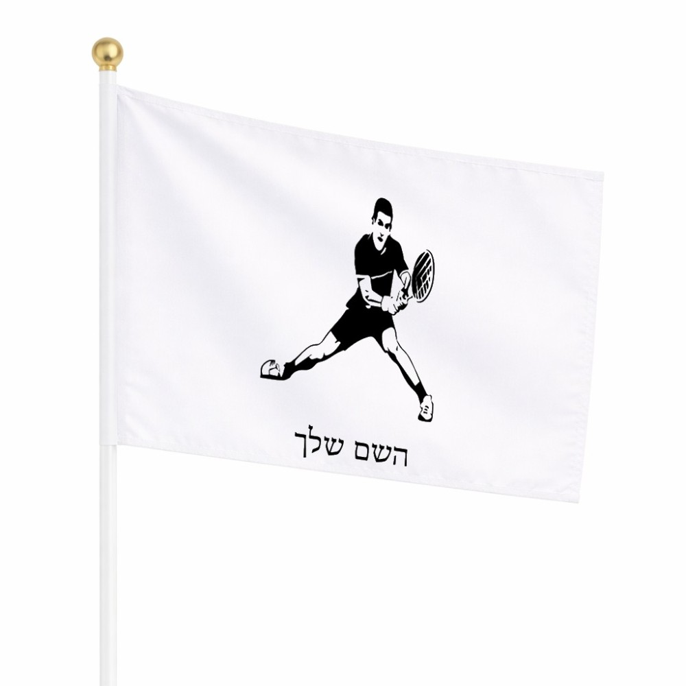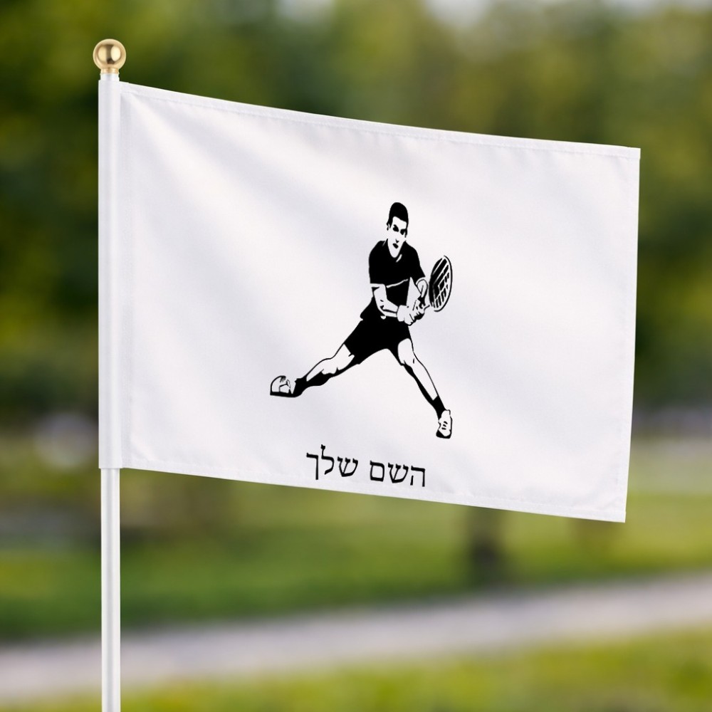 דיגלון בעיצוב אישי עם השם שלך בעיצוב שחקן טניס גודל הדיגלון 20.5 × 14 ס"מ, ההדפסה מתבצעת בשני צידי הדגל, את השם המבוקש ניתן לציין בהזמנה, אם לא צויין אנחנו ניצור קשר לבירור.