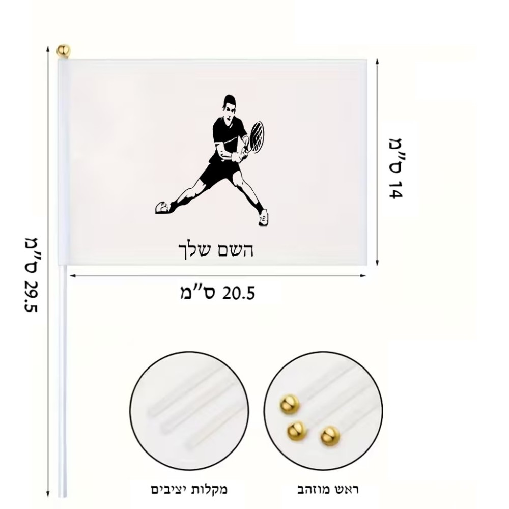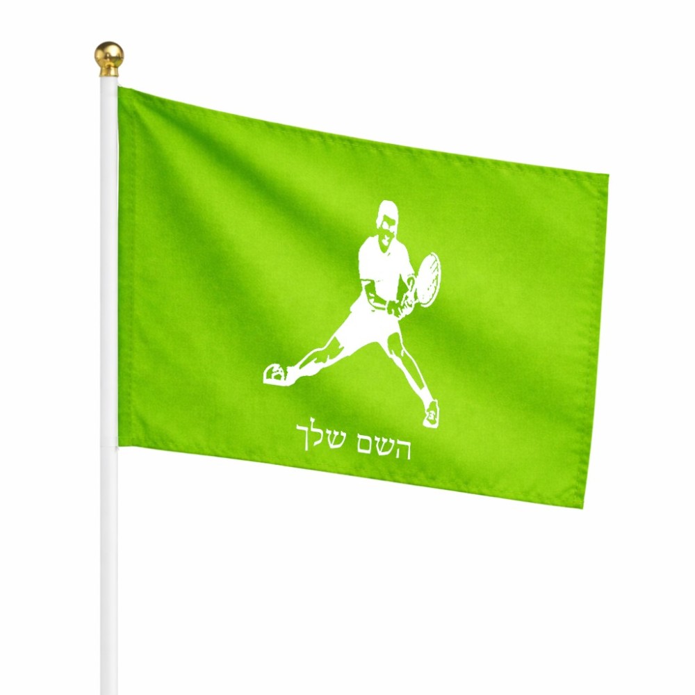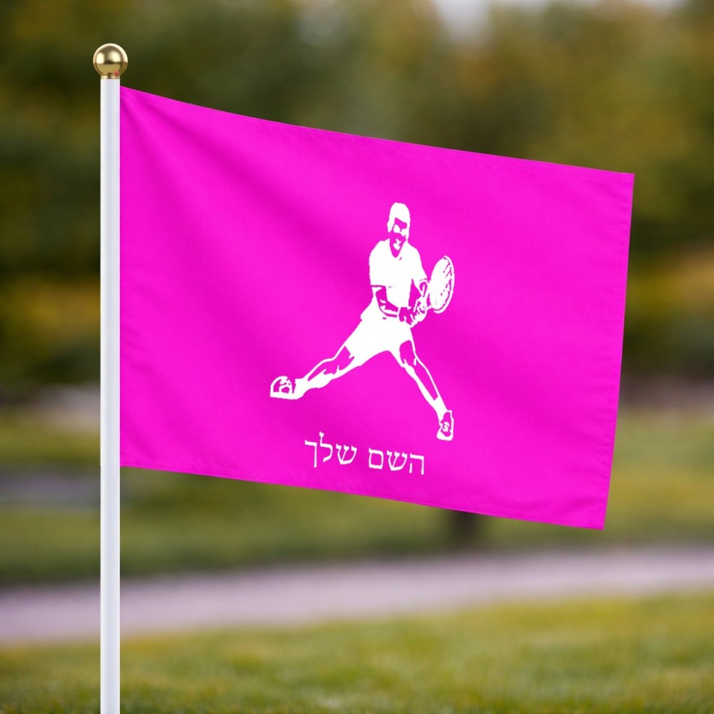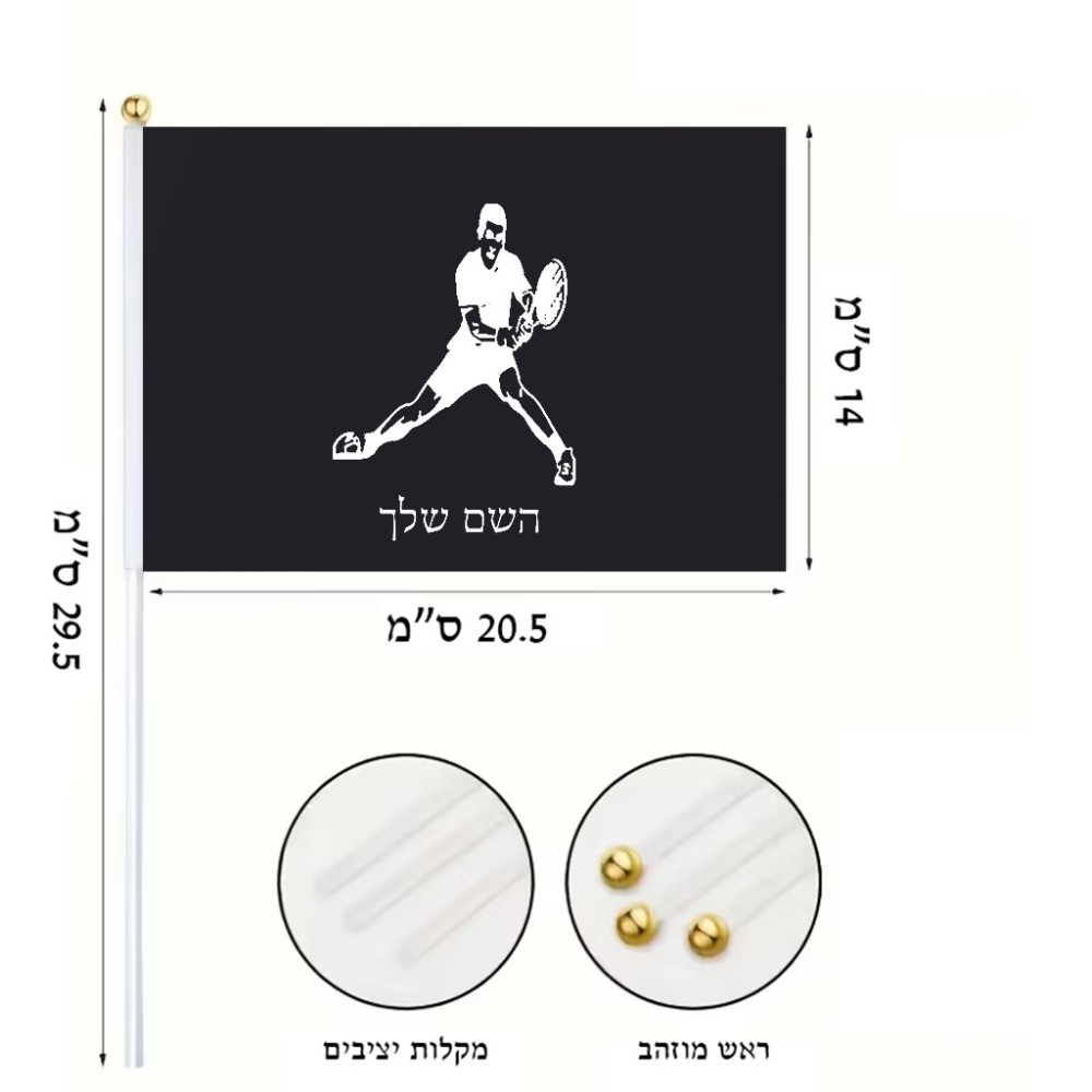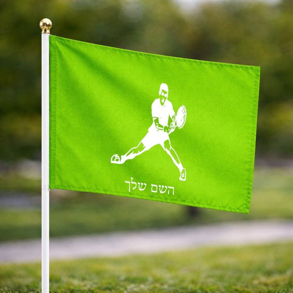 דיגלון בעיצוב אישי עם השם שלך בעיצוב שחקן טניס גודל הדיגלון 20.5 × 14 ס"מ, ההדפסה מתבצעת בשני צידי הדגל, את השם המבוקש ניתן לציין בהזמנה, אם לא צויין אנחנו ניצור קשר לבירור.