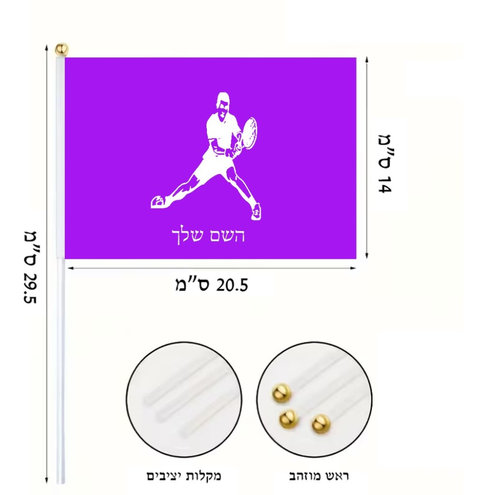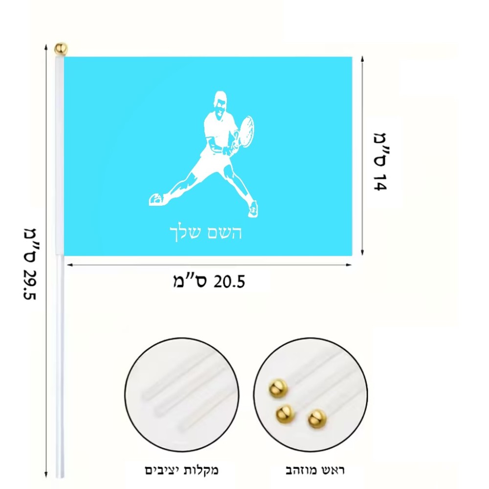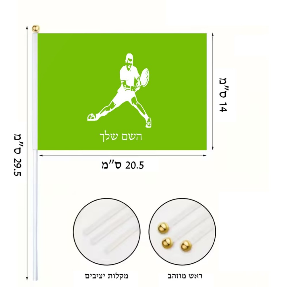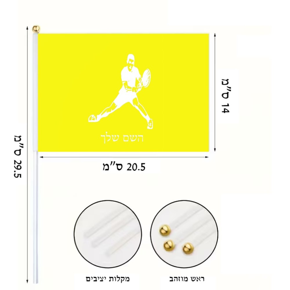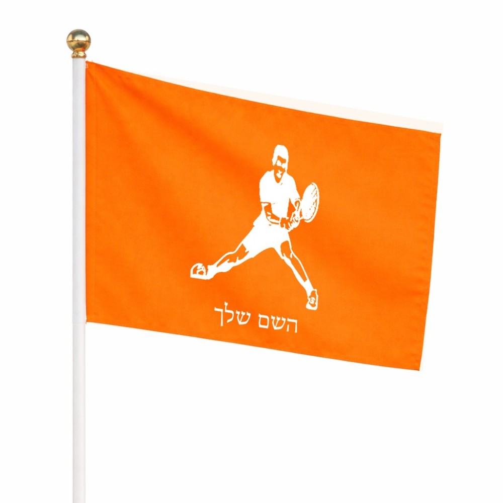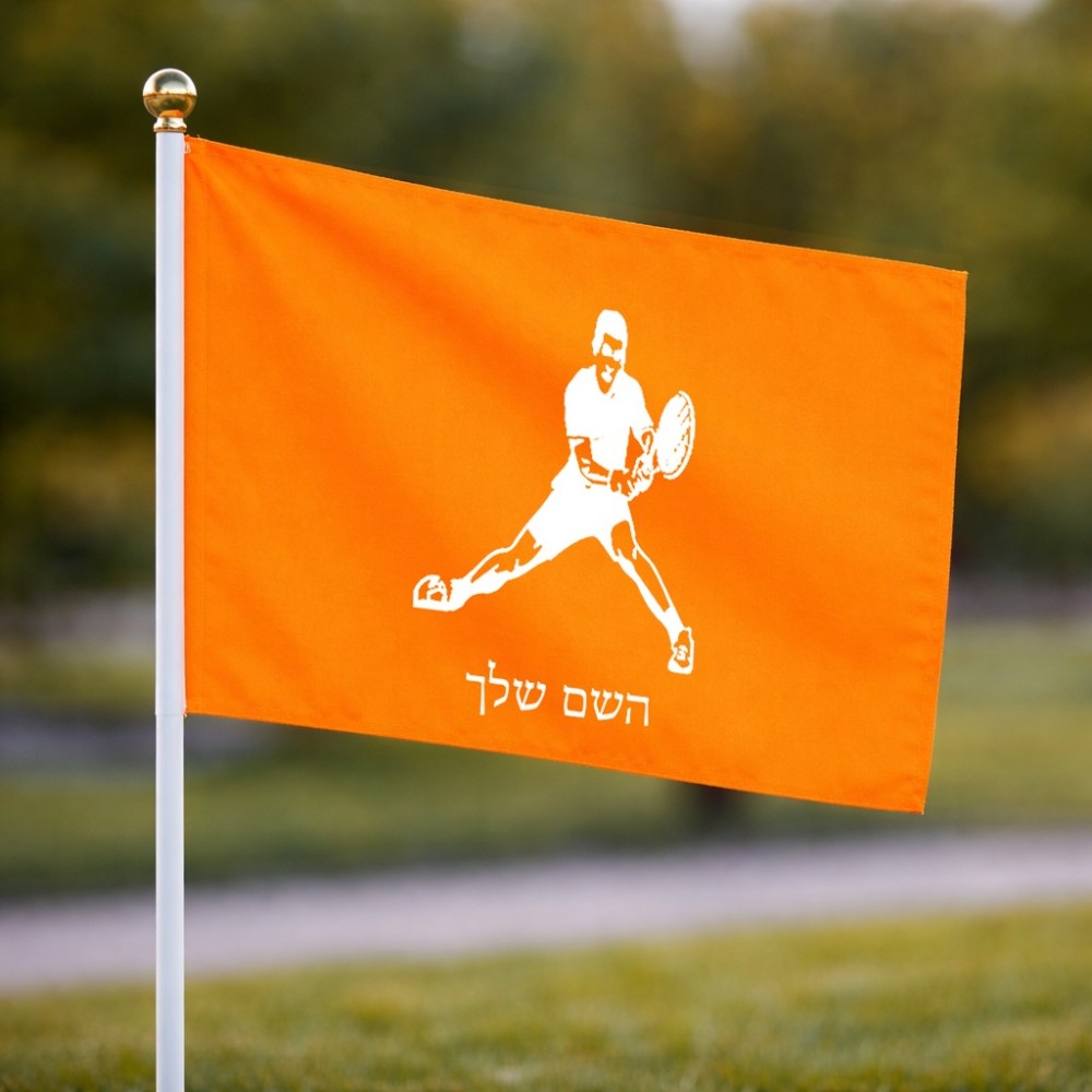 דיגלון בעיצוב אישי עם השם שלך בעיצוב שחקן טניס גודל הדיגלון 20.5 × 14 ס"מ, ההדפסה מתבצעת בשני צידי הדגל, את השם המבוקש ניתן לציין בהזמנה, אם לא צויין אנחנו ניצור קשר לבירור.