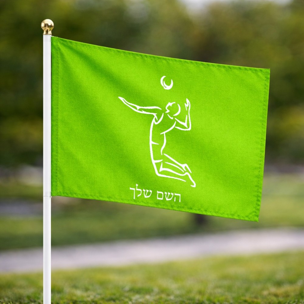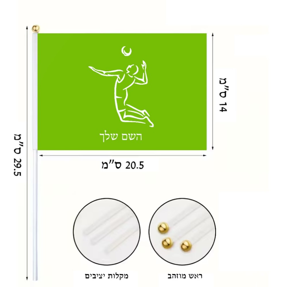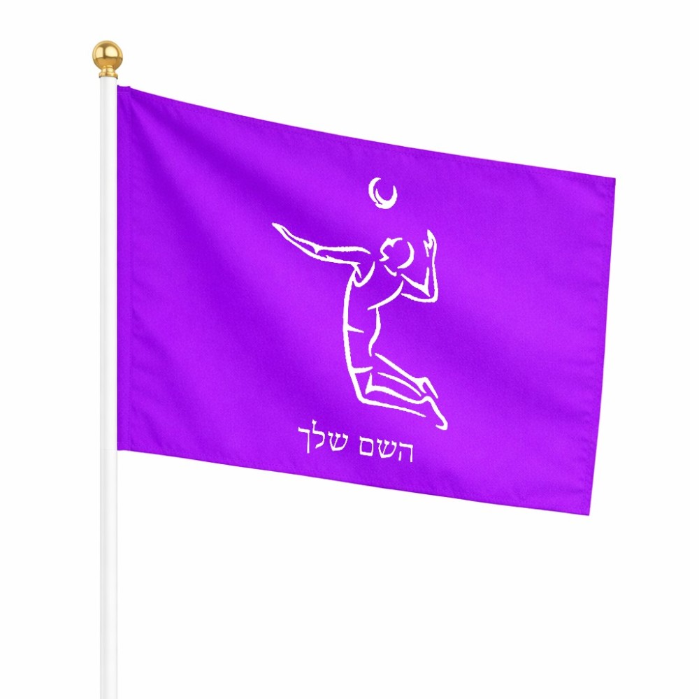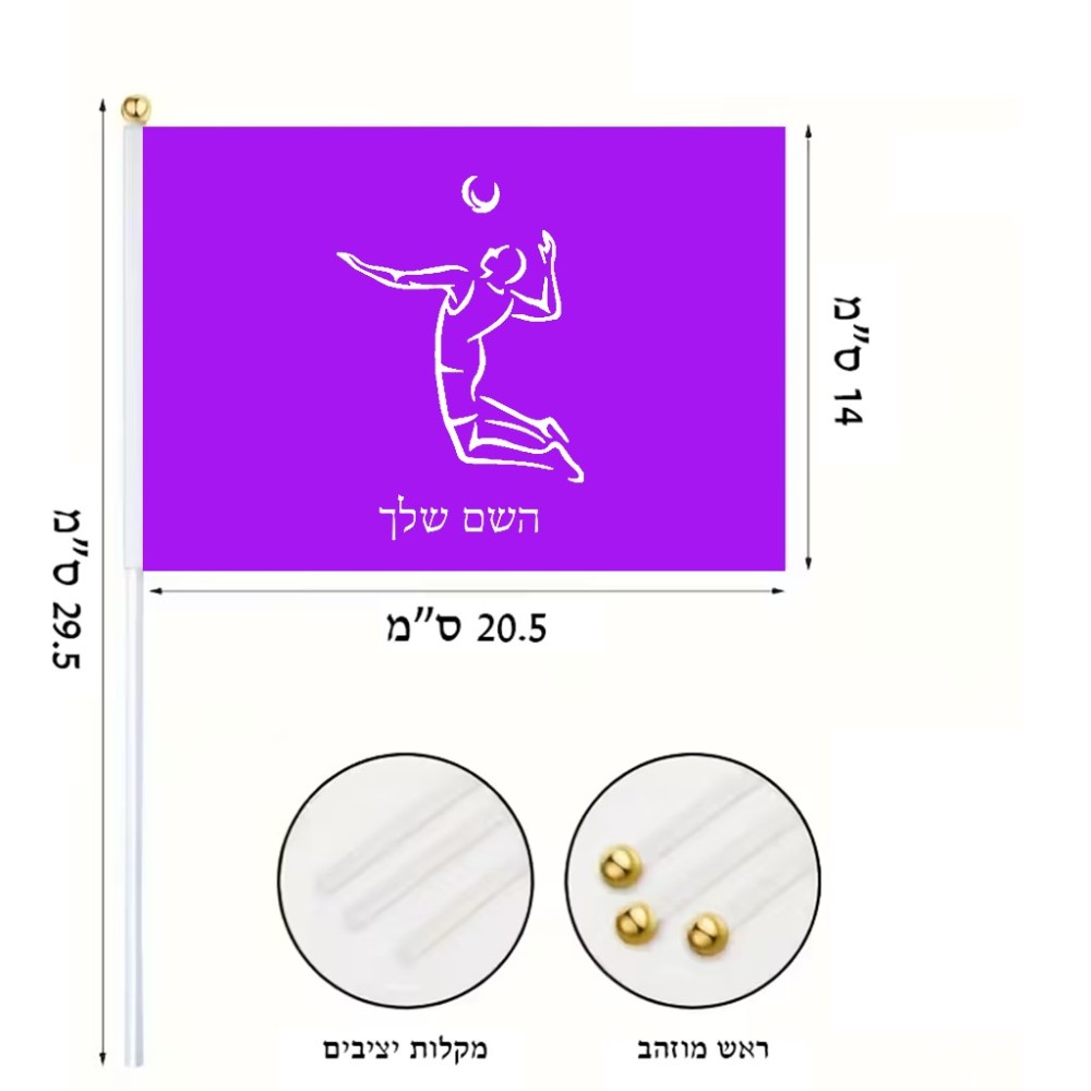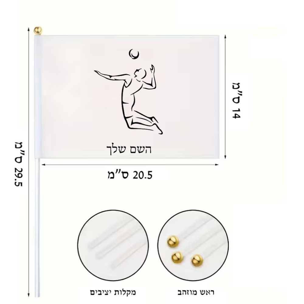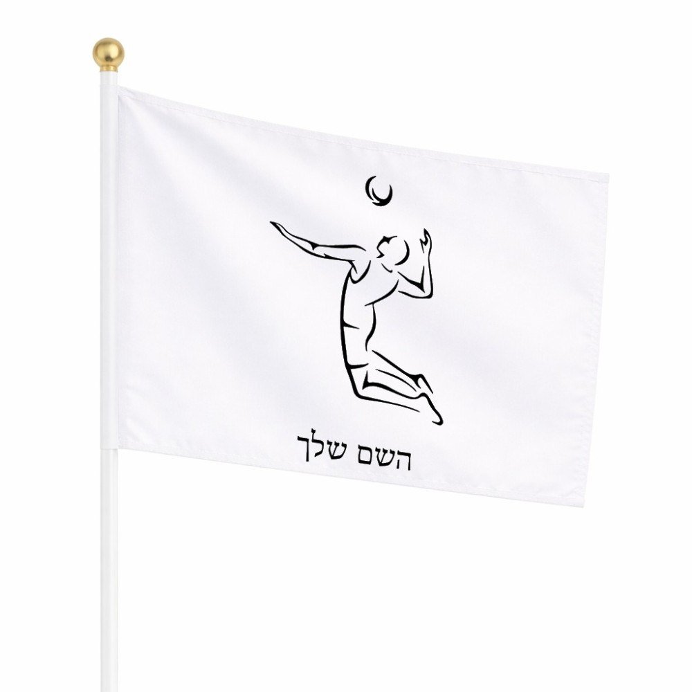 דיגלון בעיצוב אישי עם השם שלך בעיצוב שחקן כדורעף גודל הדיגלון 20.5 × 14 ס"מ, ההדפסה מתבצעת בשני צידי הדגל, את השם המבוקש ניתן לציין בהזמנה, אם לא צויין אנחנו ניצור קשר לבירור.