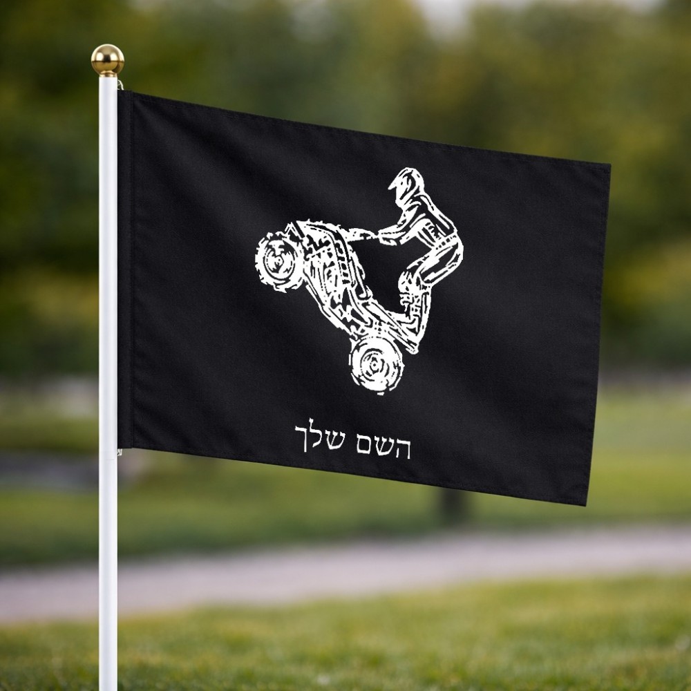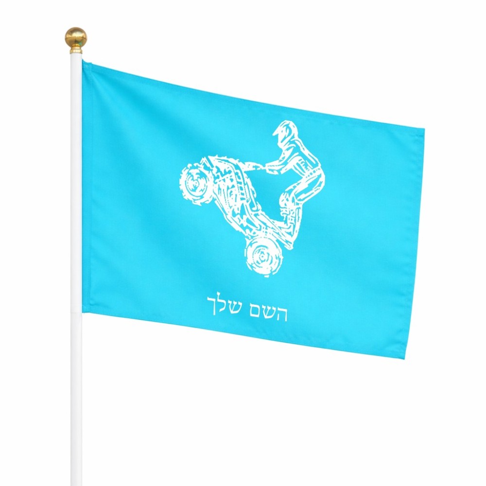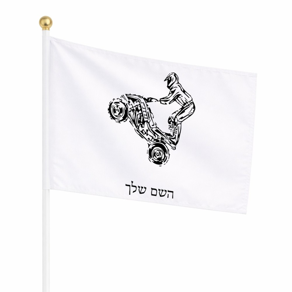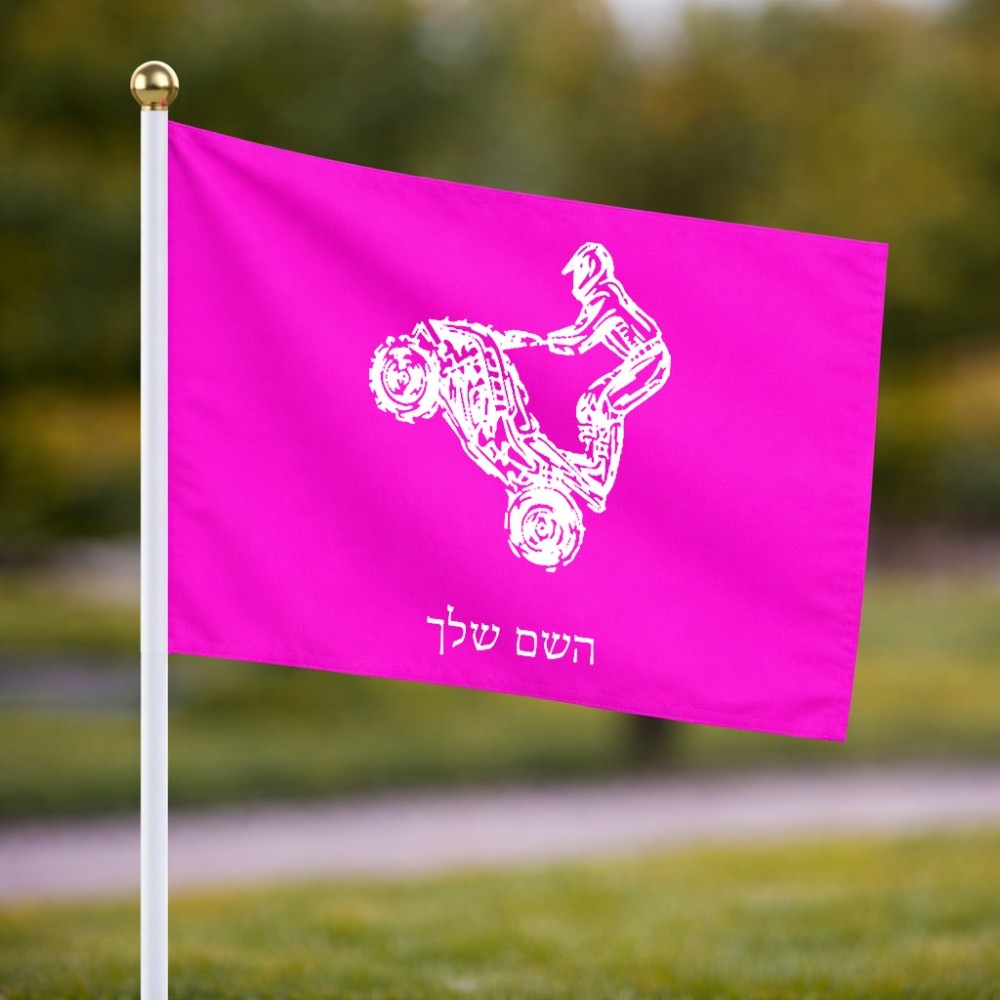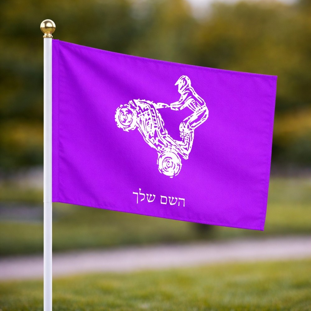 דיגלון בעיצוב אישי עם השם שלך בעיצוב רוכב טרקטורונים גודל הדיגלון 20.5 × 14 ס"מ, ההדפסה מתבצעת בשני צידי הדגל, את השם המבוקש ניתן לציין בהזמנה, אם לא צויין אנחנו ניצור קשר לבירור.