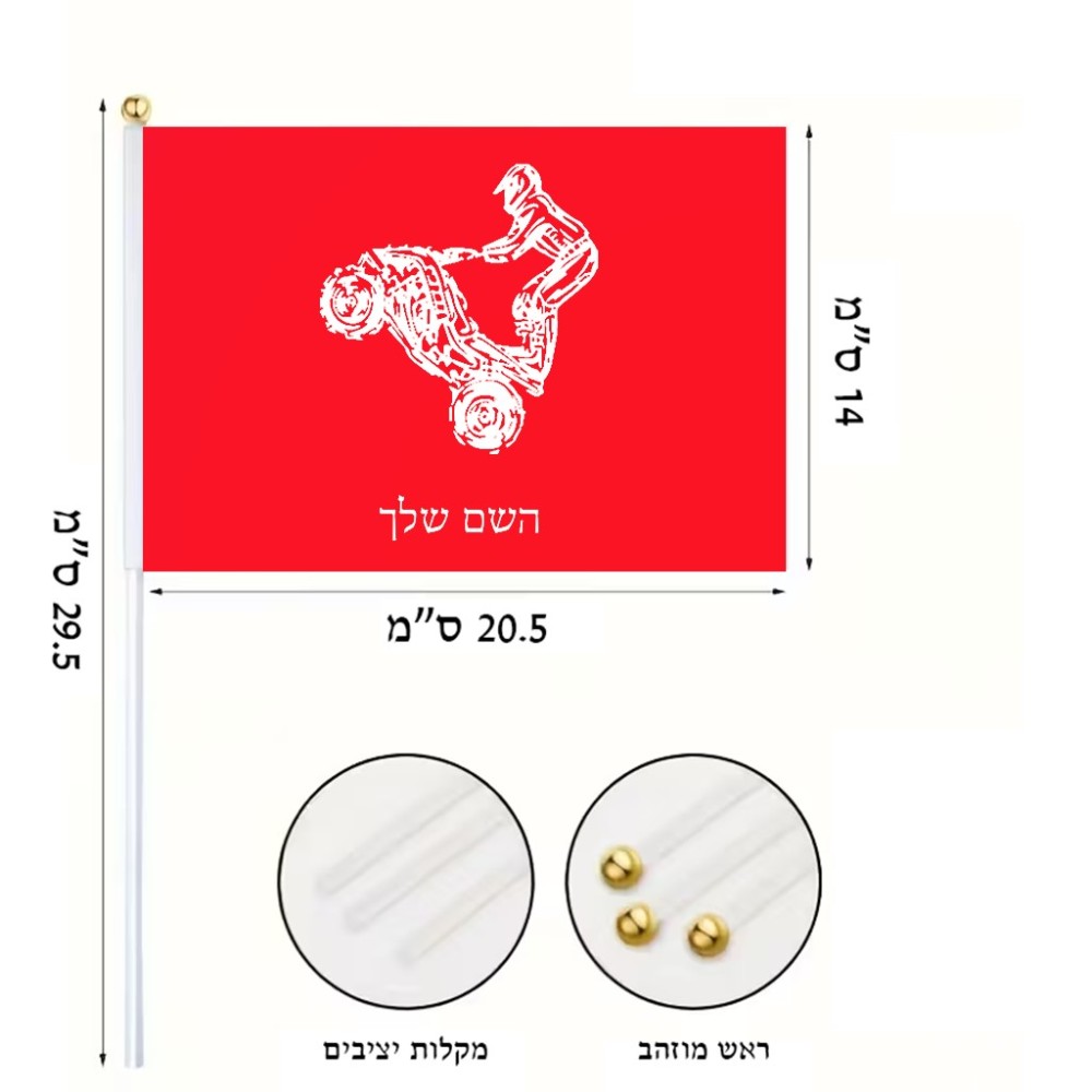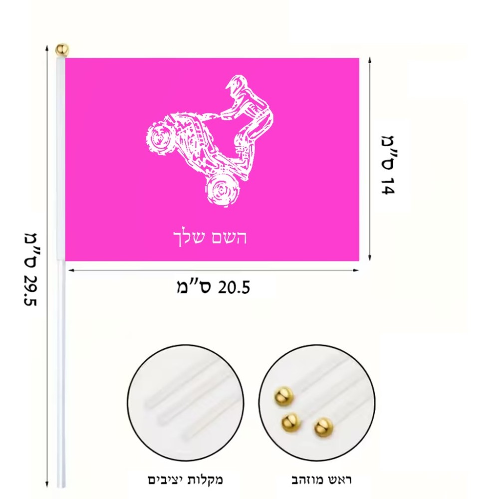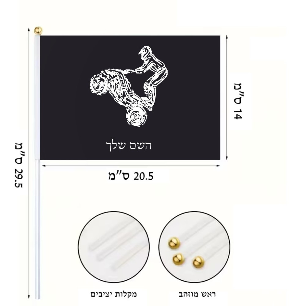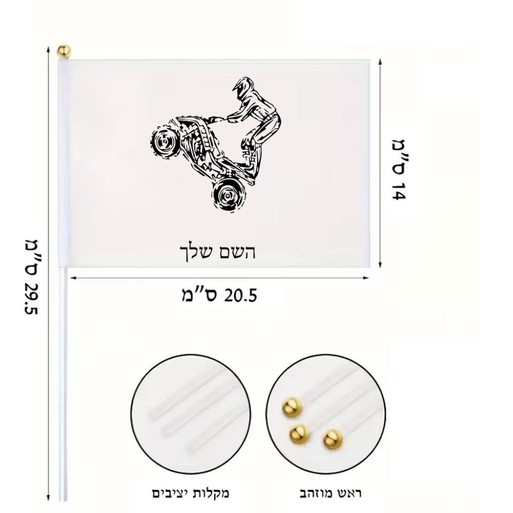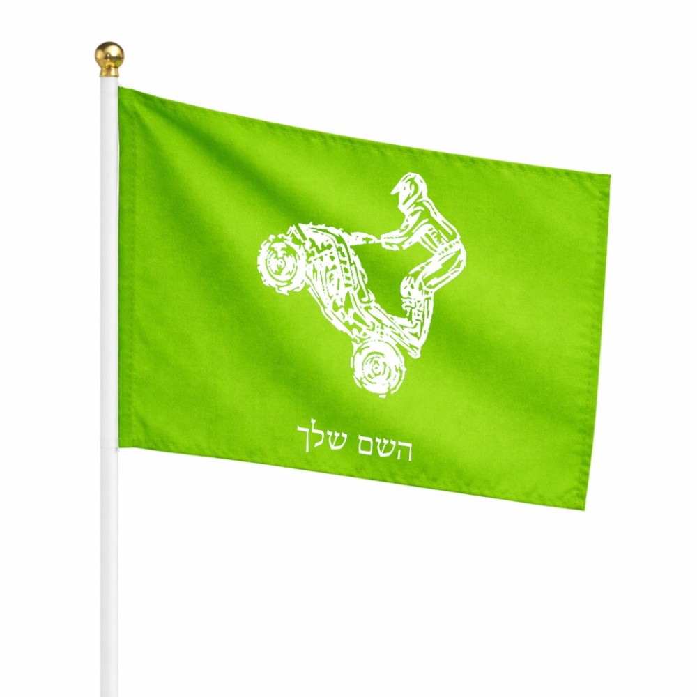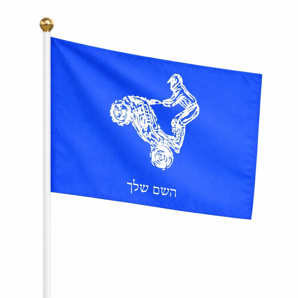 דיגלון בעיצוב אישי עם השם שלך בעיצוב רוכב טרקטורונים גודל הדיגלון 20.5 × 14 ס"מ, ההדפסה מתבצעת בשני צידי הדגל, את השם המבוקש ניתן לציין בהזמנה, אם לא צויין אנחנו ניצור קשר לבירור.