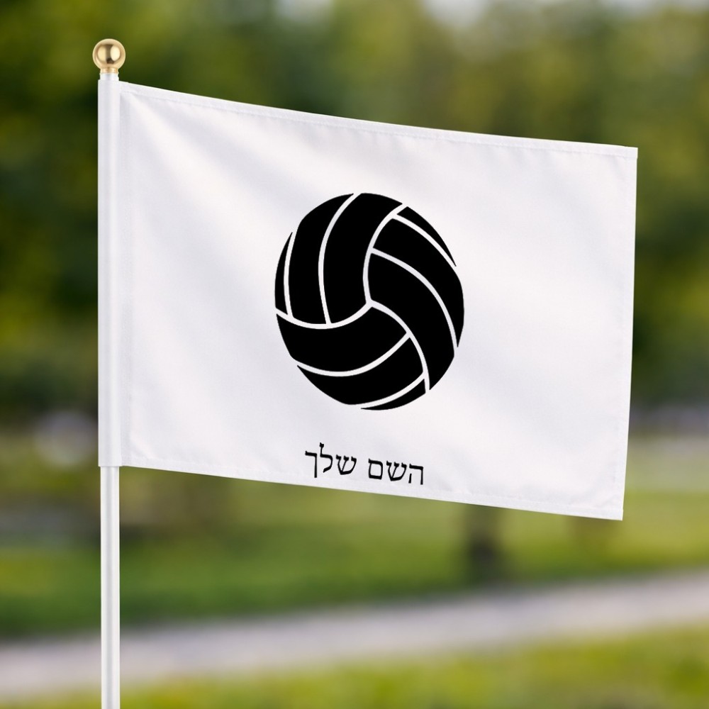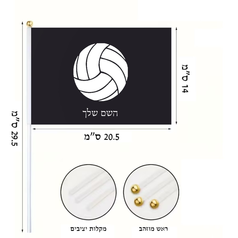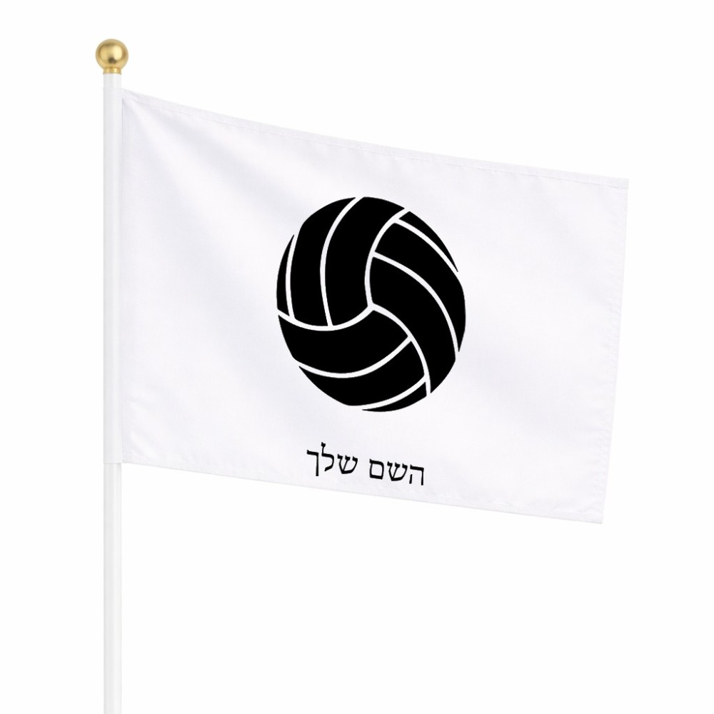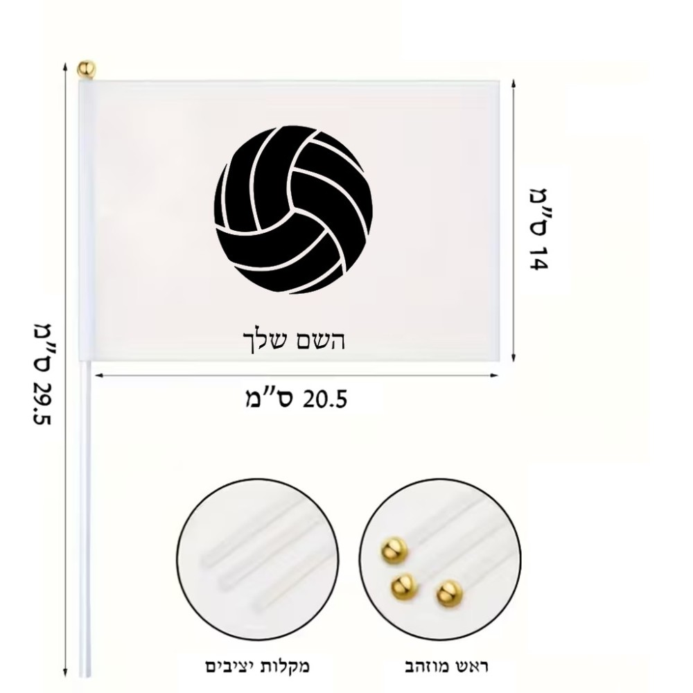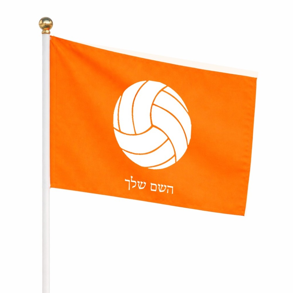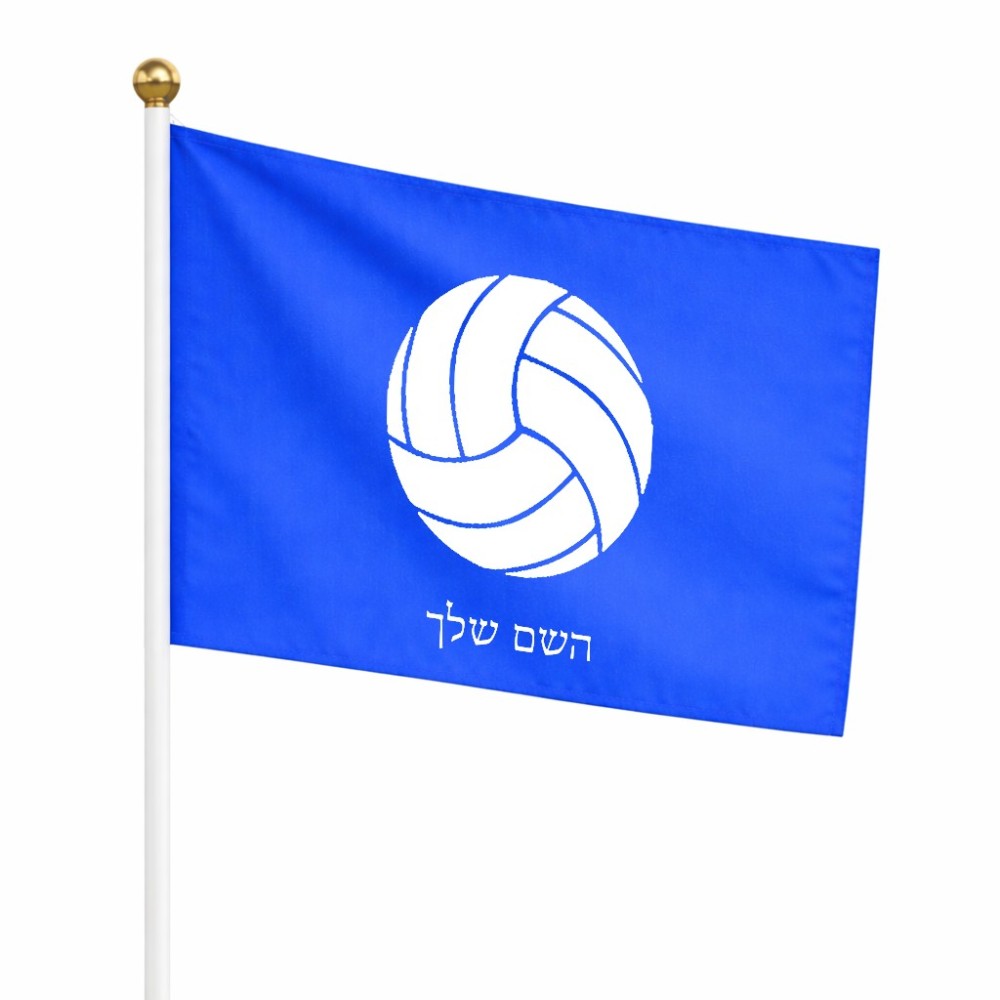 דיגלון בעיצוב אישי עם השם שלך בעיצוב כדור כדורעף גודל הדיגלון 20.5 × 14 ס"מ, ההדפסה מתבצעת בשני צידי הדגל, את השם המבוקש ניתן לציין בהזמנה, אם לא צויין אנחנו ניצור קשר לבירור.