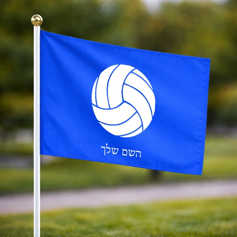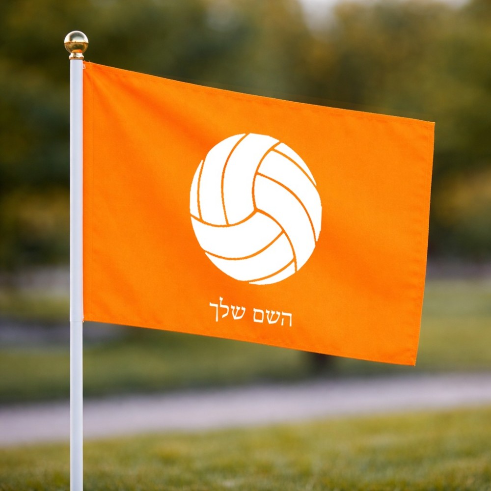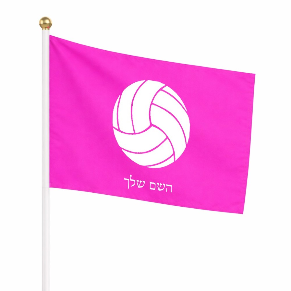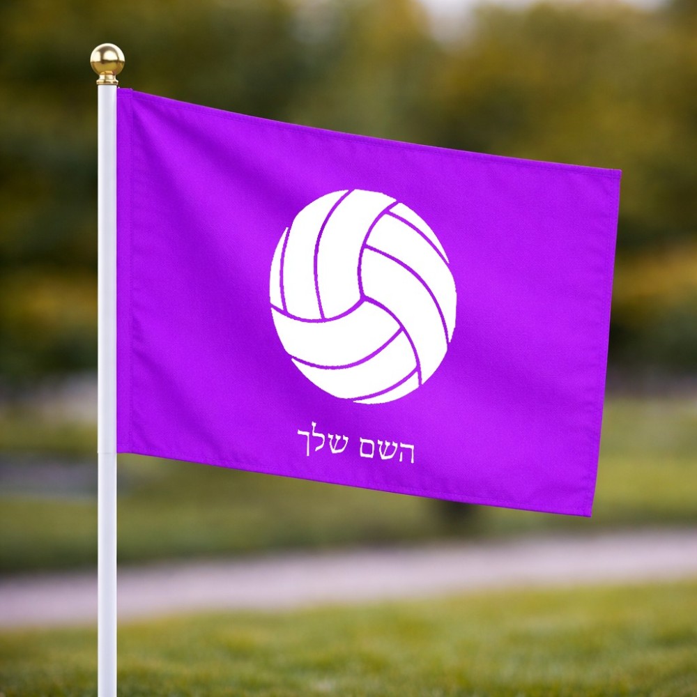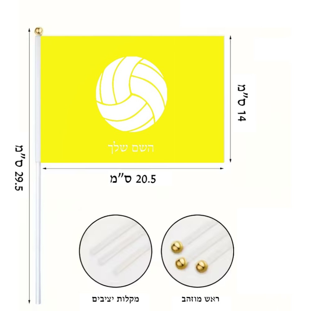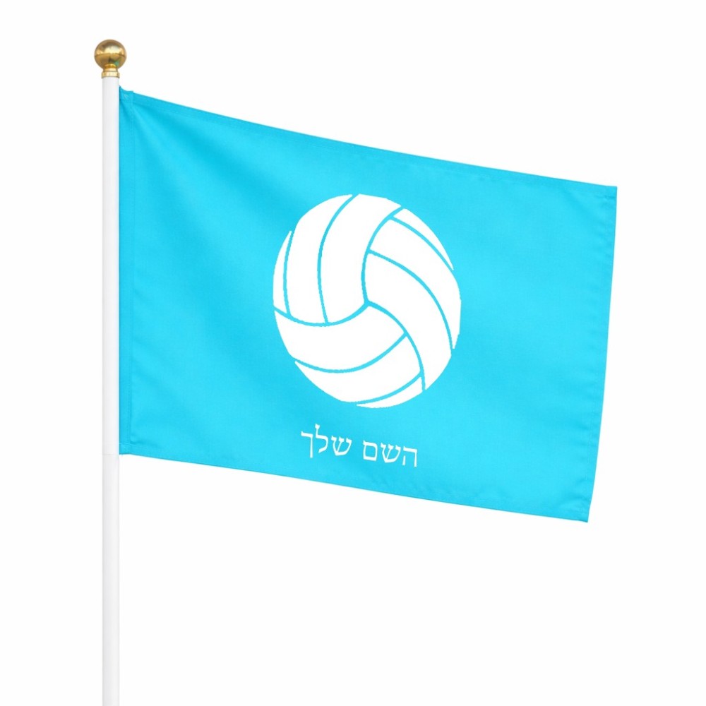 דיגלון בעיצוב אישי עם השם שלך בעיצוב כדור כדורעף גודל הדיגלון 20.5 × 14 ס"מ, ההדפסה מתבצעת בשני צידי הדגל, את השם המבוקש ניתן לציין בהזמנה, אם לא צויין אנחנו ניצור קשר לבירור.