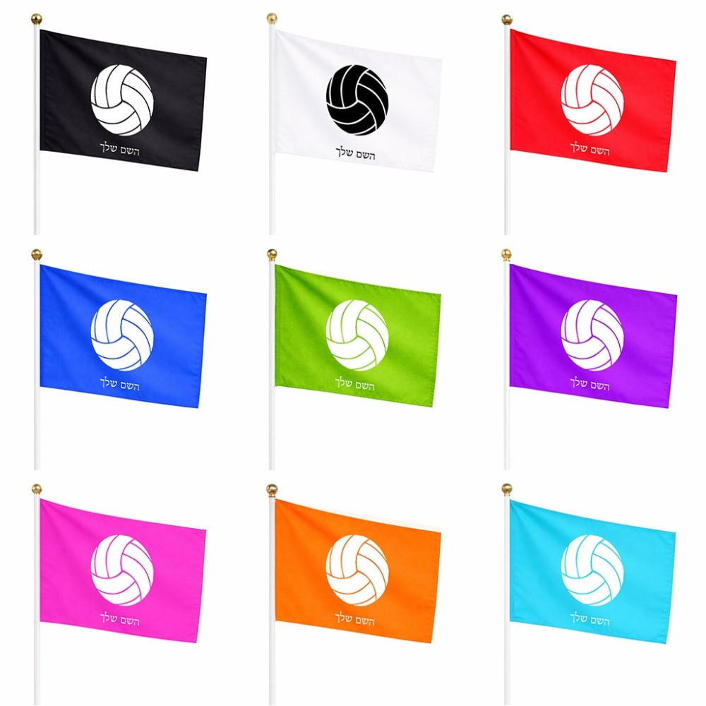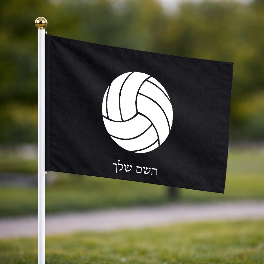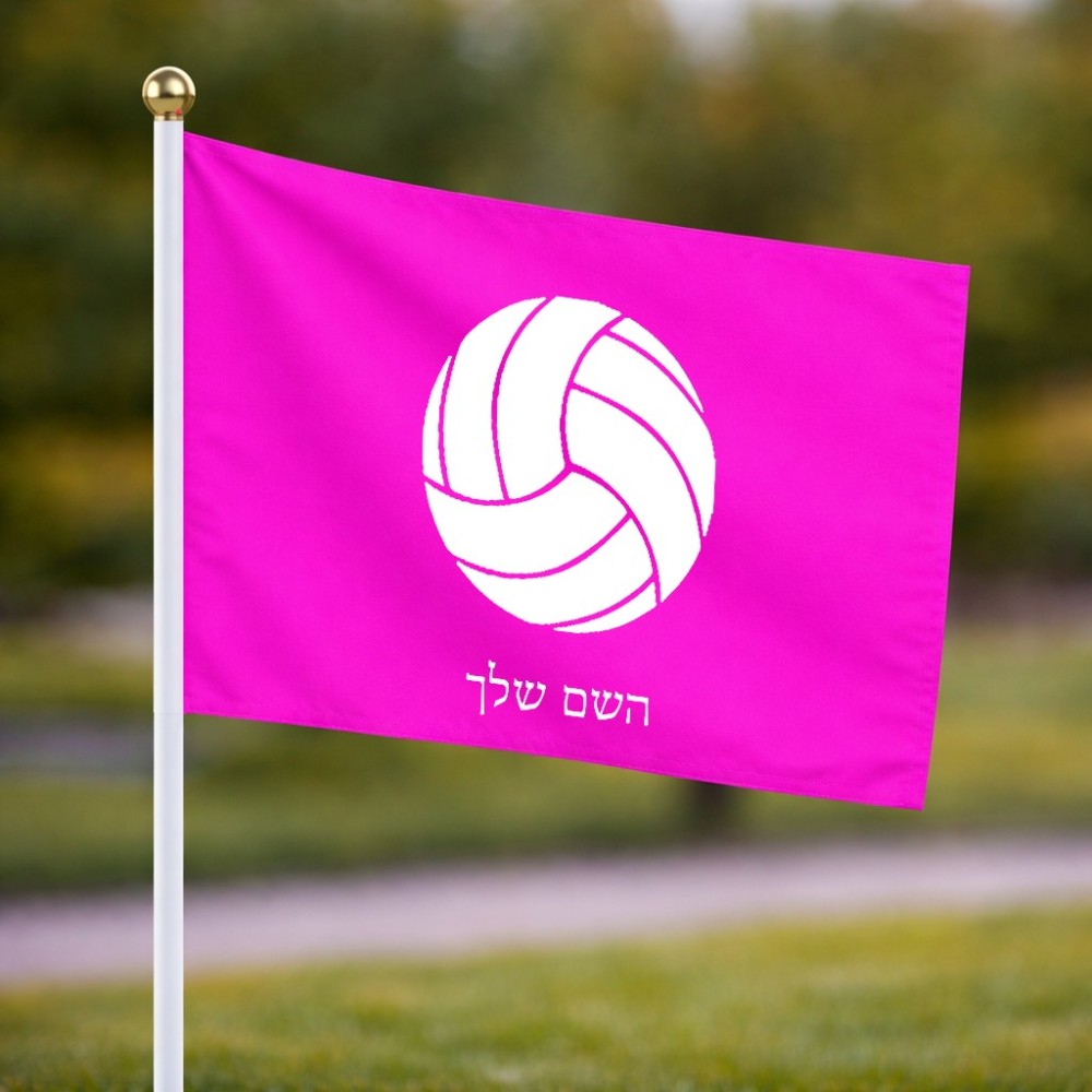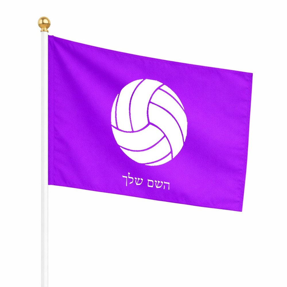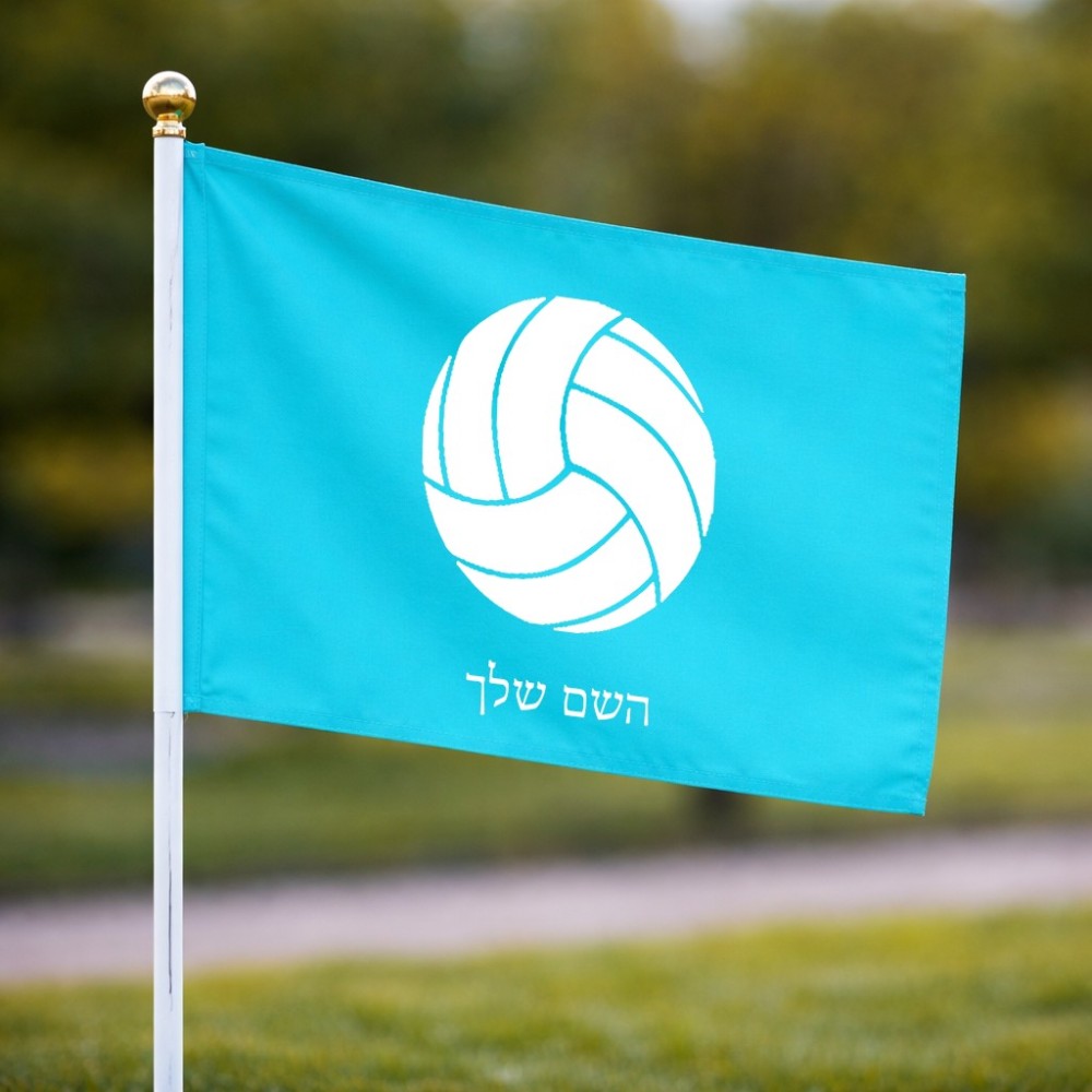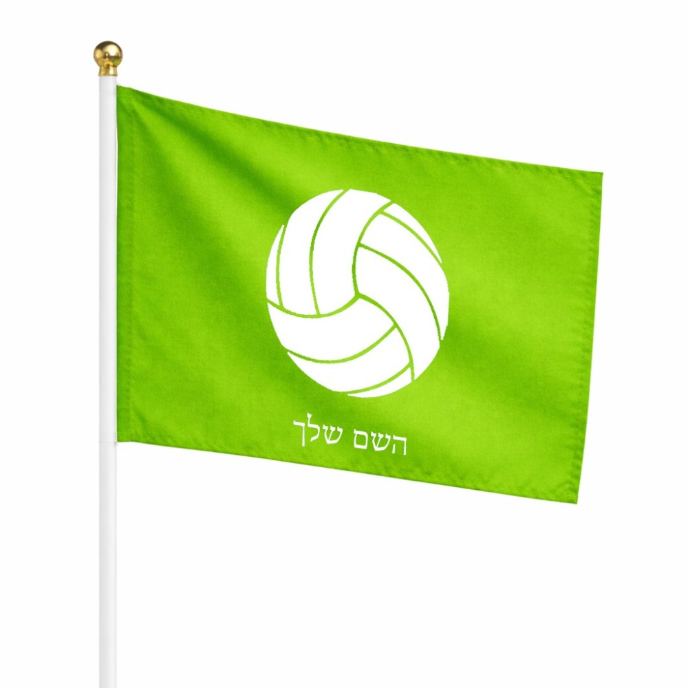 דיגלון בעיצוב אישי עם השם שלך בעיצוב כדור כדורעף גודל הדיגלון 20.5 × 14 ס"מ, ההדפסה מתבצעת בשני צידי הדגל, את השם המבוקש ניתן לציין בהזמנה, אם לא צויין אנחנו ניצור קשר לבירור.