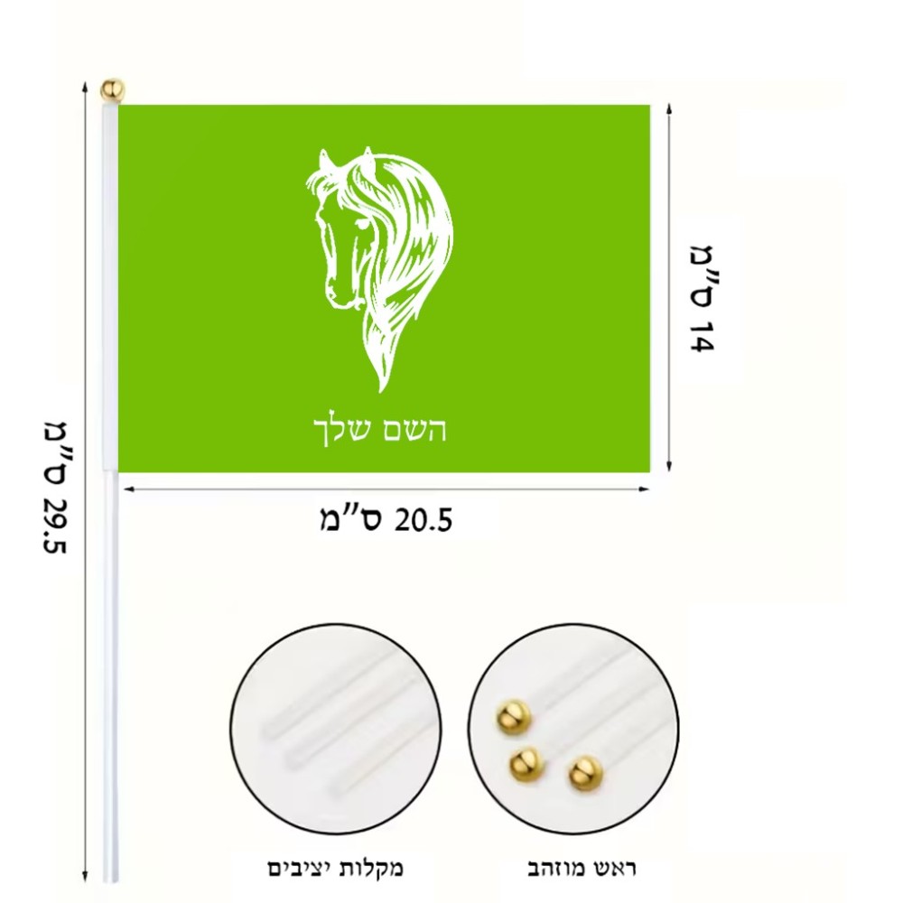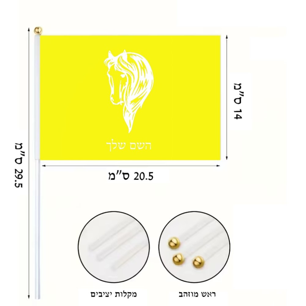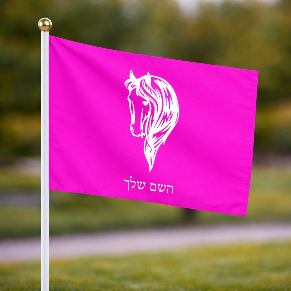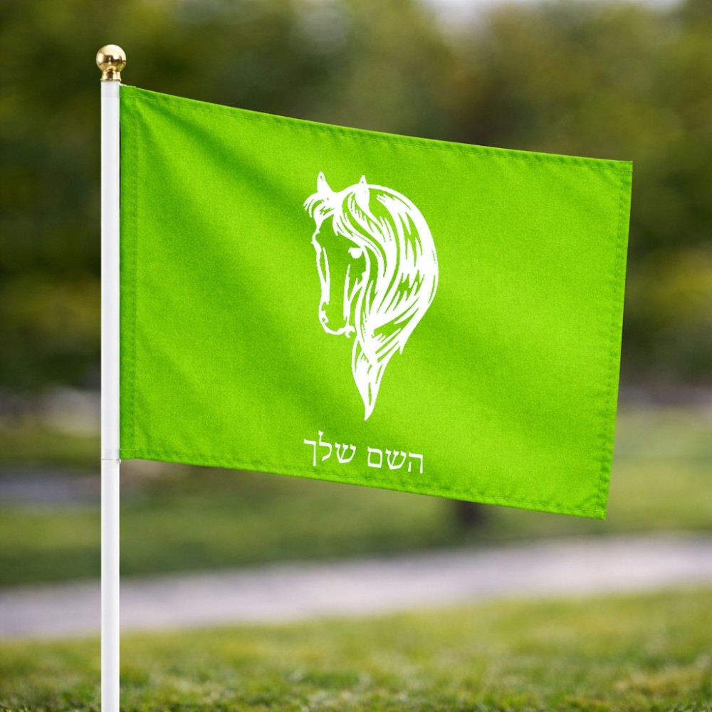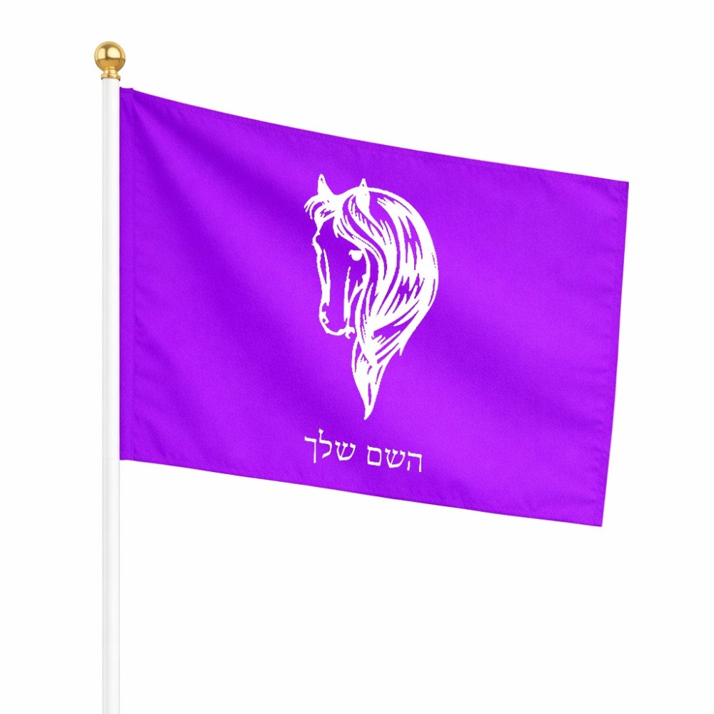 דיגלון בעיצוב אישי עם השם שלך בעיצוב ראש סוס גודל הדיגלון 20.5 × 14 ס"מ, ההדפסה מתבצעת בשני צידי הדגל, את השם המבוקש ניתן לציין בהזמנה, אם לא צויין אנחנו ניצור קשר לבירור.