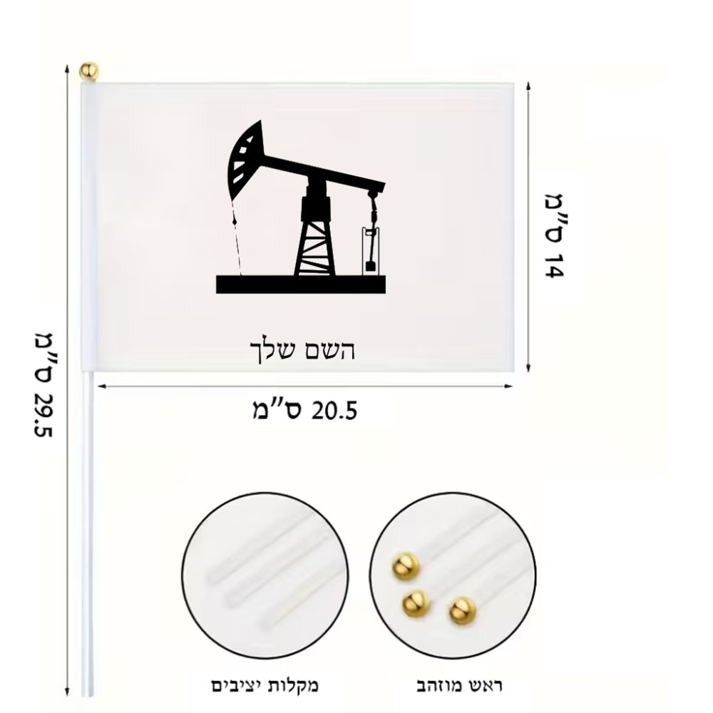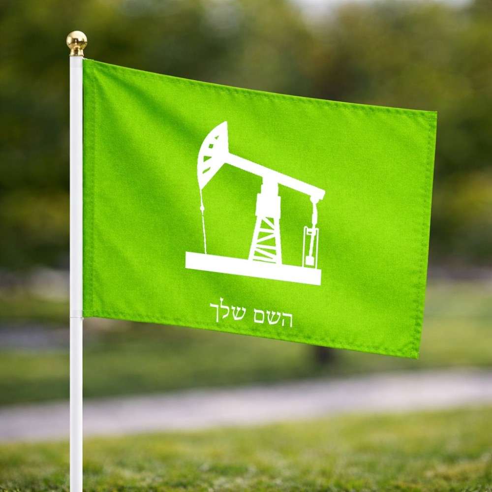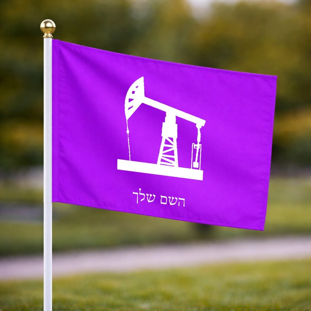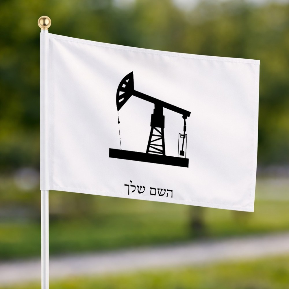 דיגלון בעיצוב אישי עם השם שלך בעיצוב באר נפט גודל הדיגלון 20.5 × 14 ס"מ, ההדפסה מתבצעת בשני צידי הדגל, את השם המבוקש ניתן לציין בהזמנה, אם לא צויין אנחנו ניצור קשר לבירור.