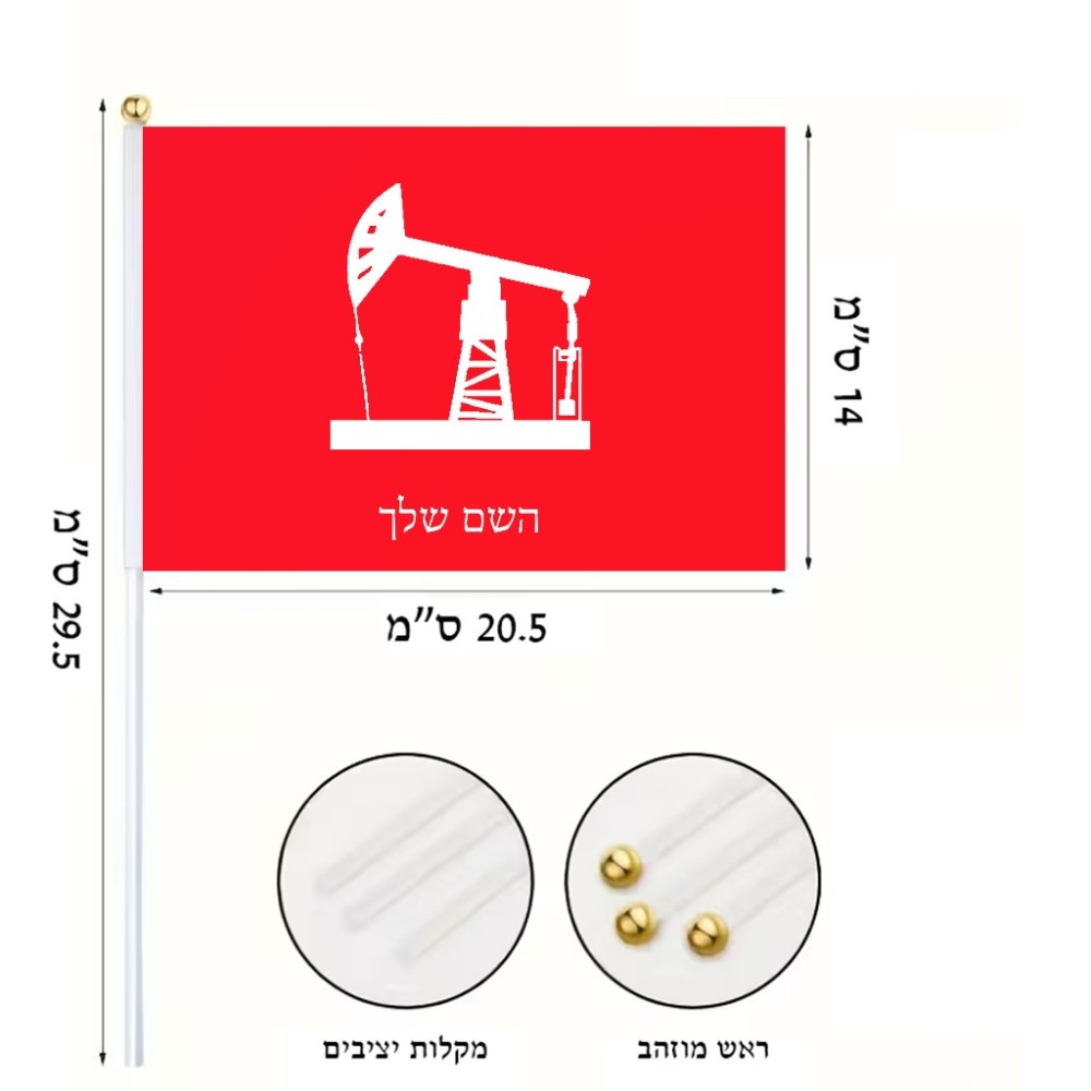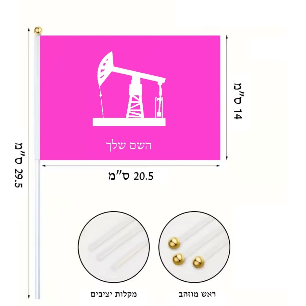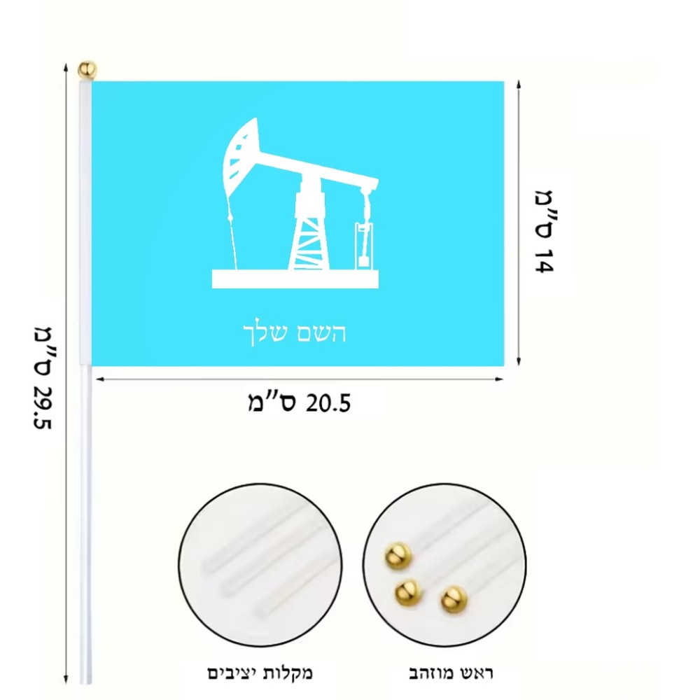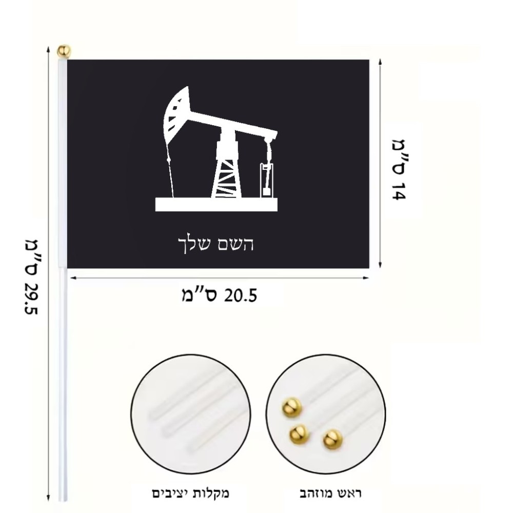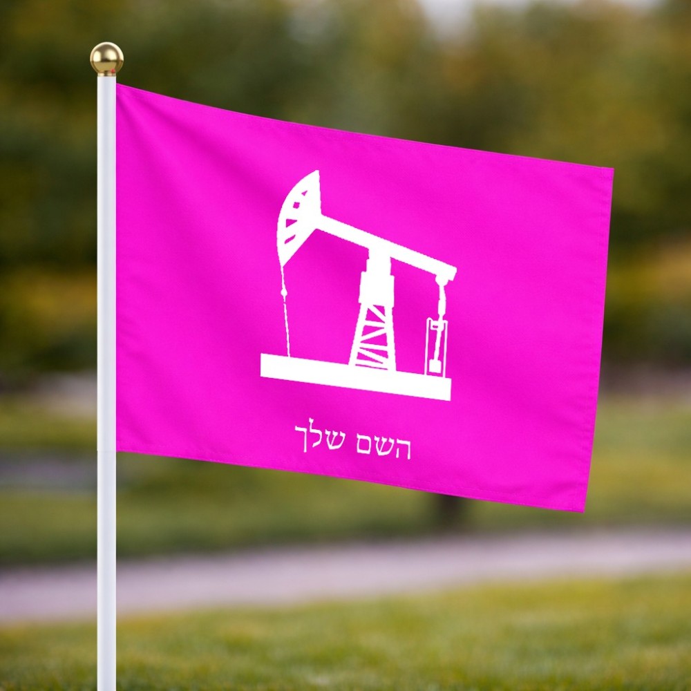 דיגלון בעיצוב אישי עם השם שלך בעיצוב באר נפט גודל הדיגלון 20.5 × 14 ס"מ, ההדפסה מתבצעת בשני צידי הדגל, את השם המבוקש ניתן לציין בהזמנה, אם לא צויין אנחנו ניצור קשר לבירור.