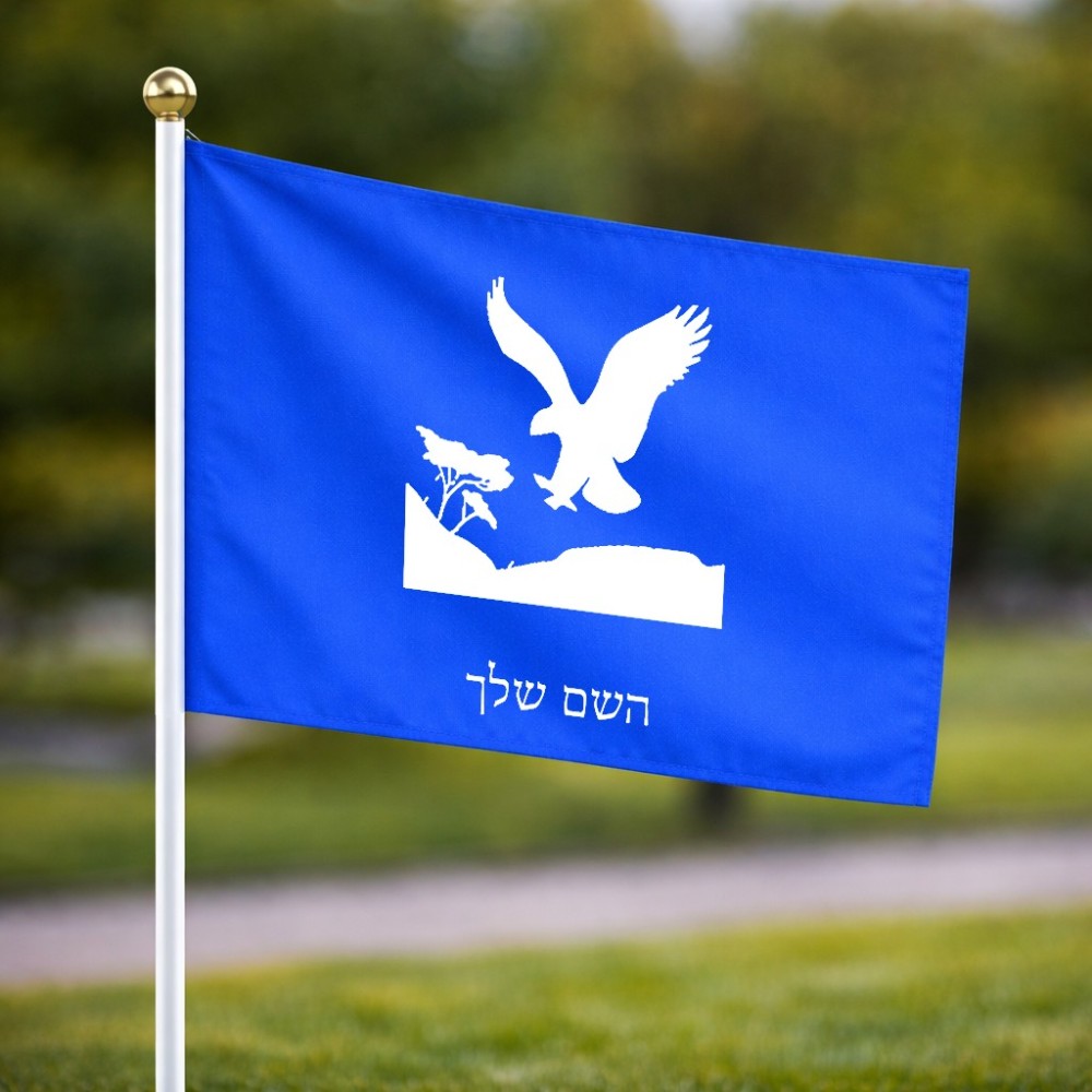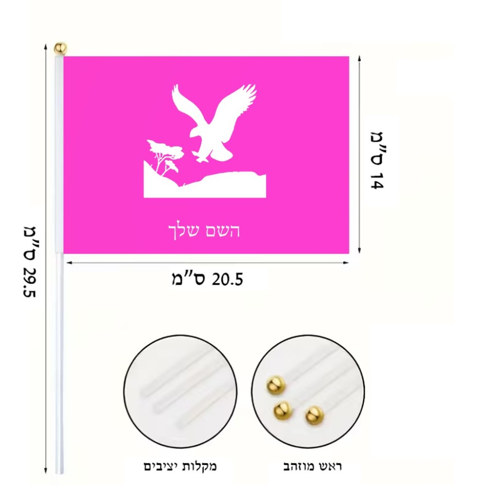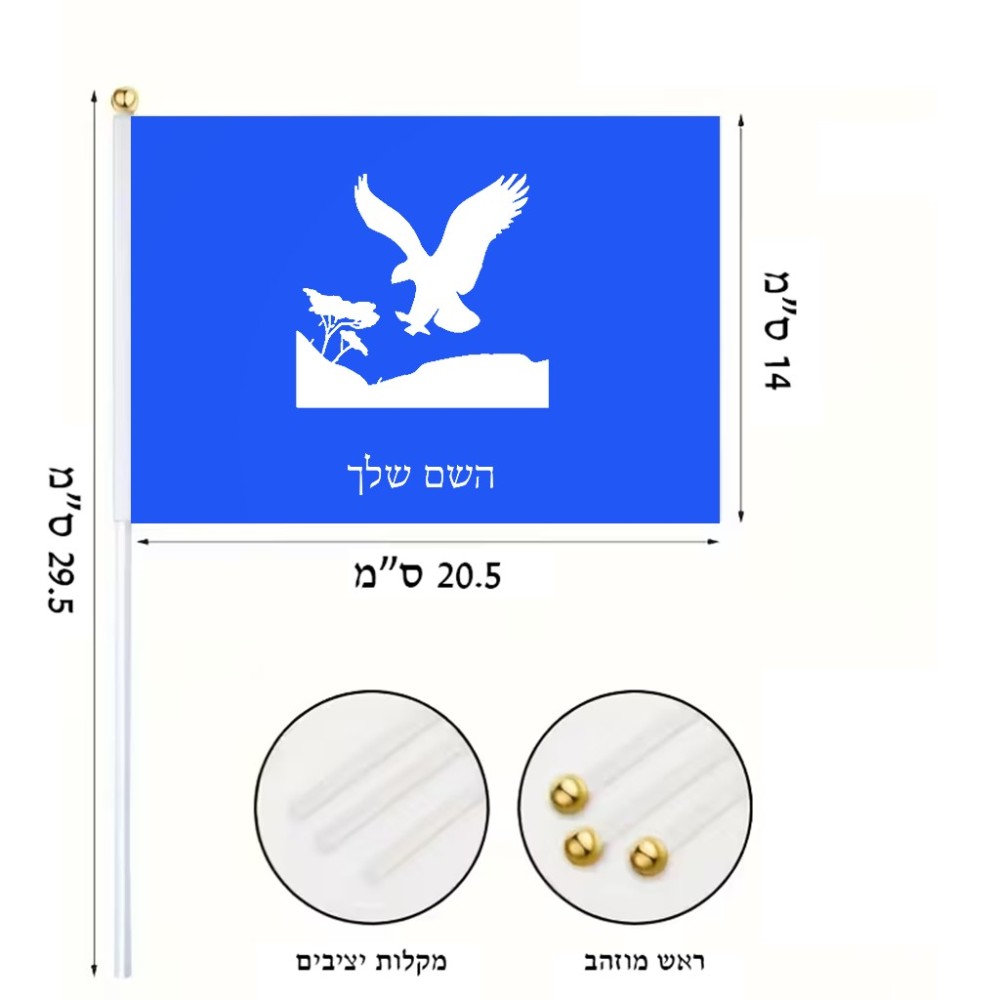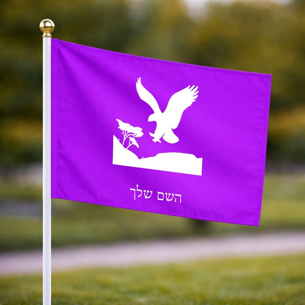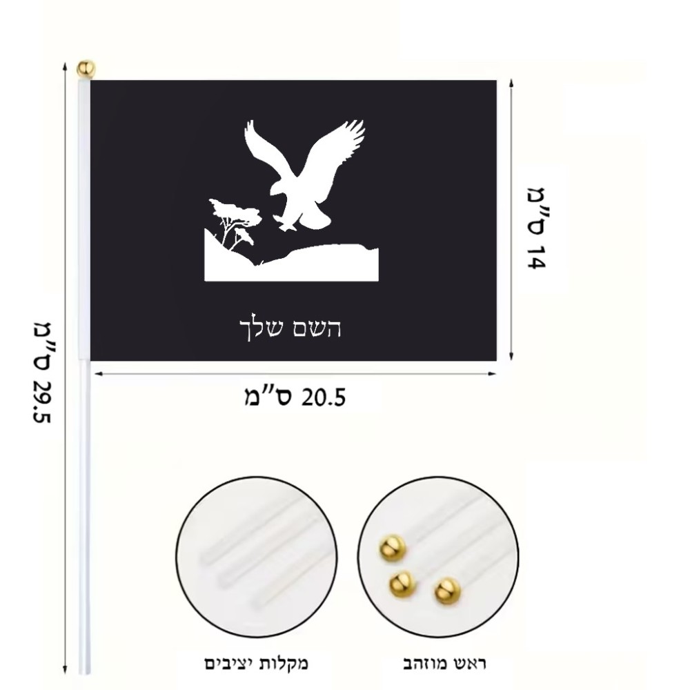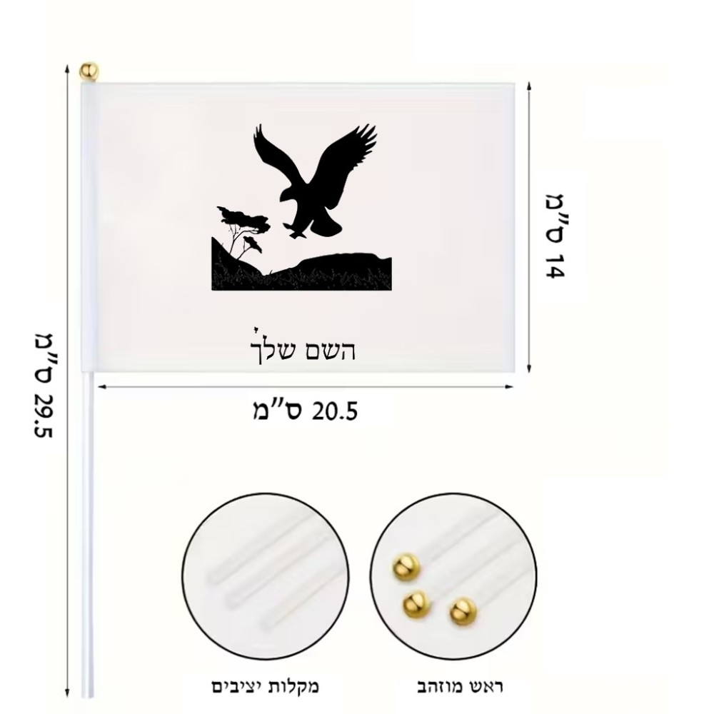 דיגלון בעיצוב אישי עם השם שלך בעיצוב נשר אמריקאי גודל הדיגלון 20.5 × 14 ס"מ, ההדפסה מתבצעת בשני צידי הדגל, את השם המבוקש ניתן לציין בהזמנה, אם לא צויין אנחנו ניצור קשר לבירור.