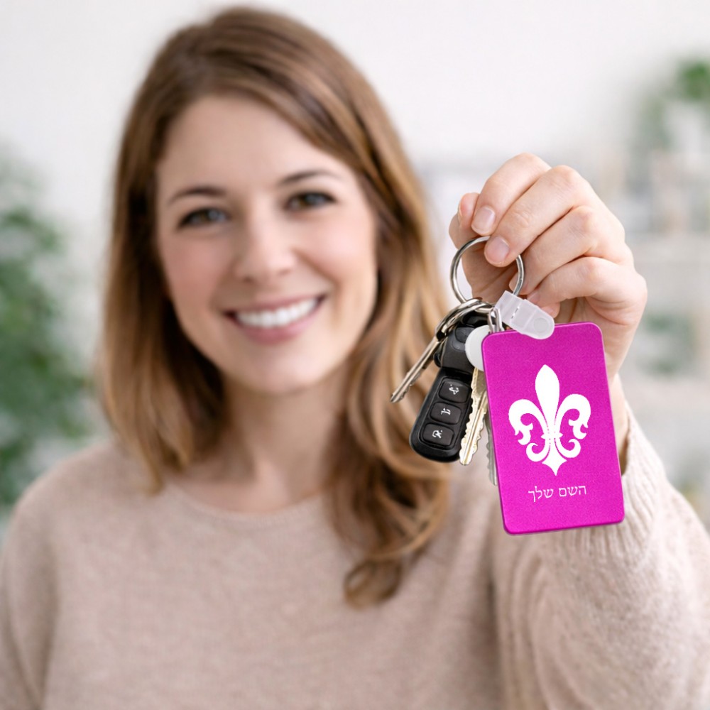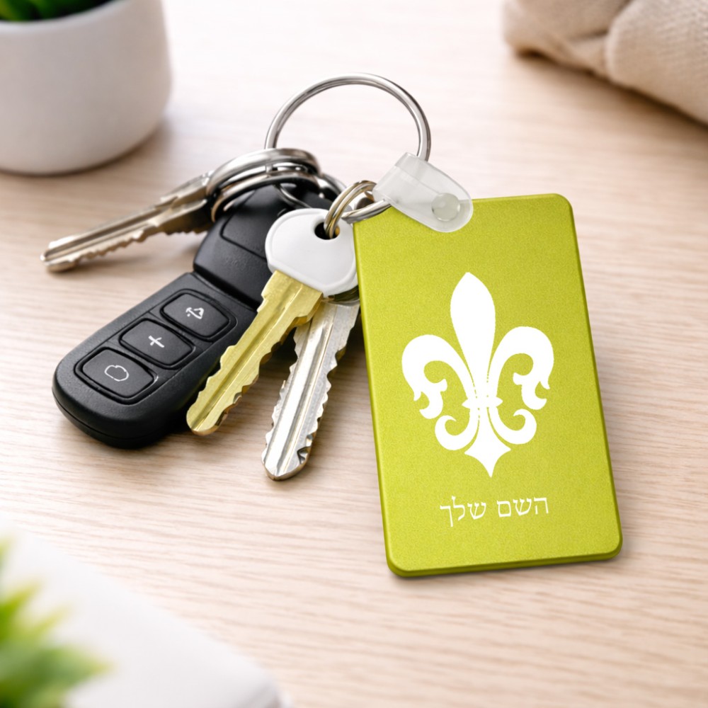 מחזיק מפתחות בצורת מלבן בעיצוב אישי עם השם שלך בעיצוב פרחי פרחים - צרפת גודל המחזיק 6 × 4 ס"מ. את השם המבוקש ניתן לציין בהזמנה, אם לא צויין אנחנו ניצור קשר לבירור.