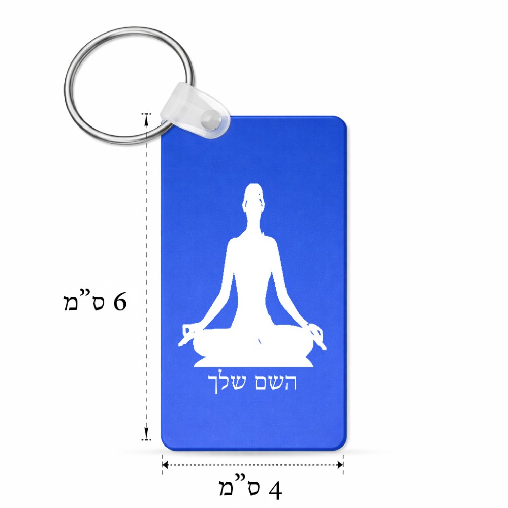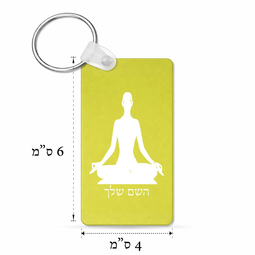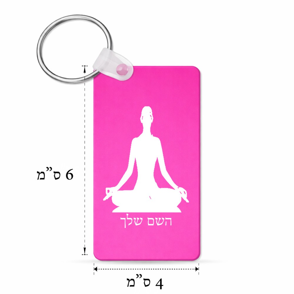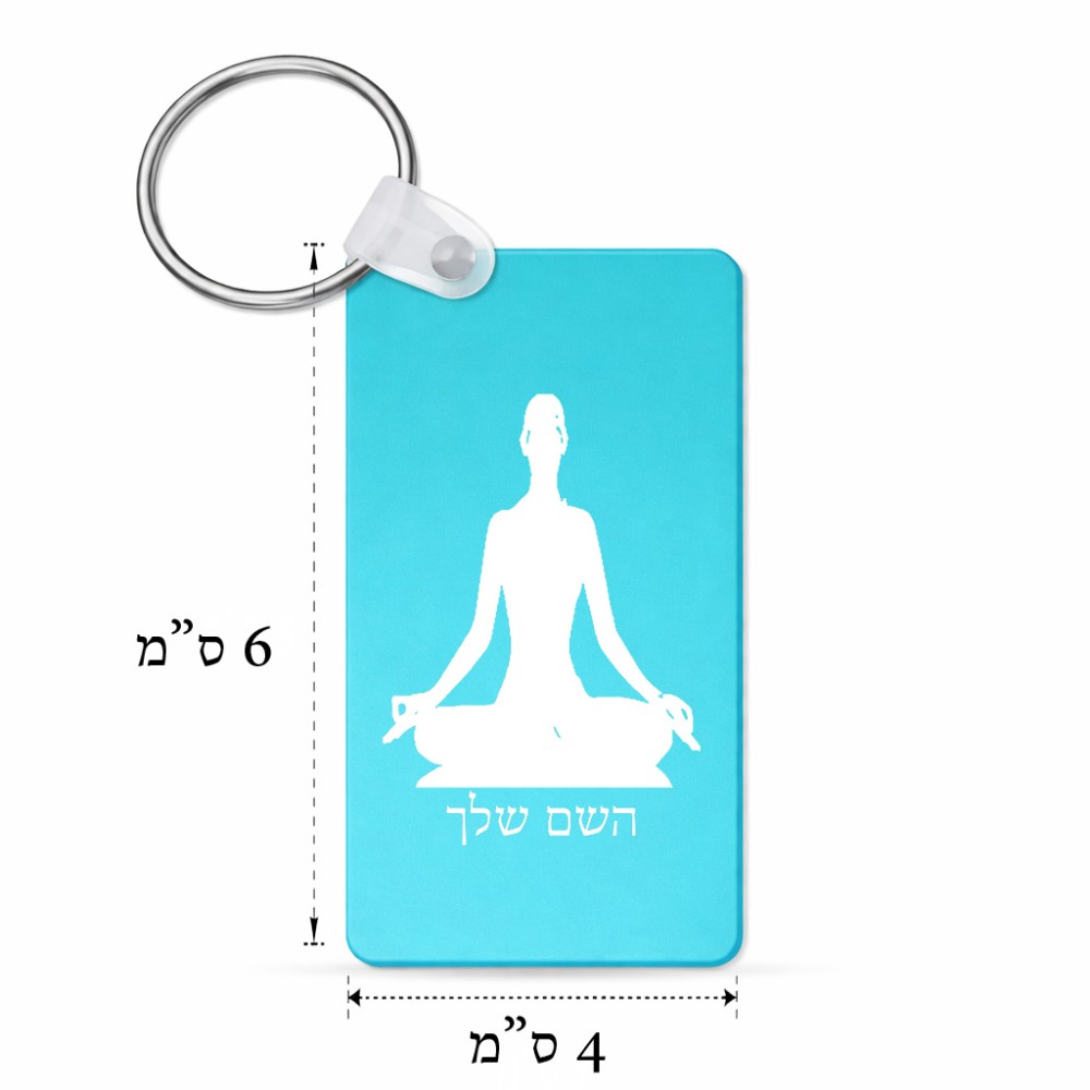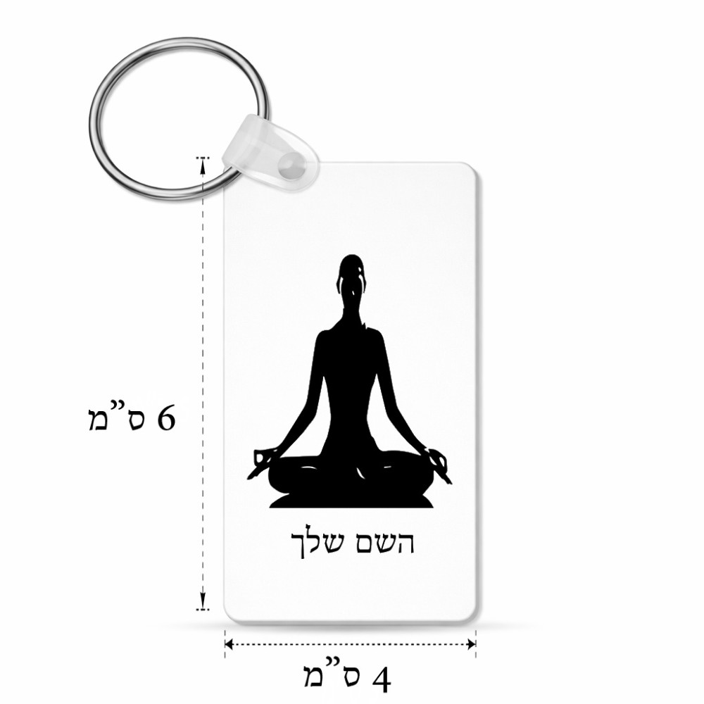מחזיק מפתחות בצורת מלבן בעיצוב אישי עם השם שלך בעיצוב אימון יוגה גודל המחזיק 6 × 4 ס"מ. את השם המבוקש ניתן לציין בהזמנה, אם לא צויין אנחנו ניצור קשר לבירור.