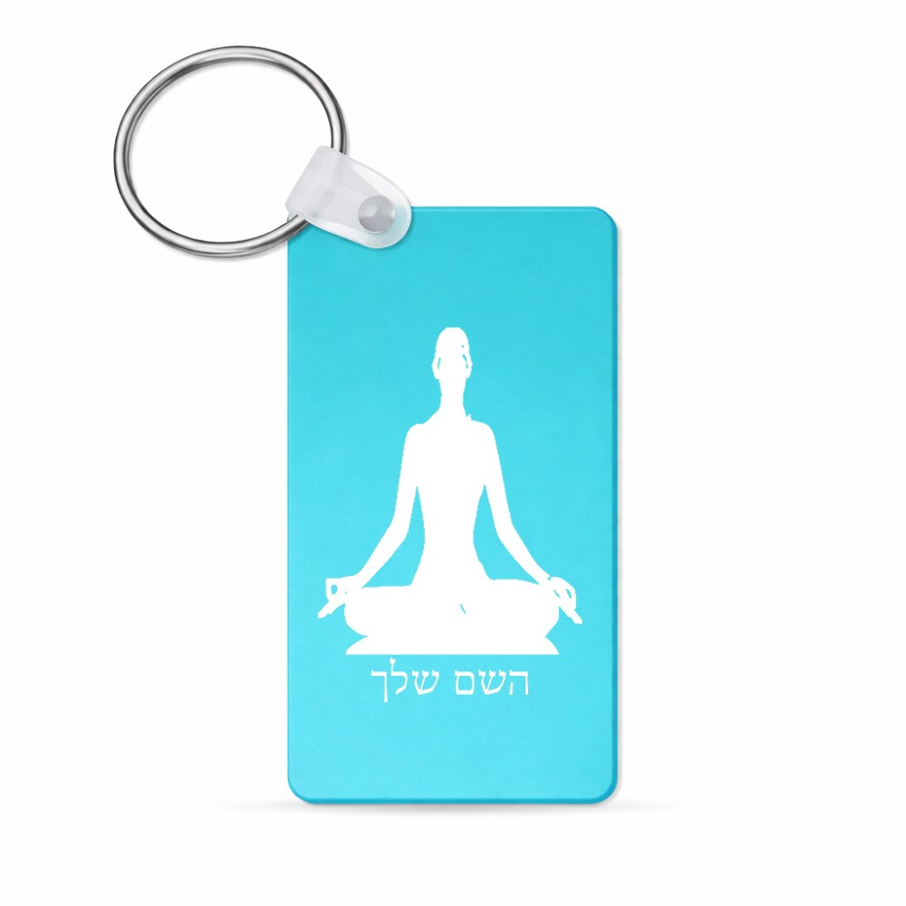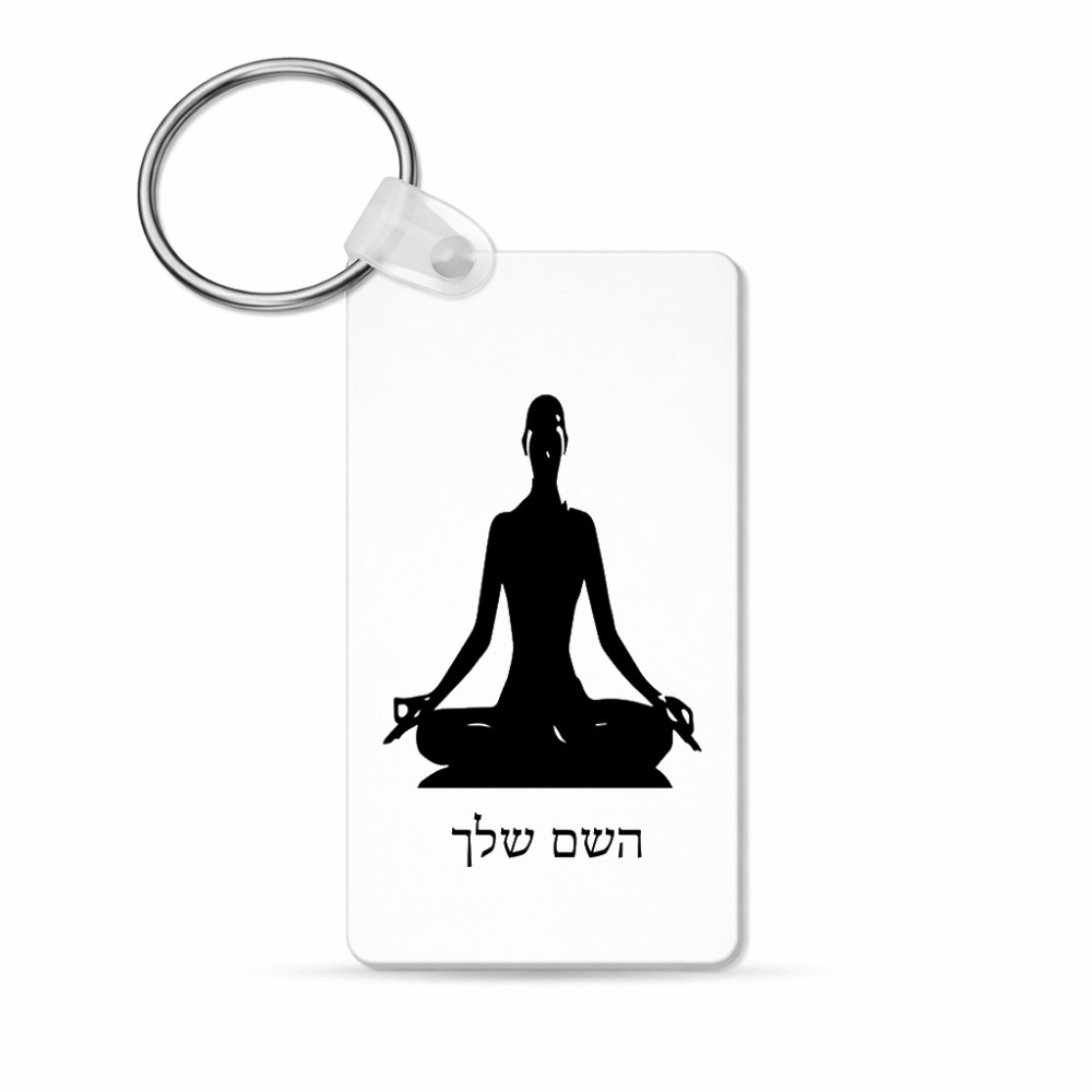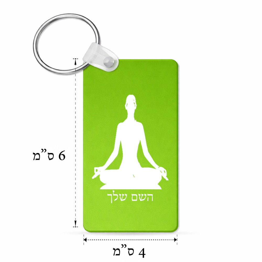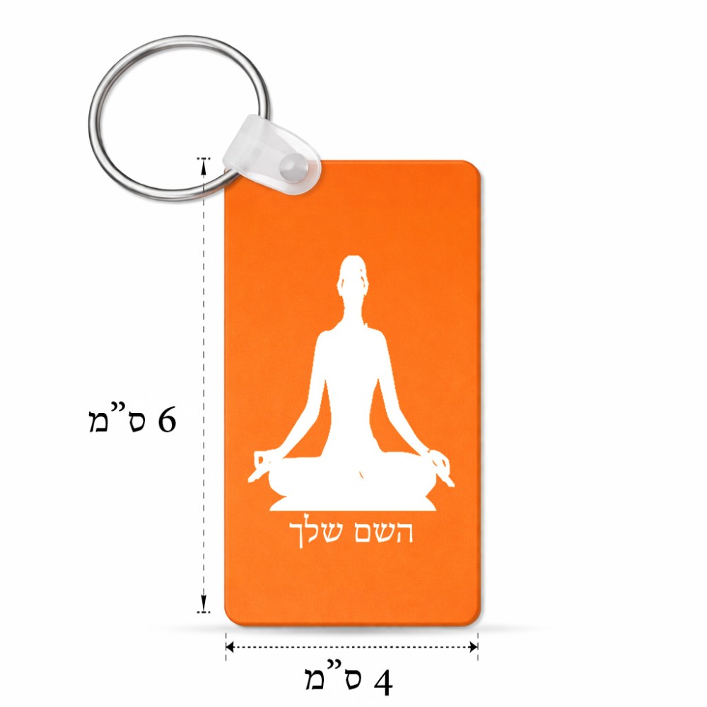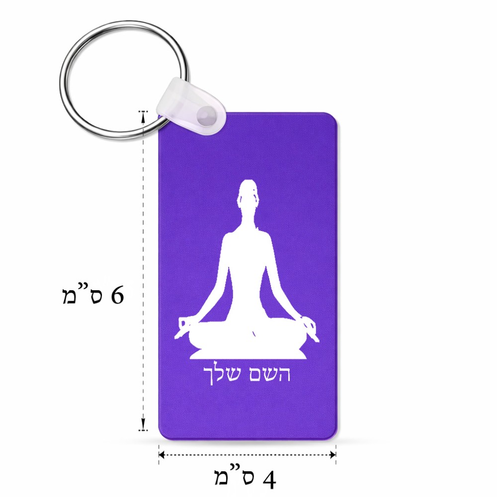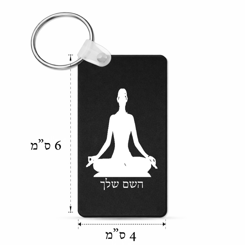מחזיק מפתחות בצורת מלבן בעיצוב אישי עם השם שלך בעיצוב אימון יוגה גודל המחזיק 6 × 4 ס"מ. את השם המבוקש ניתן לציין בהזמנה, אם לא צויין אנחנו ניצור קשר לבירור.
