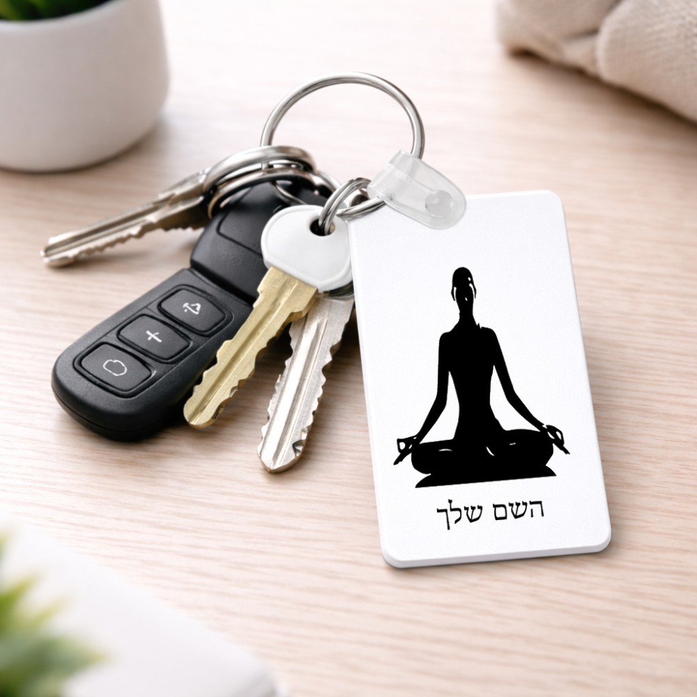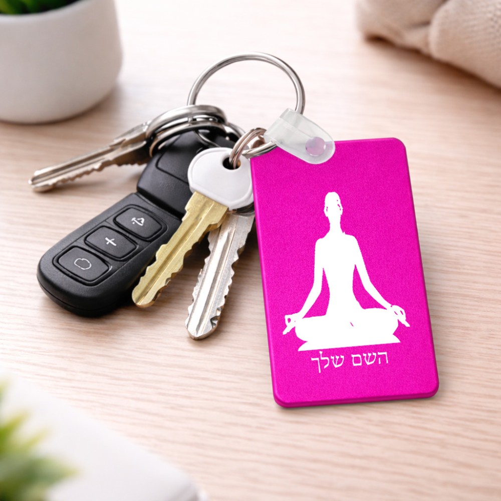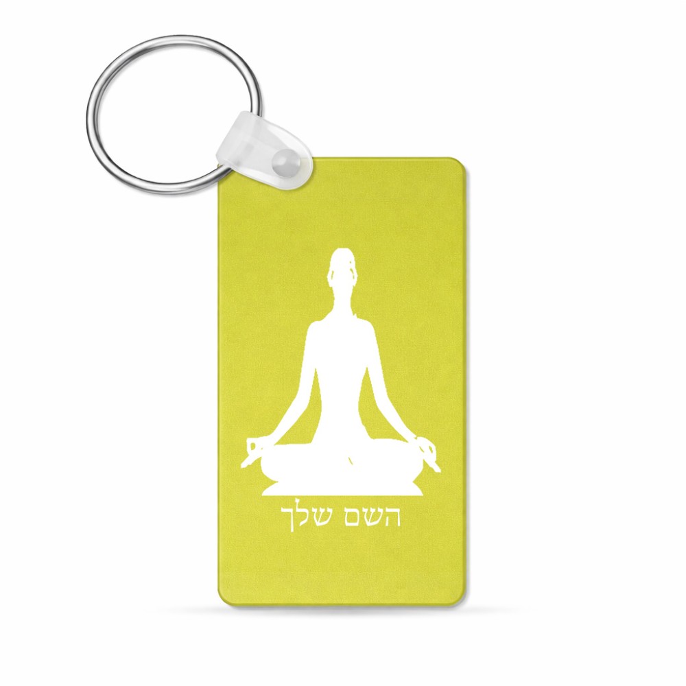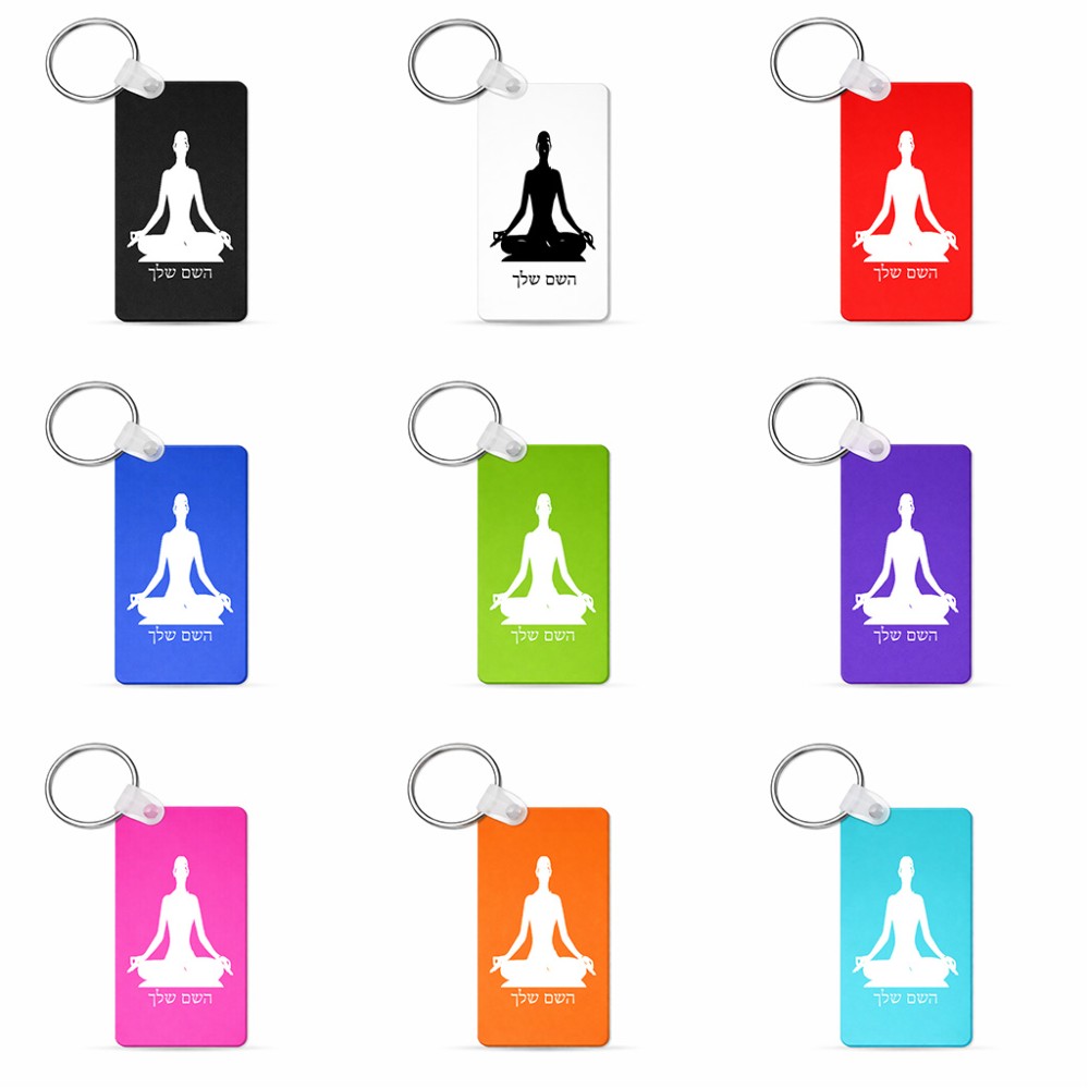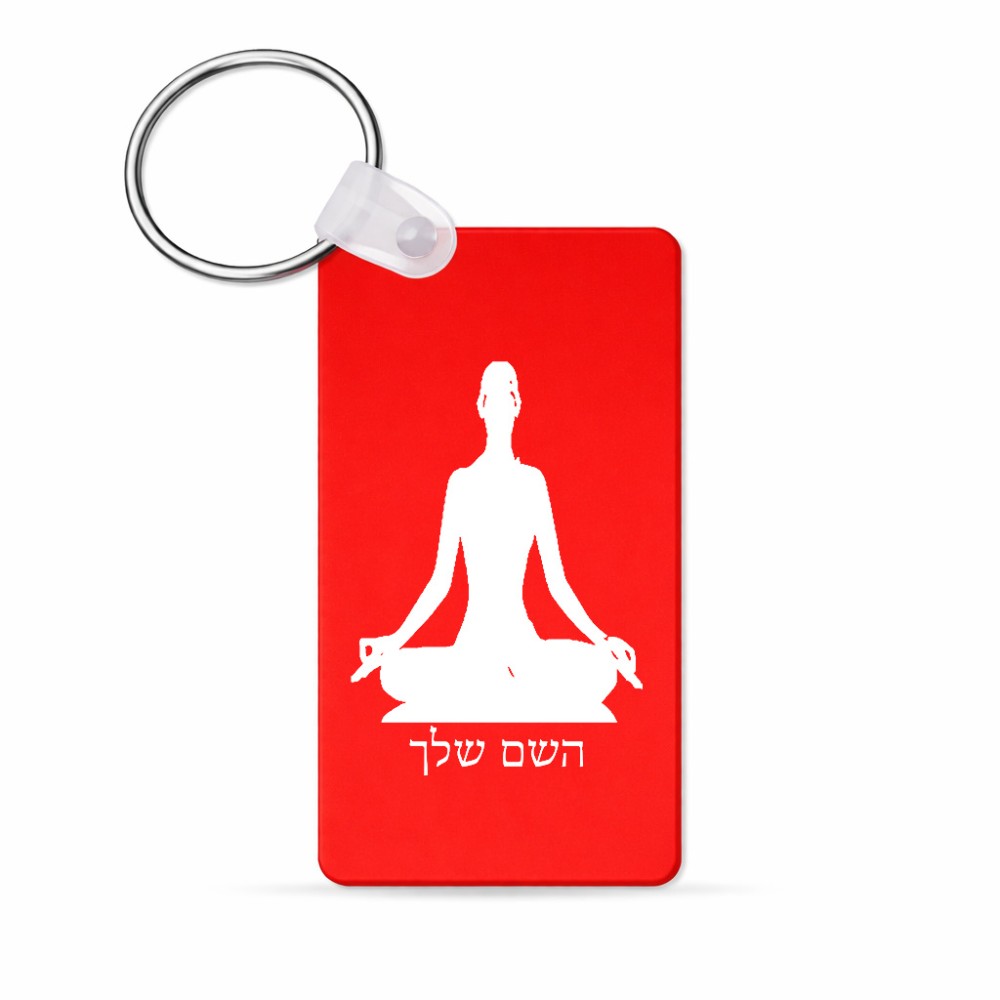 מחזיק מפתחות בצורת מלבן בעיצוב אישי עם השם שלך בעיצוב אימון יוגה גודל המחזיק 6 × 4 ס"מ. את השם המבוקש ניתן לציין בהזמנה, אם לא צויין אנחנו ניצור קשר לבירור.