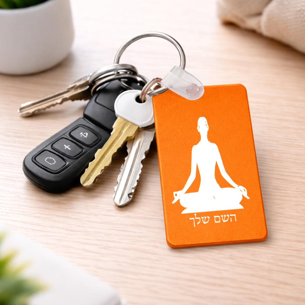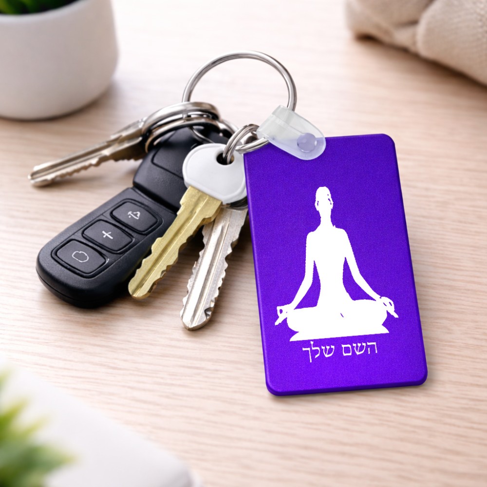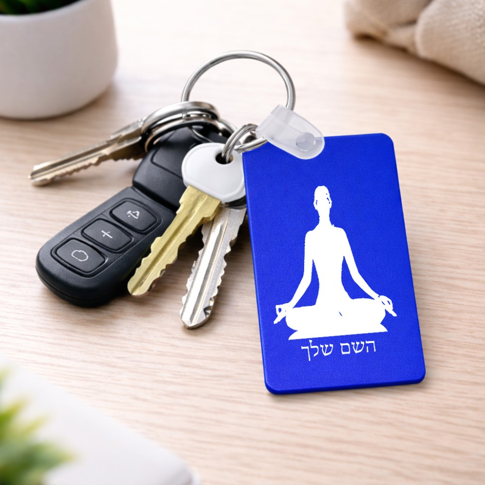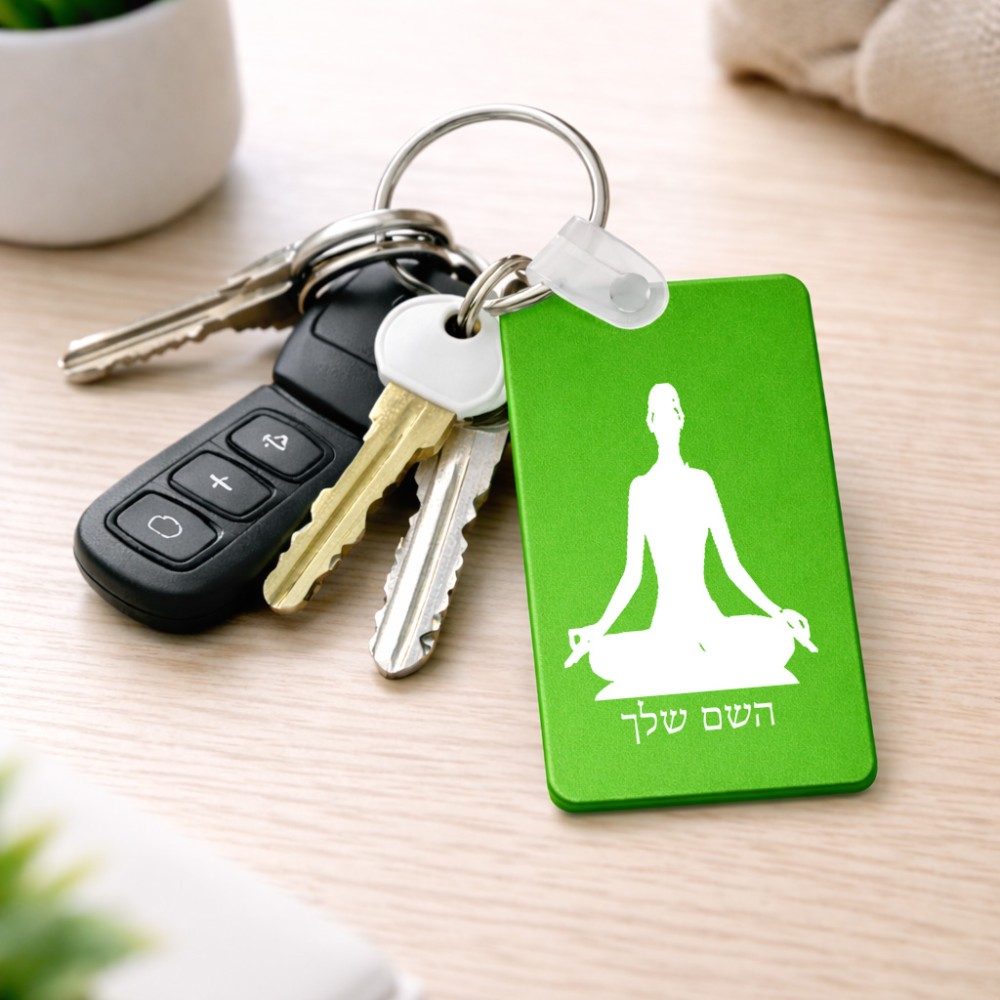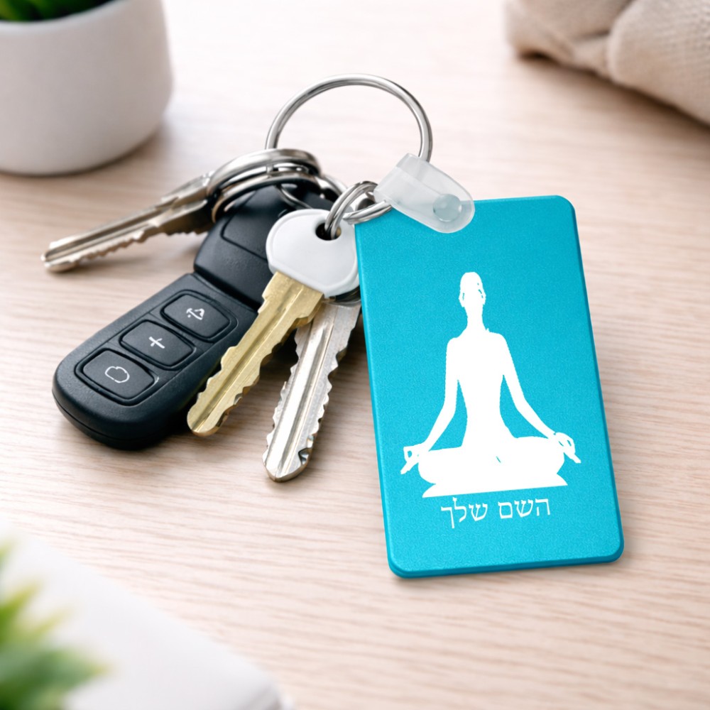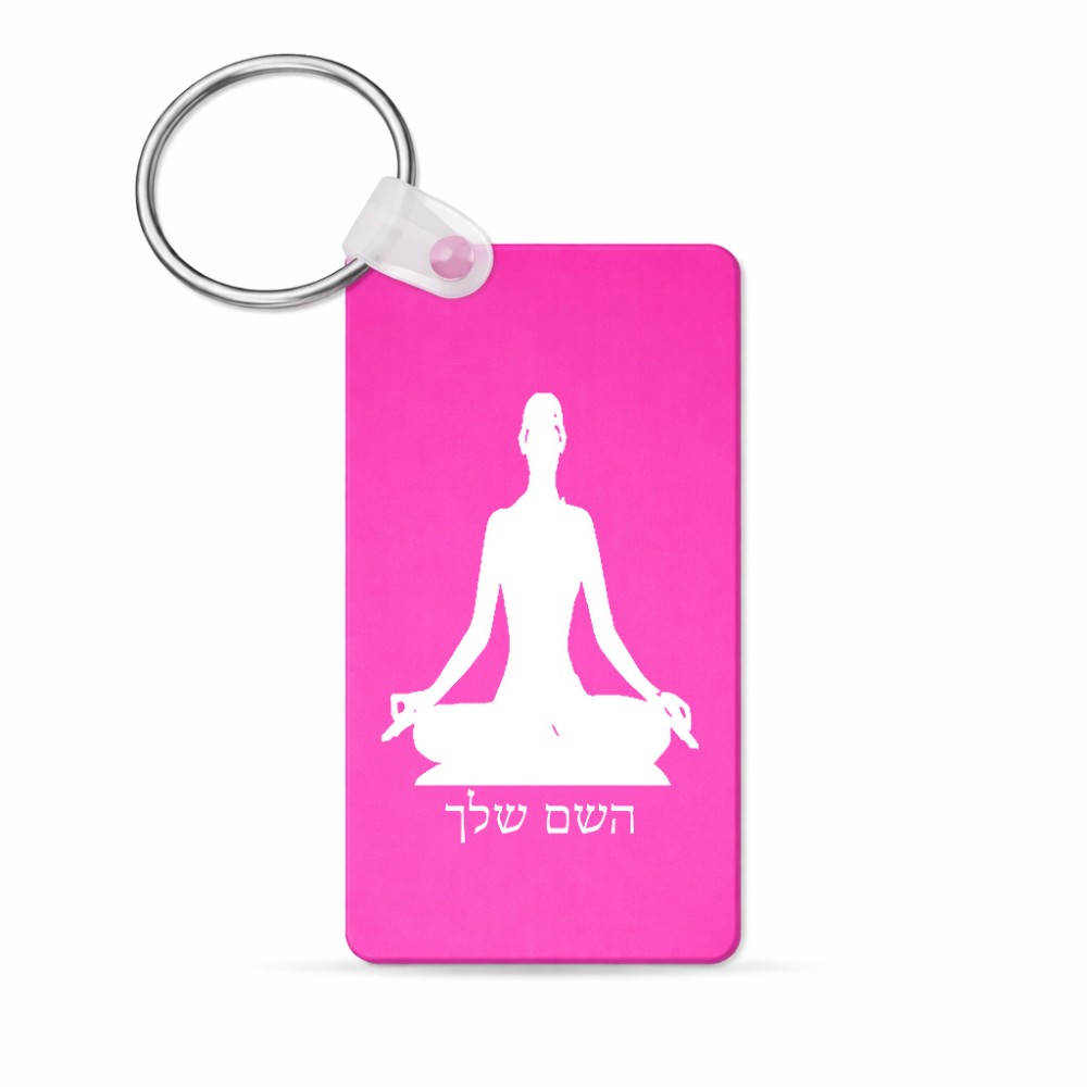 מחזיק מפתחות בצורת מלבן בעיצוב אישי עם השם שלך בעיצוב אימון יוגה גודל המחזיק 6 × 4 ס"מ. את השם המבוקש ניתן לציין בהזמנה, אם לא צויין אנחנו ניצור קשר לבירור.