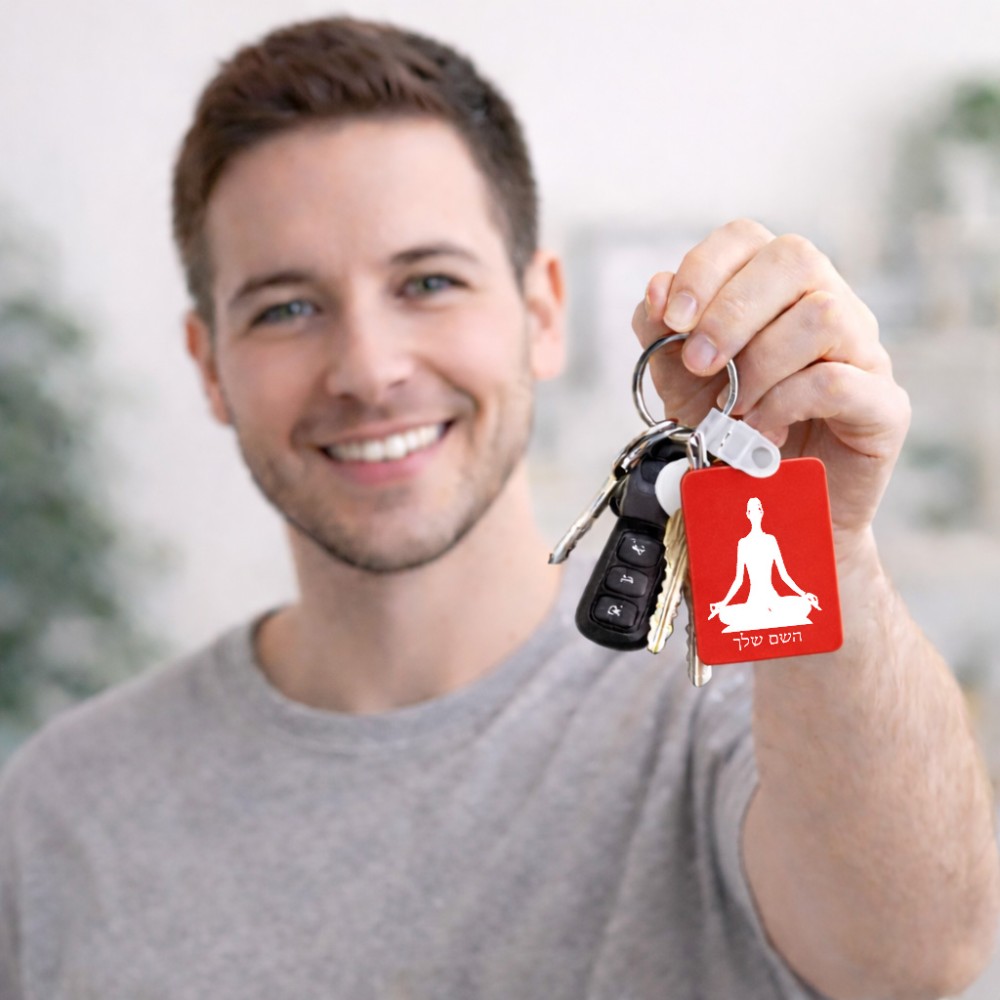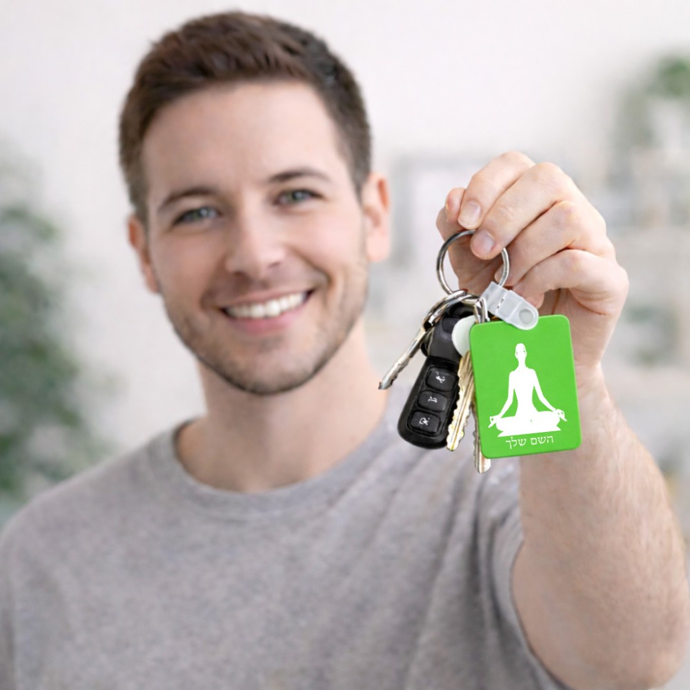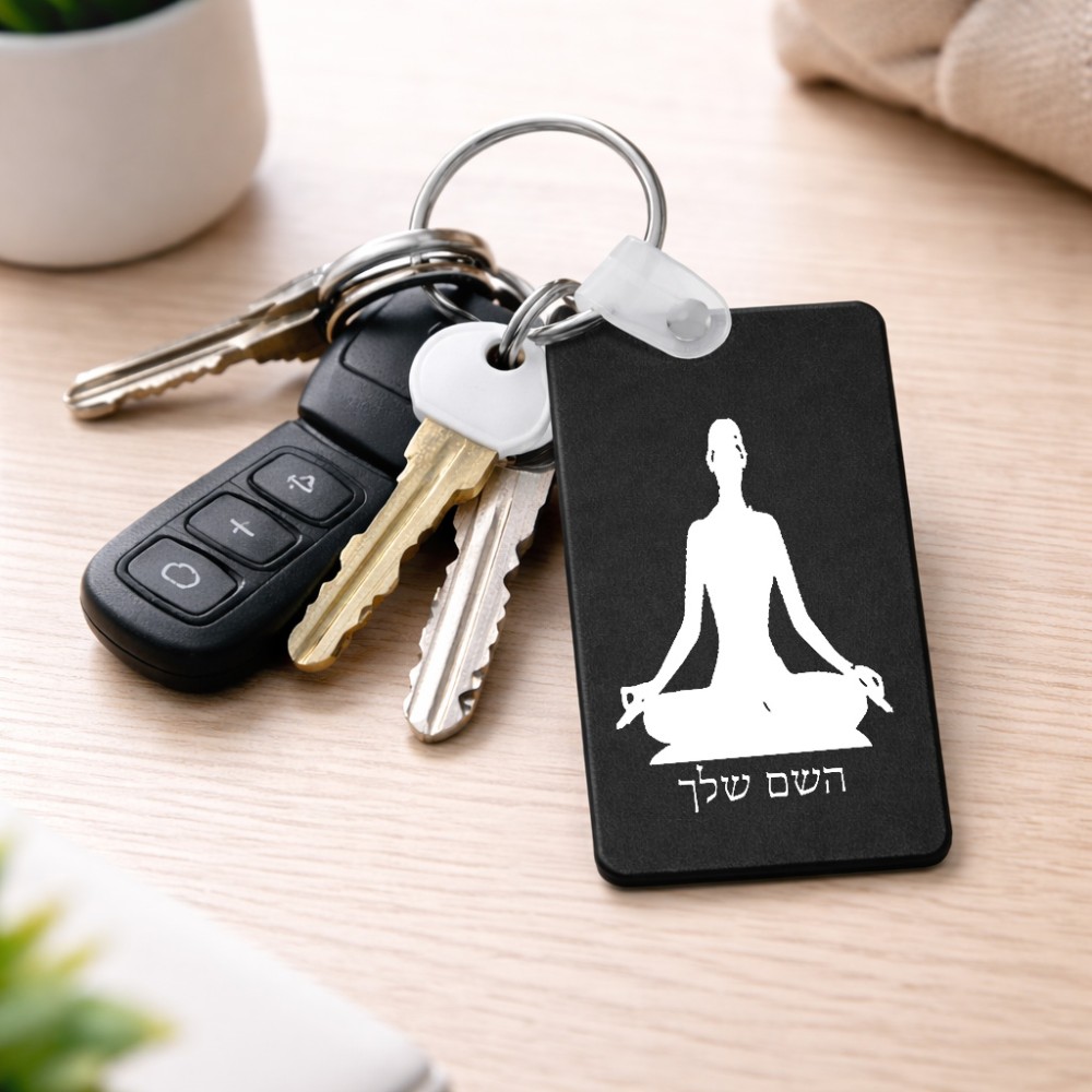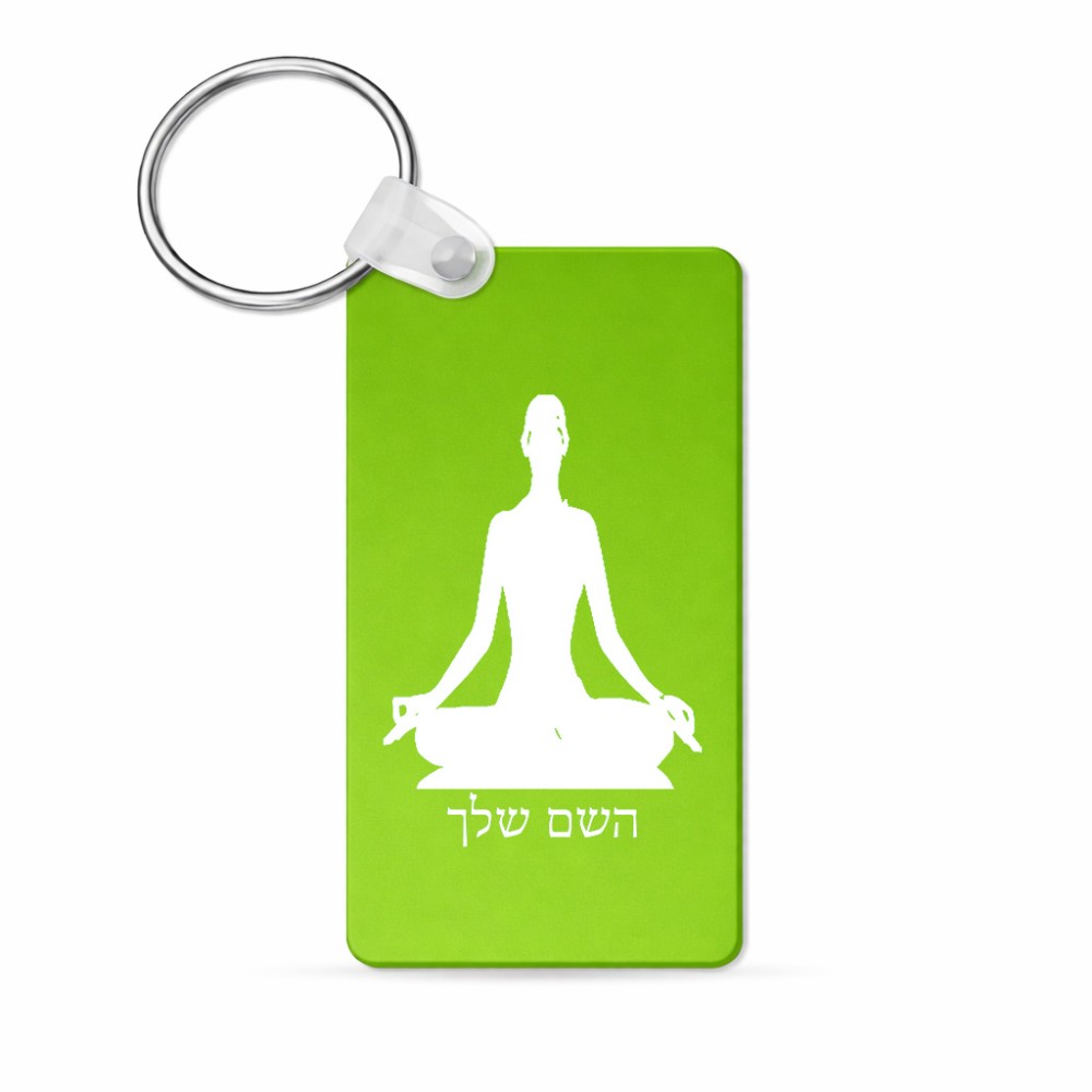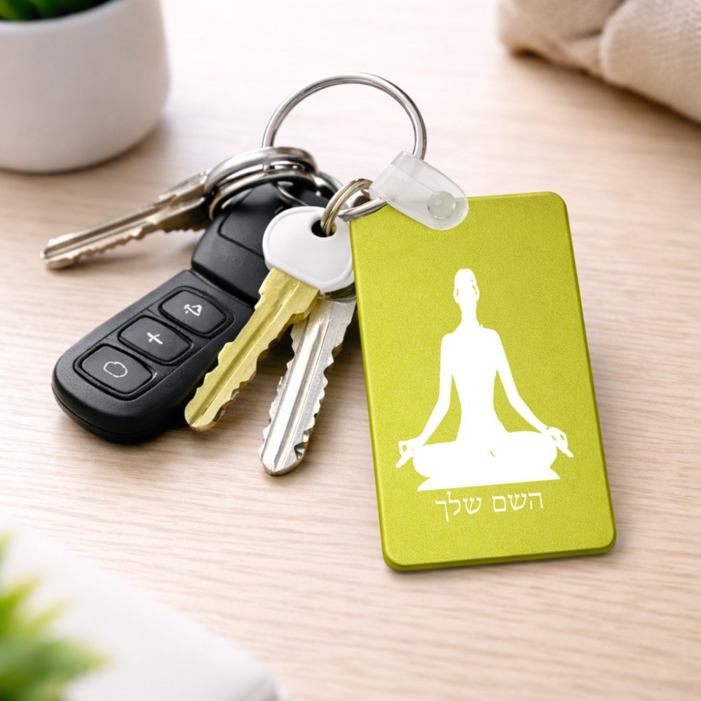 מחזיק מפתחות בצורת מלבן בעיצוב אישי עם השם שלך בעיצוב אימון יוגה גודל המחזיק 6 × 4 ס"מ. את השם המבוקש ניתן לציין בהזמנה, אם לא צויין אנחנו ניצור קשר לבירור.