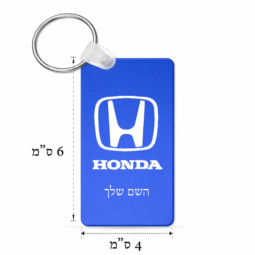 מחזיק מפתחות בצורת מלבן בעיצוב אישי עם השם שלך בעיצוב הונדה 2 גודל המחזיק 6 × 4 ס"מ. את השם המבוקש ניתן לציין בהזמנה, אם לא צויין אנחנו ניצור קשר לבירור.