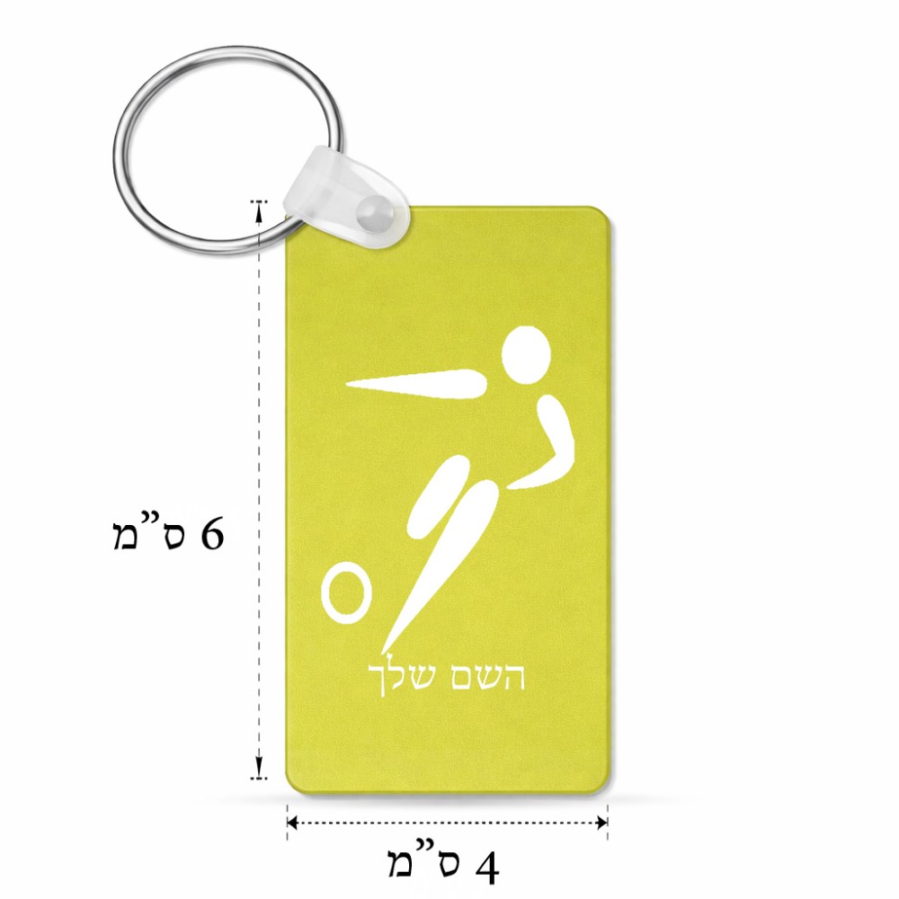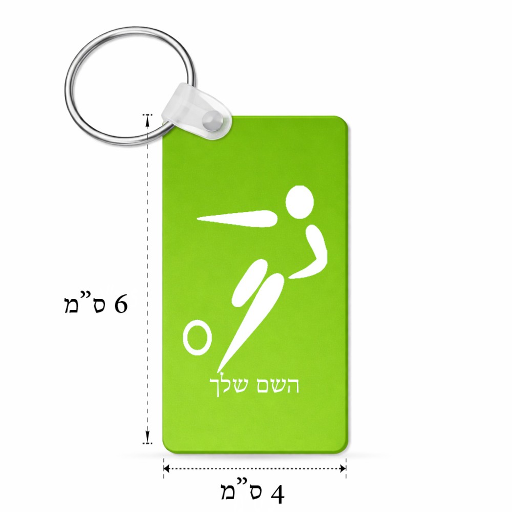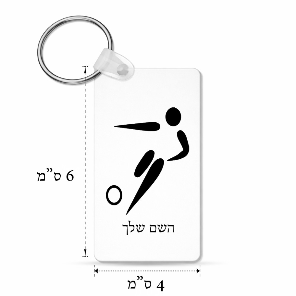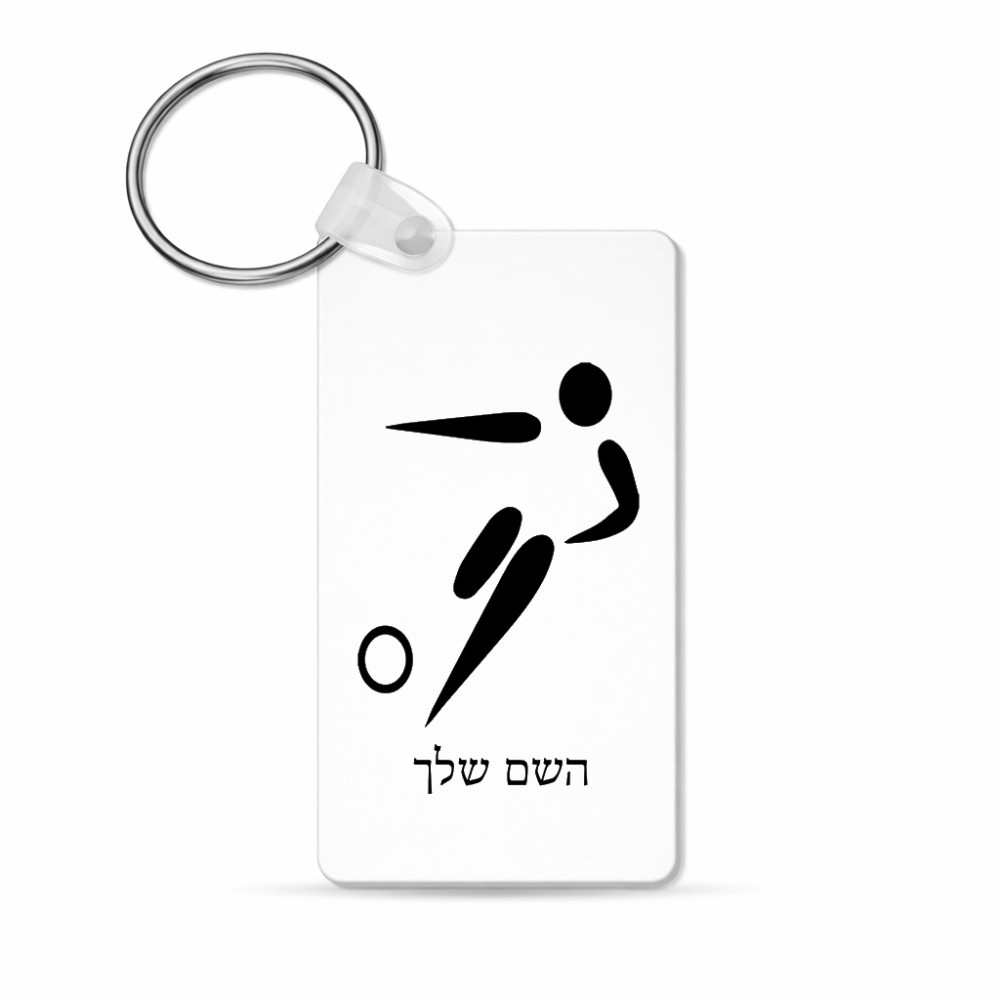מחזיק מפתחות בצורת מלבן בעיצוב אישי עם השם שלך בעיצוב כדורגל אולימפי גודל המחזיק 6 × 4 ס"מ. את השם המבוקש ניתן לציין בהזמנה, אם לא צויין אנחנו ניצור קשר לבירור.
