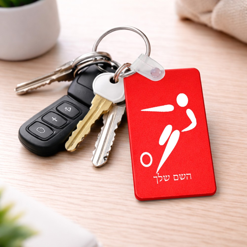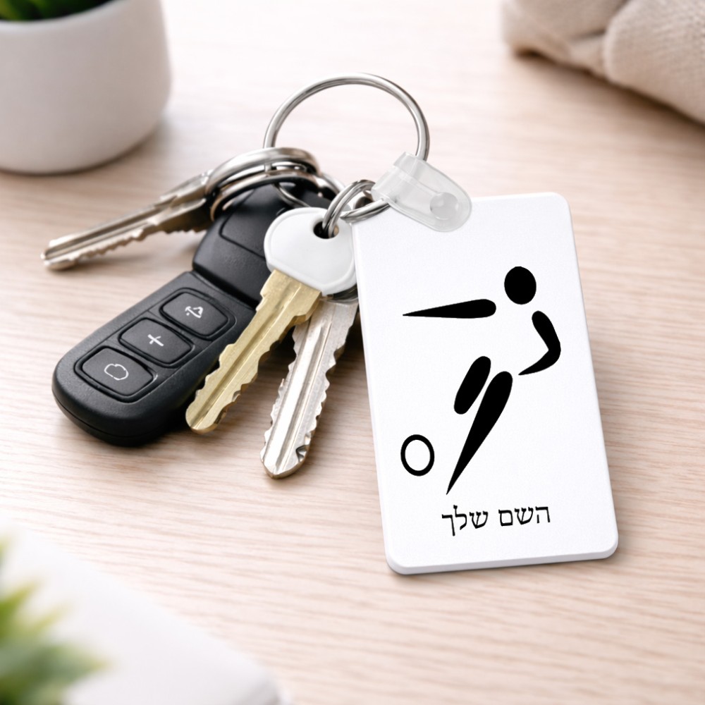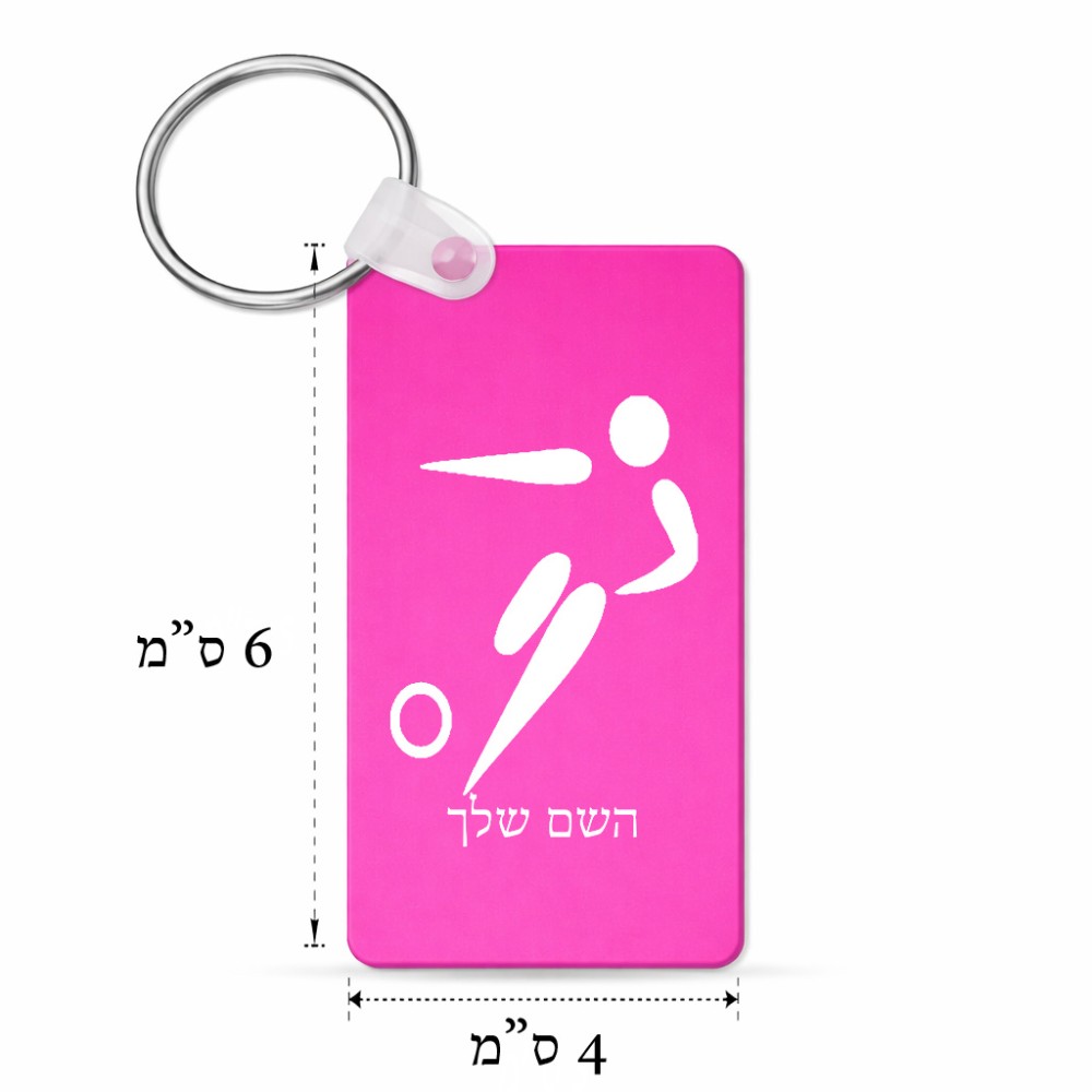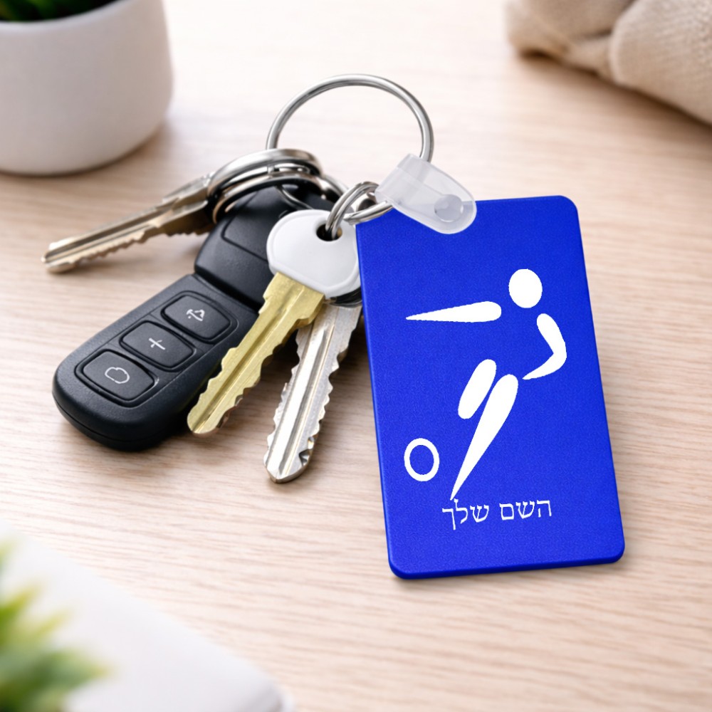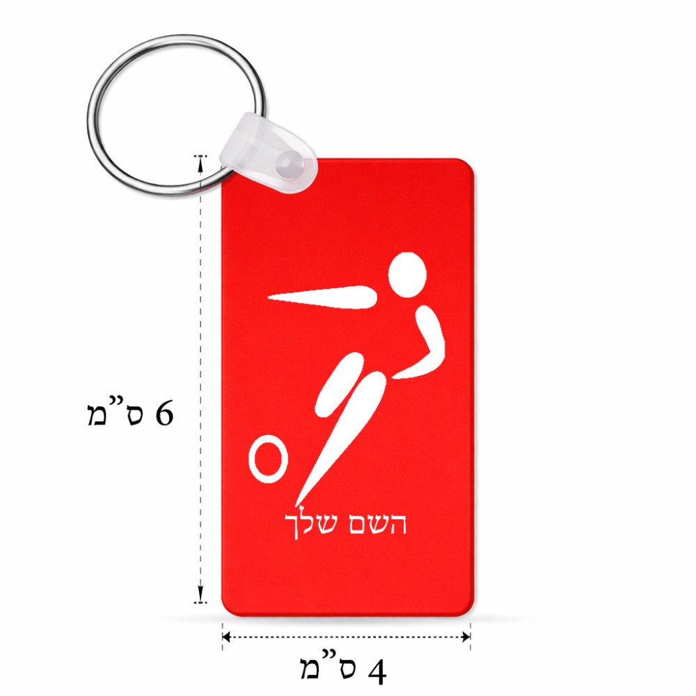 מחזיק מפתחות בצורת מלבן בעיצוב אישי עם השם שלך בעיצוב כדורגל אולימפי גודל המחזיק 6 × 4 ס"מ. את השם המבוקש ניתן לציין בהזמנה, אם לא צויין אנחנו ניצור קשר לבירור.