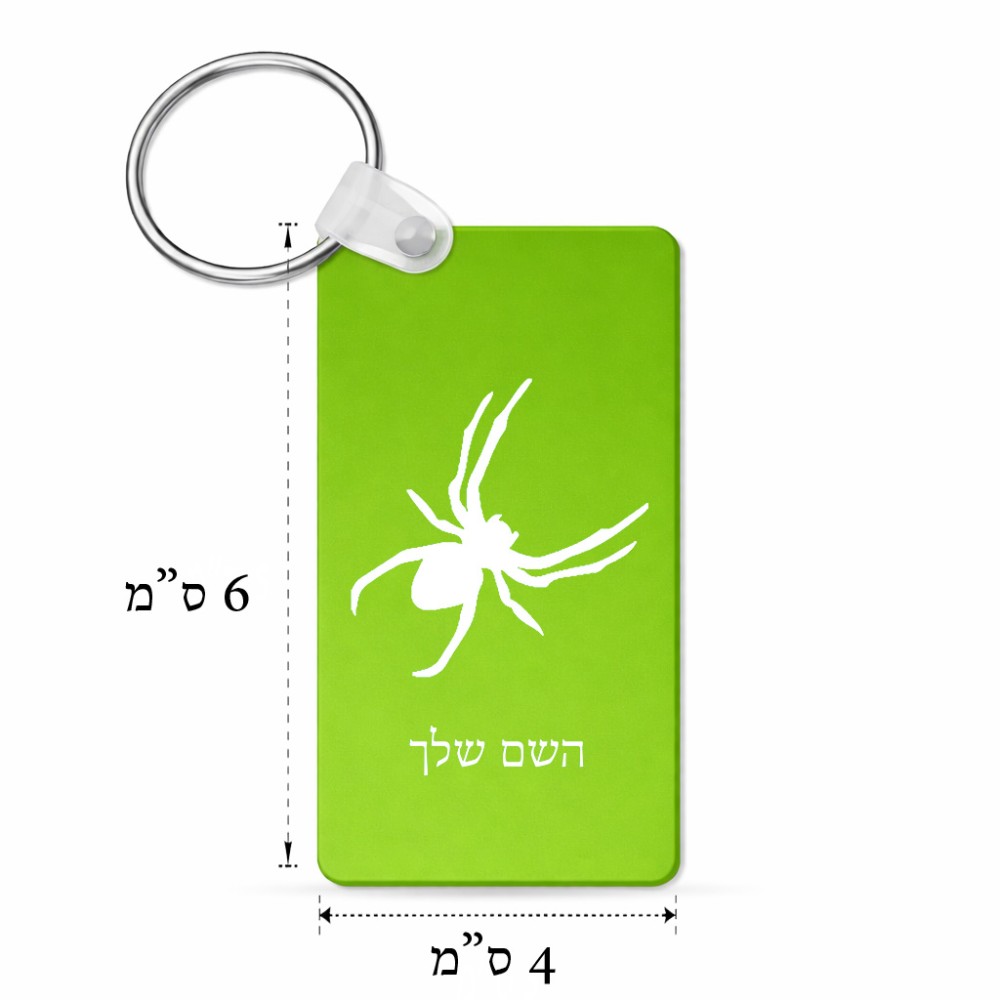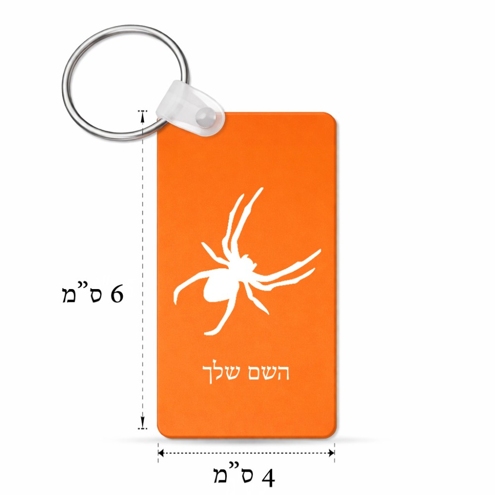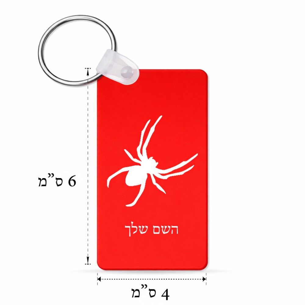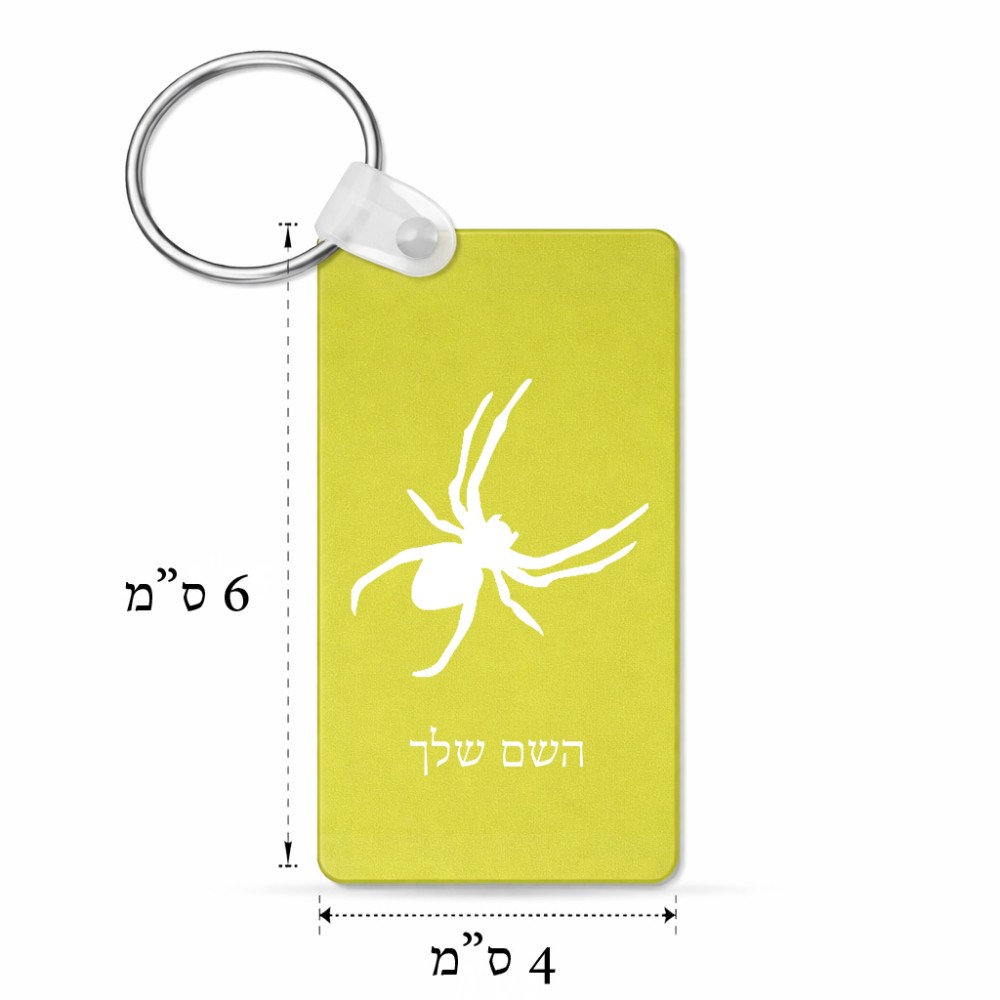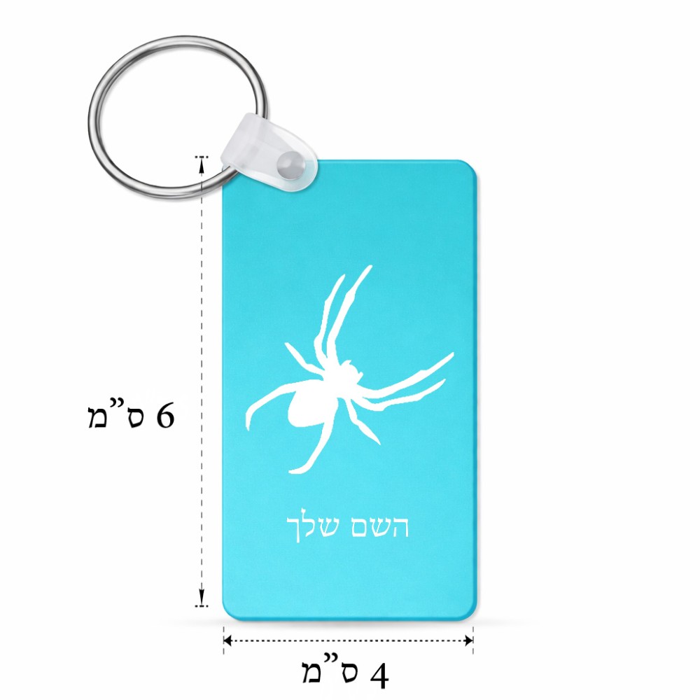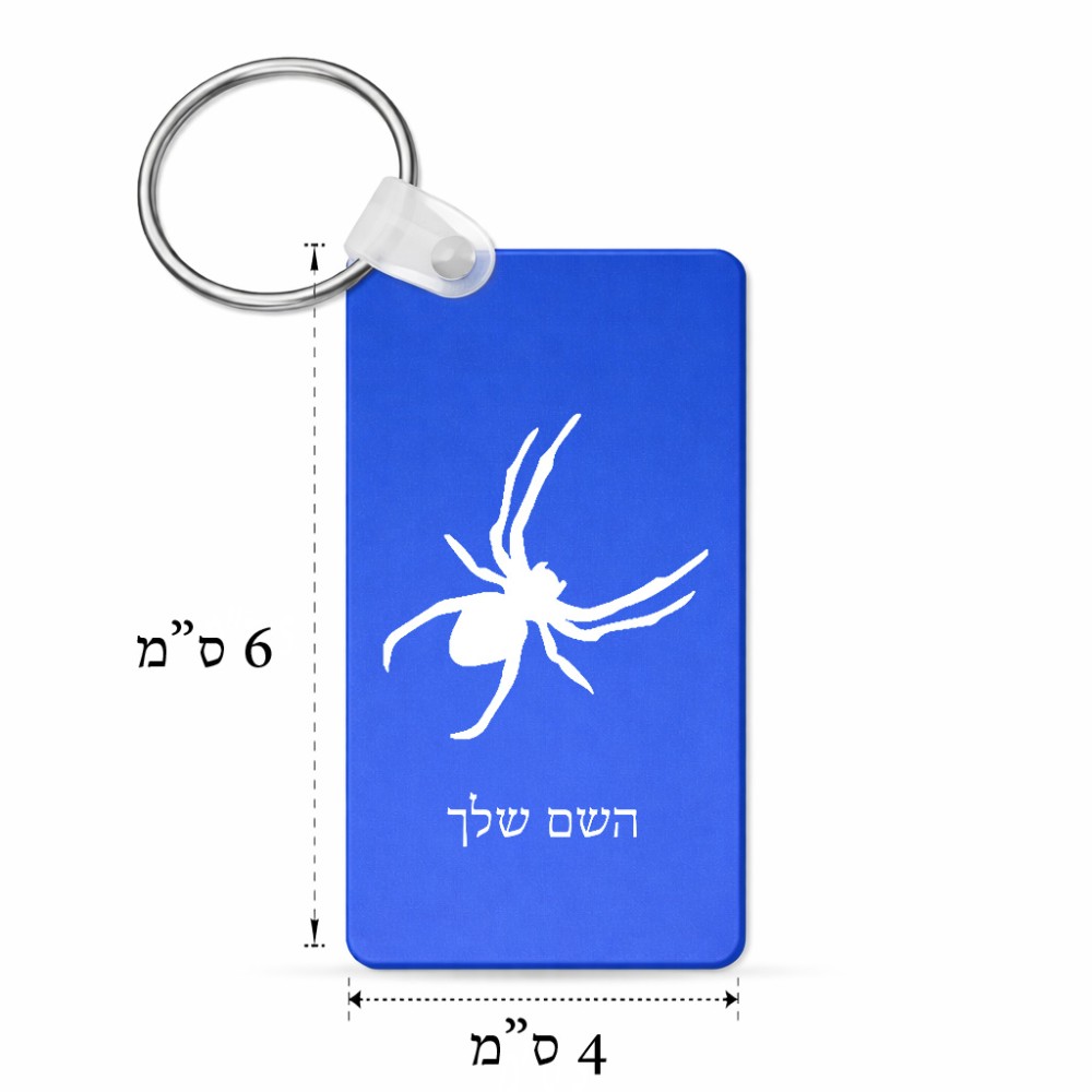 מחזיק מפתחות בצורת מלבן בעיצוב אישי עם השם שלך בעיצוב עכביש גודל המחזיק 6 × 4 ס"מ. את השם המבוקש ניתן לציין בהזמנה, אם לא צויין אנחנו ניצור קשר לבירור.