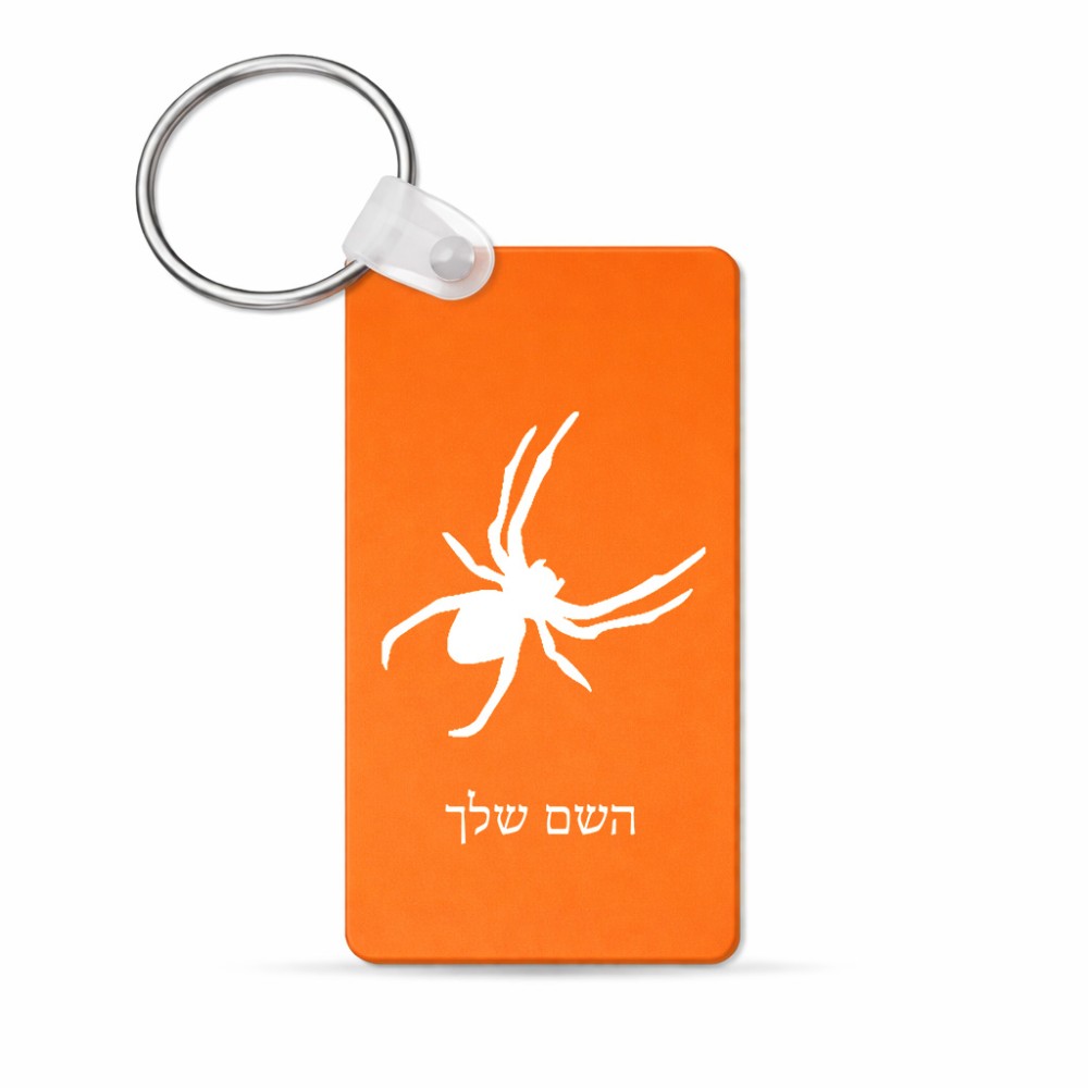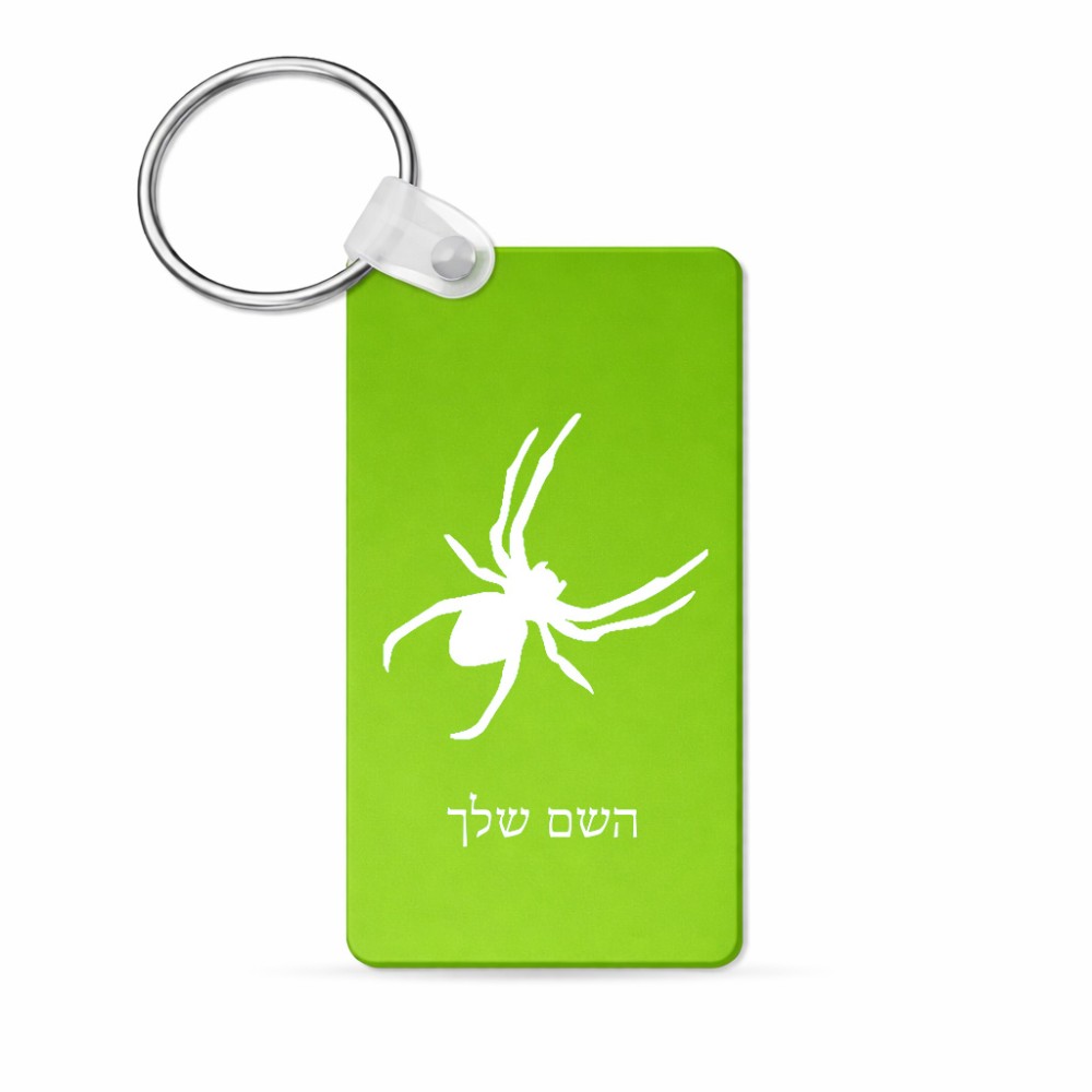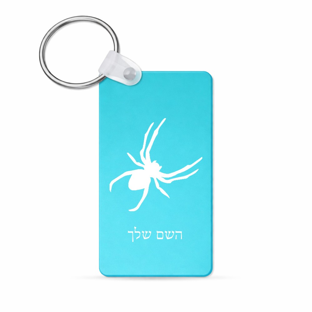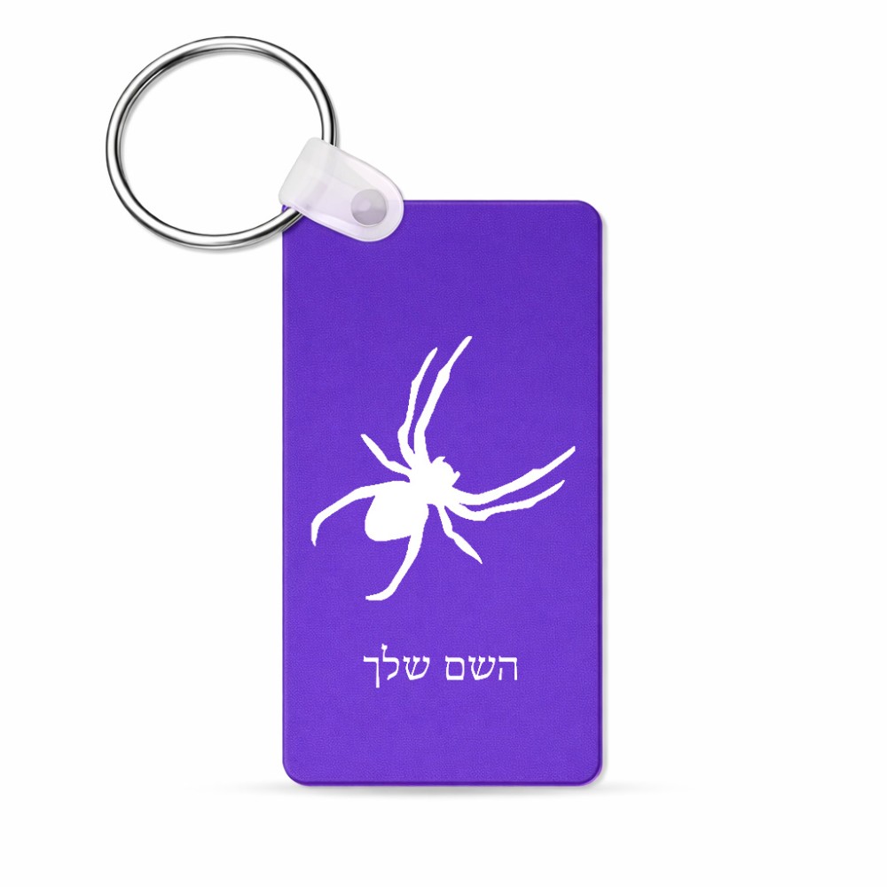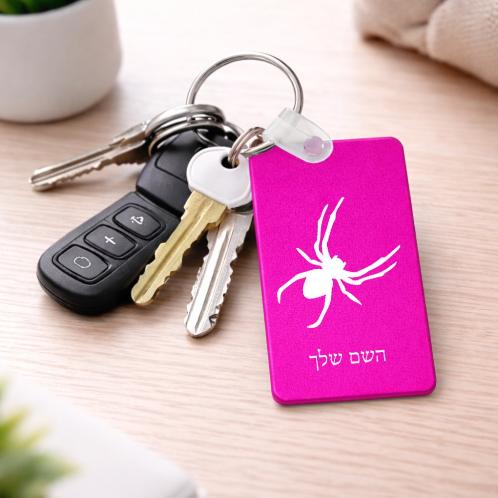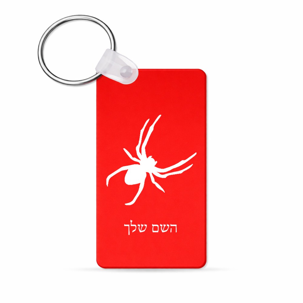 מחזיק מפתחות בצורת מלבן בעיצוב אישי עם השם שלך בעיצוב עכביש גודל המחזיק 6 × 4 ס"מ. את השם המבוקש ניתן לציין בהזמנה, אם לא צויין אנחנו ניצור קשר לבירור.