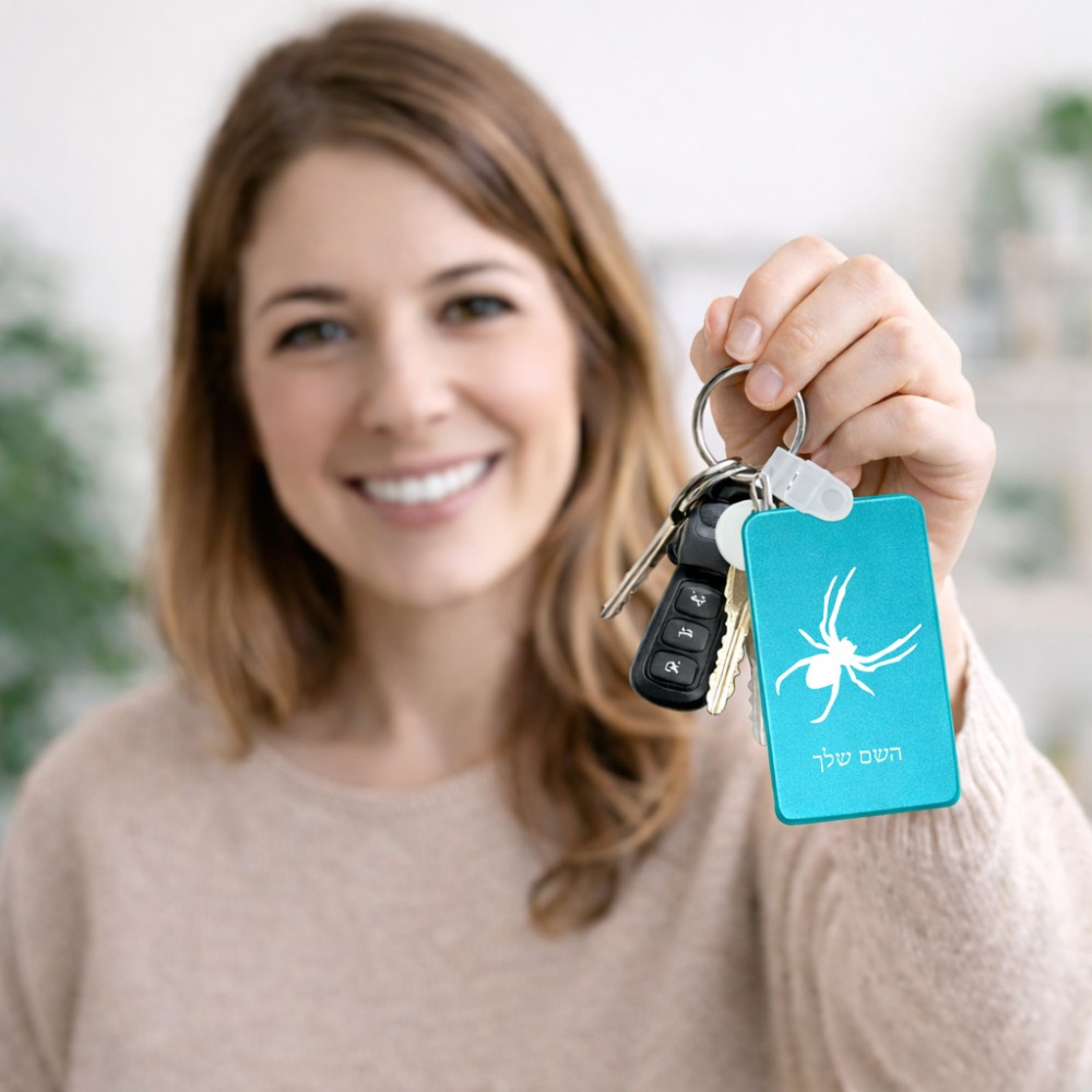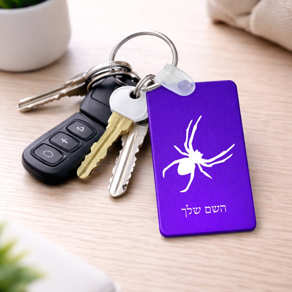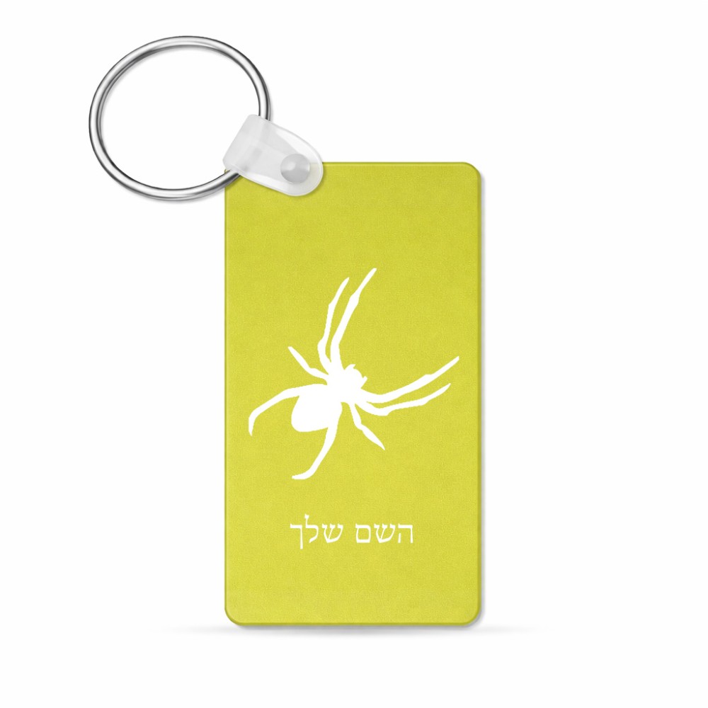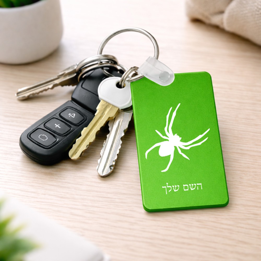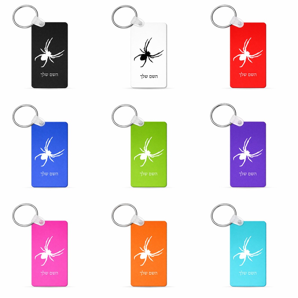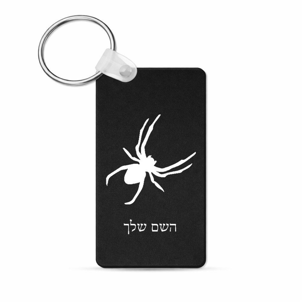 מחזיק מפתחות בצורת מלבן בעיצוב אישי עם השם שלך בעיצוב עכביש גודל המחזיק 6 × 4 ס"מ. את השם המבוקש ניתן לציין בהזמנה, אם לא צויין אנחנו ניצור קשר לבירור.