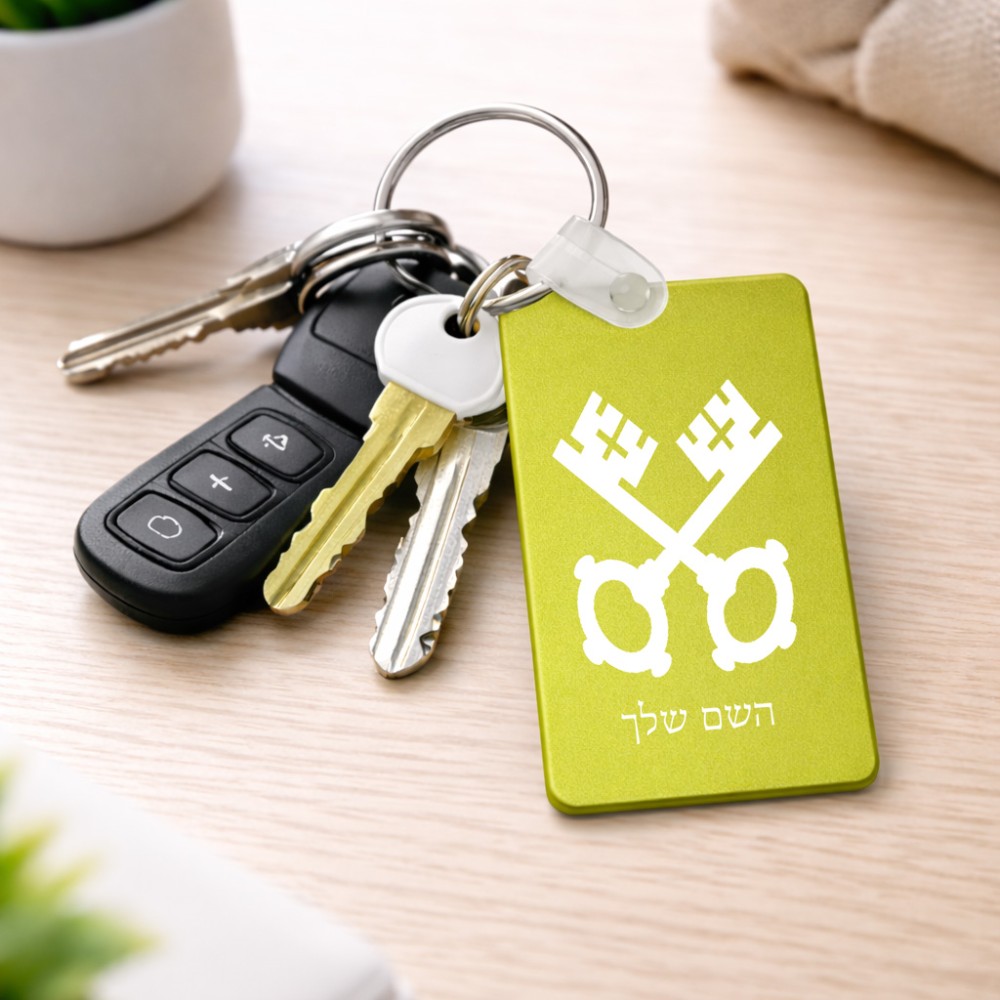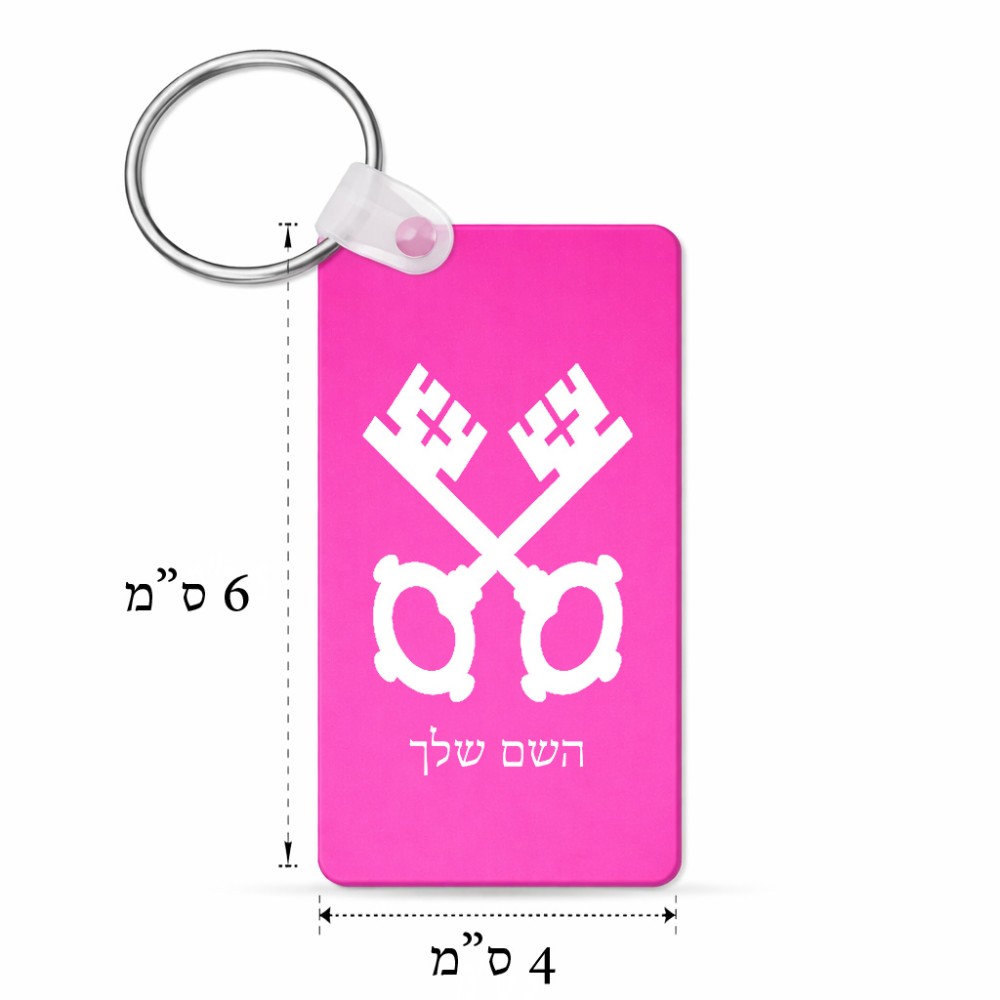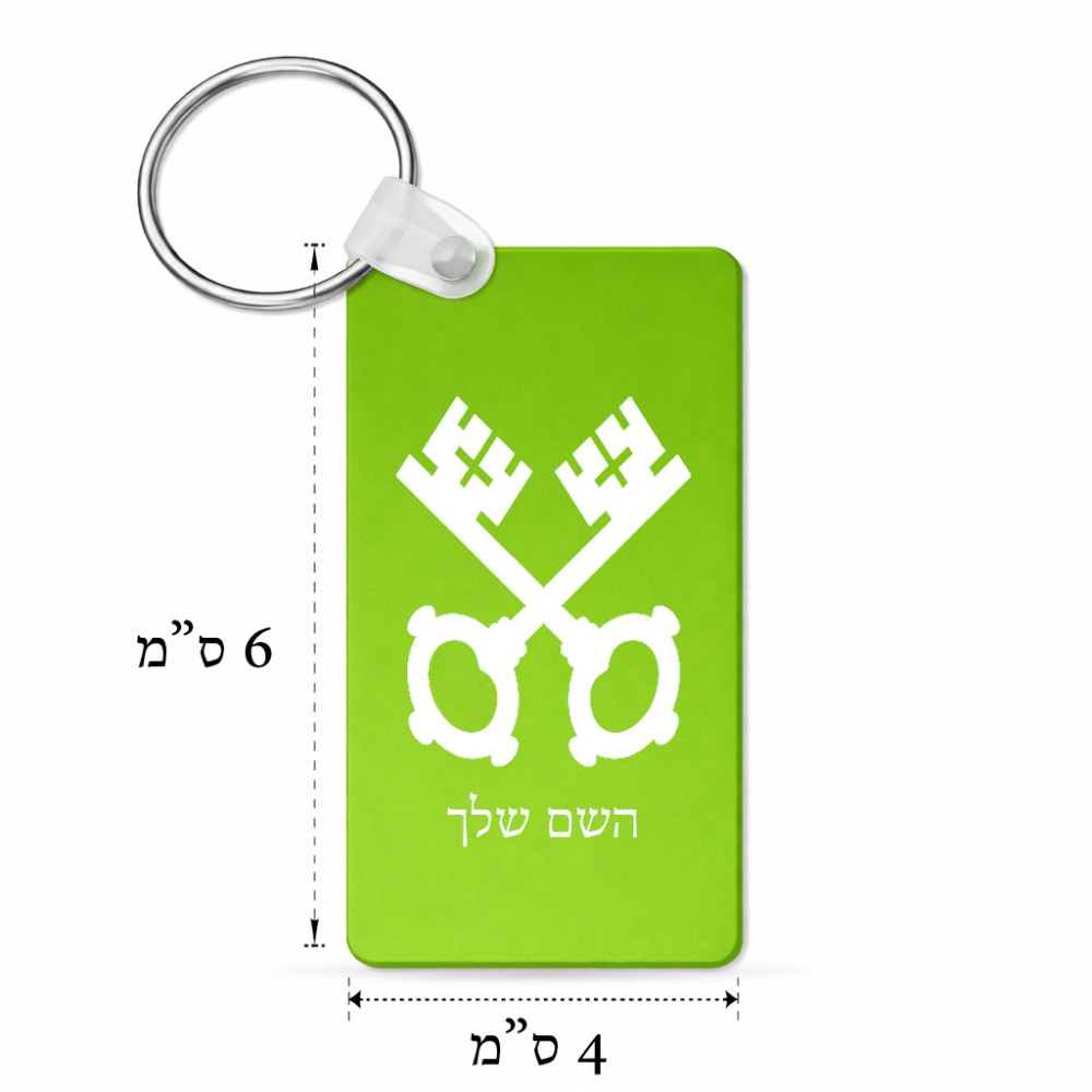 מחזיק מפתחות בצורת מלבן בעיצוב אישי עם השם שלך בעיצוב מפתחות גודל המחזיק 6 × 4 ס"מ. את השם המבוקש ניתן לציין בהזמנה, אם לא צויין אנחנו ניצור קשר לבירור.