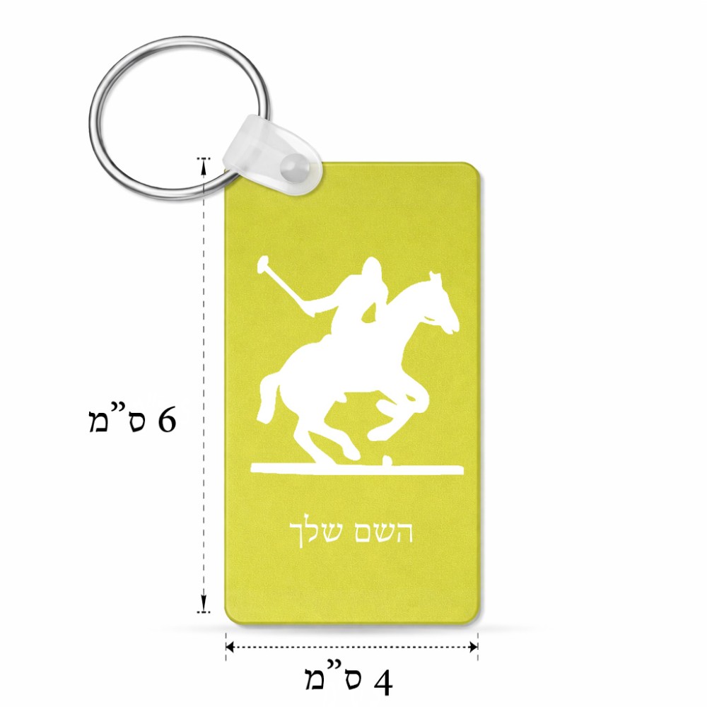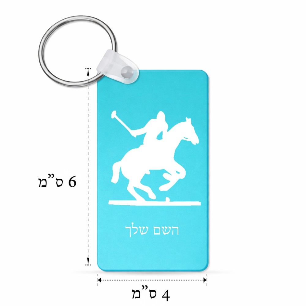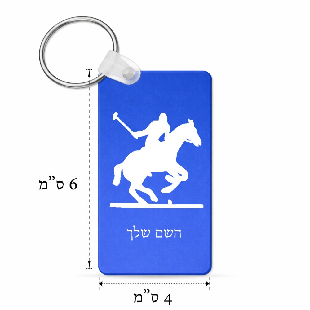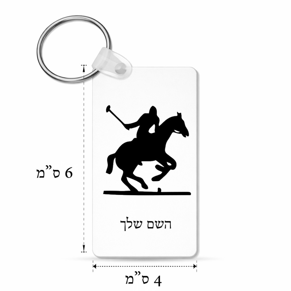 מחזיק מפתחות בצורת מלבן בעיצוב אישי עם השם שלך בעיצוב שחקן פולו - סוס גודל המחזיק 6 × 4 ס"מ. את השם המבוקש ניתן לציין בהזמנה, אם לא צויין אנחנו ניצור קשר לבירור.