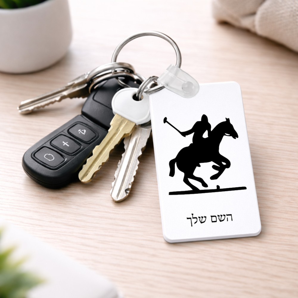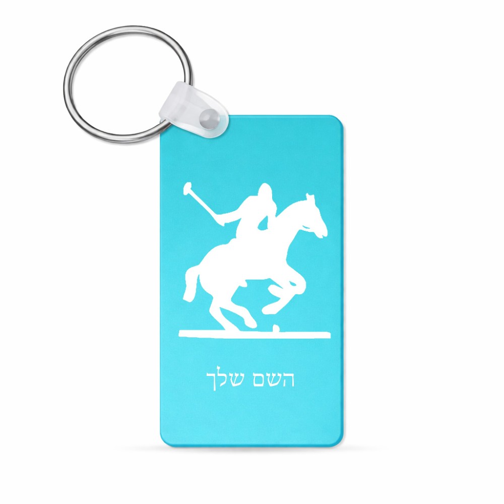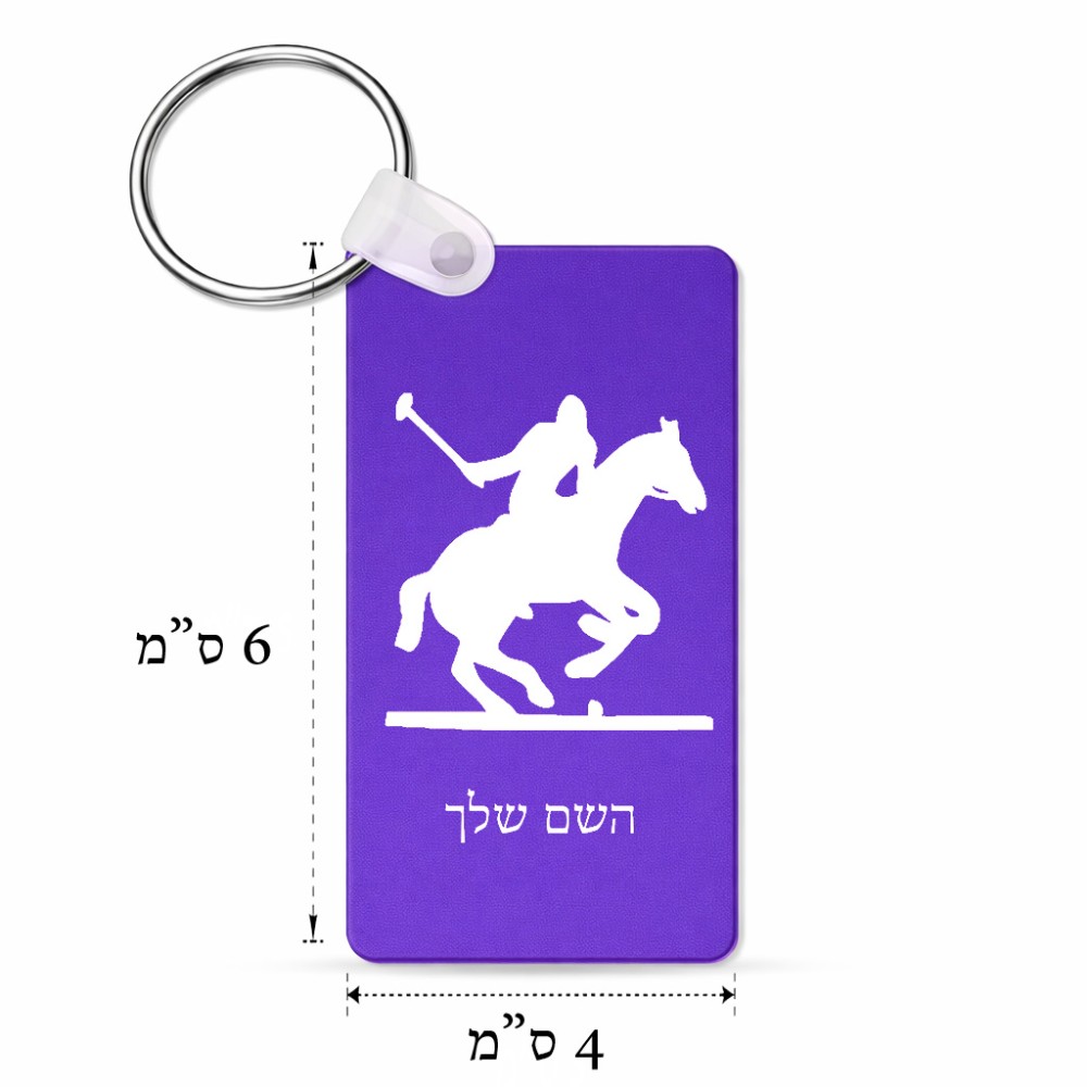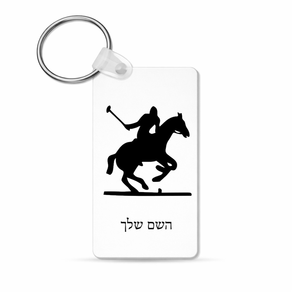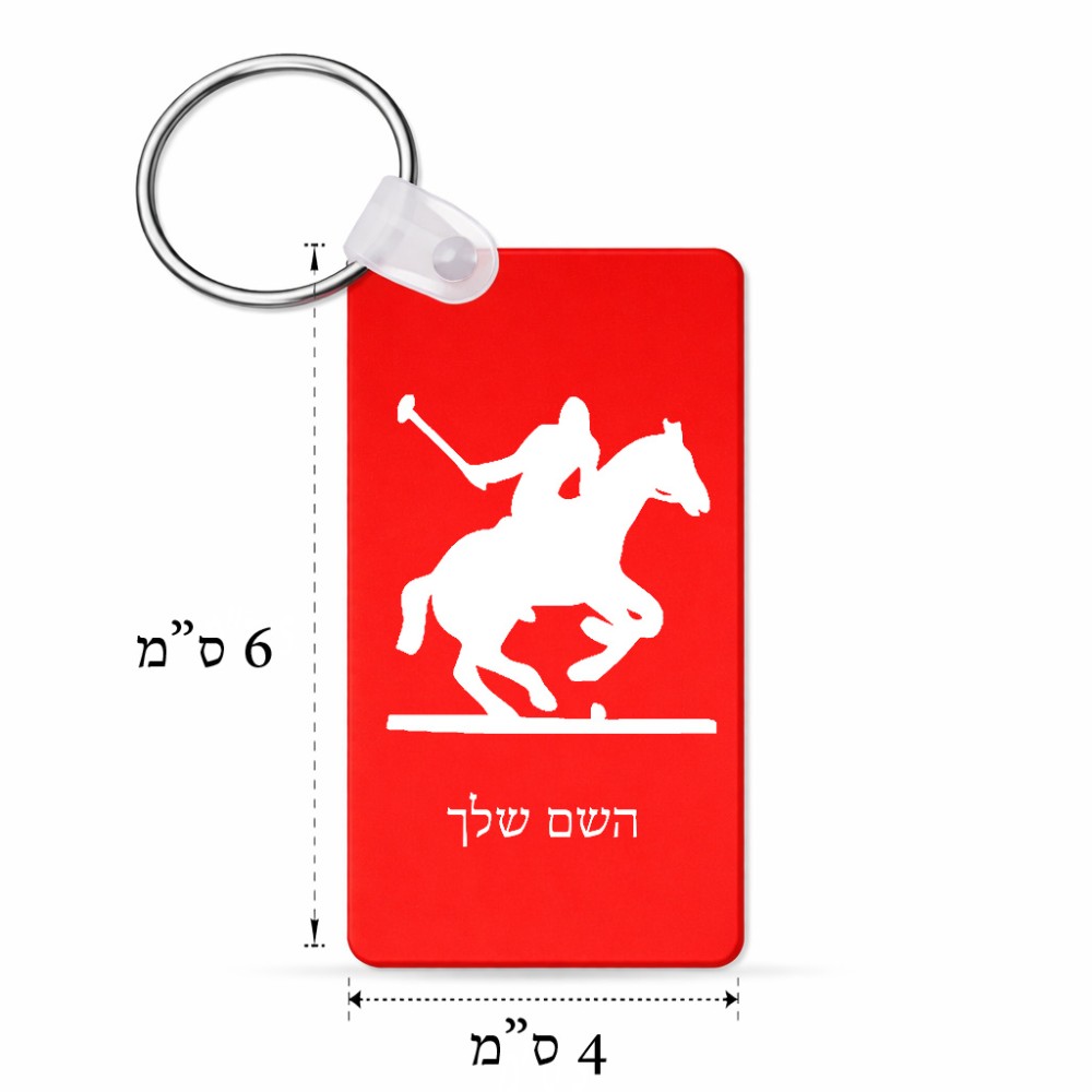 מחזיק מפתחות בצורת מלבן בעיצוב אישי עם השם שלך בעיצוב שחקן פולו - סוס גודל המחזיק 6 × 4 ס"מ. את השם המבוקש ניתן לציין בהזמנה, אם לא צויין אנחנו ניצור קשר לבירור.