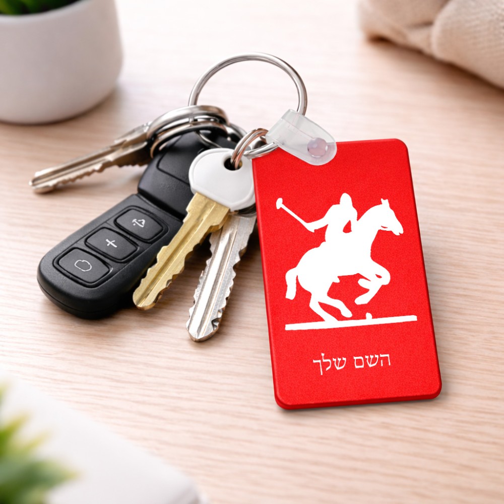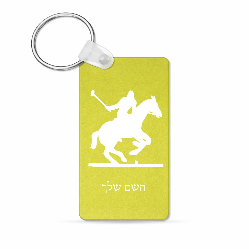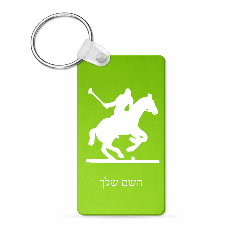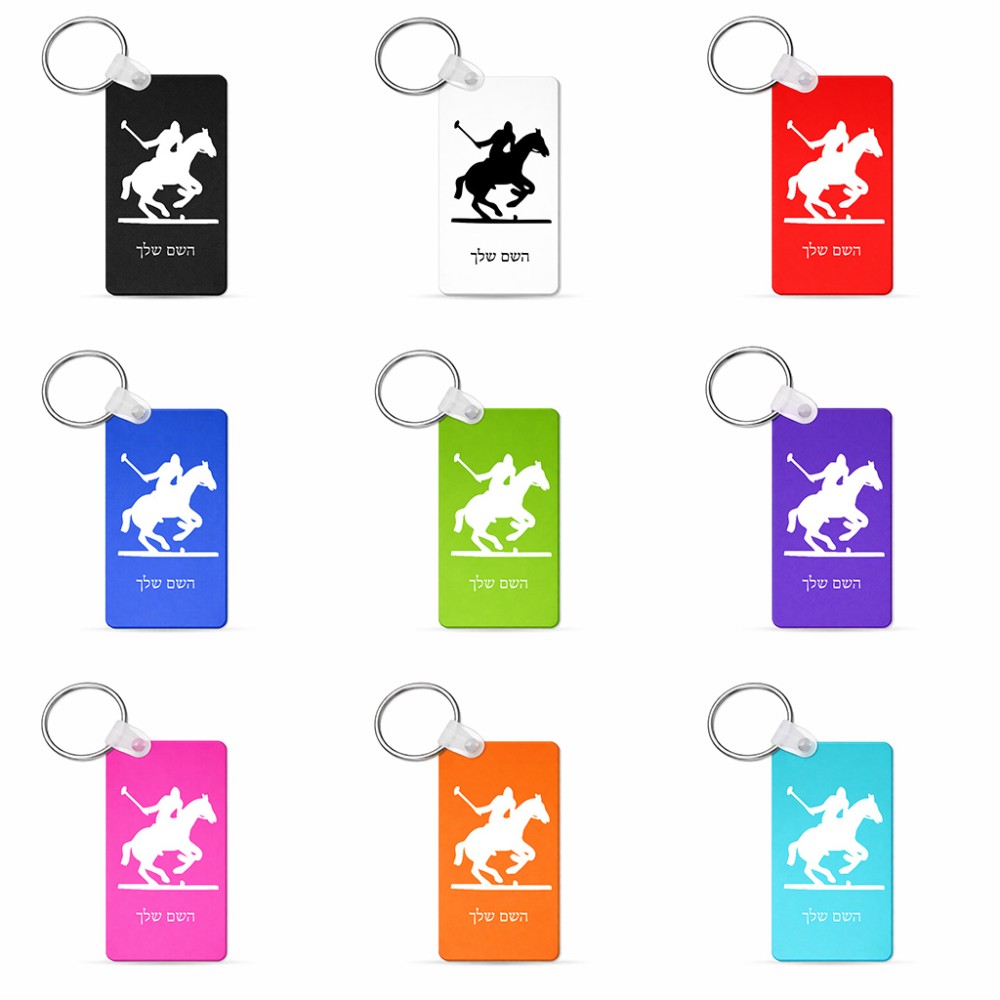 מחזיק מפתחות בצורת מלבן בעיצוב אישי עם השם שלך בעיצוב שחקן פולו - סוס גודל המחזיק 6 × 4 ס"מ. את השם המבוקש ניתן לציין בהזמנה, אם לא צויין אנחנו ניצור קשר לבירור.