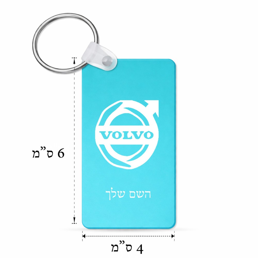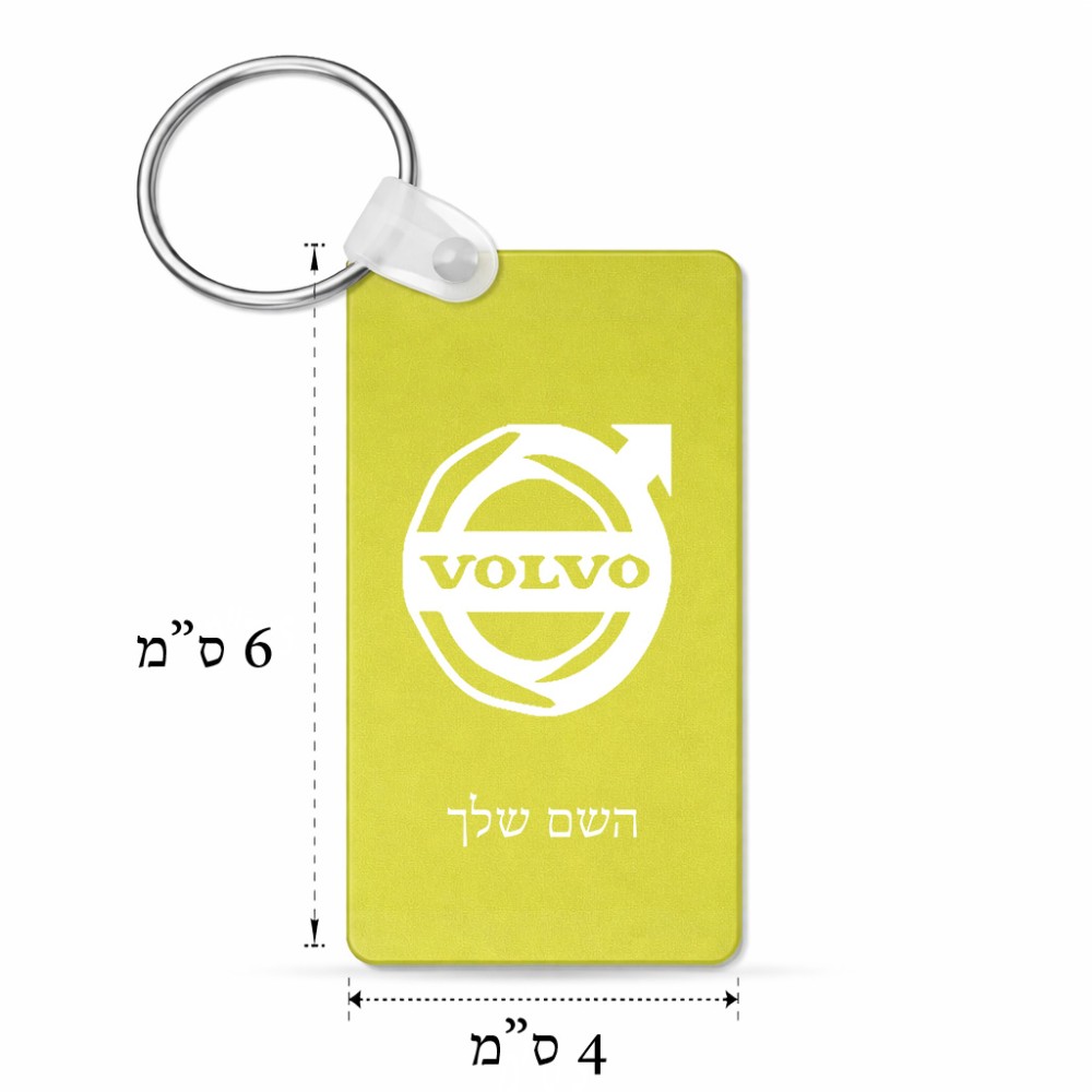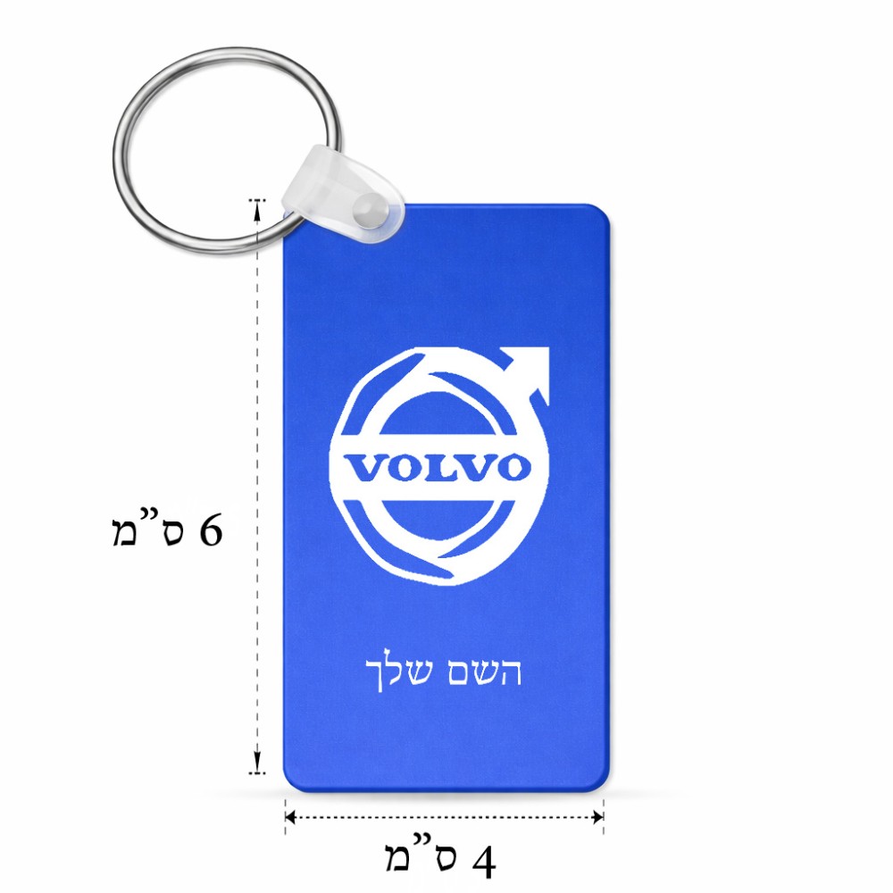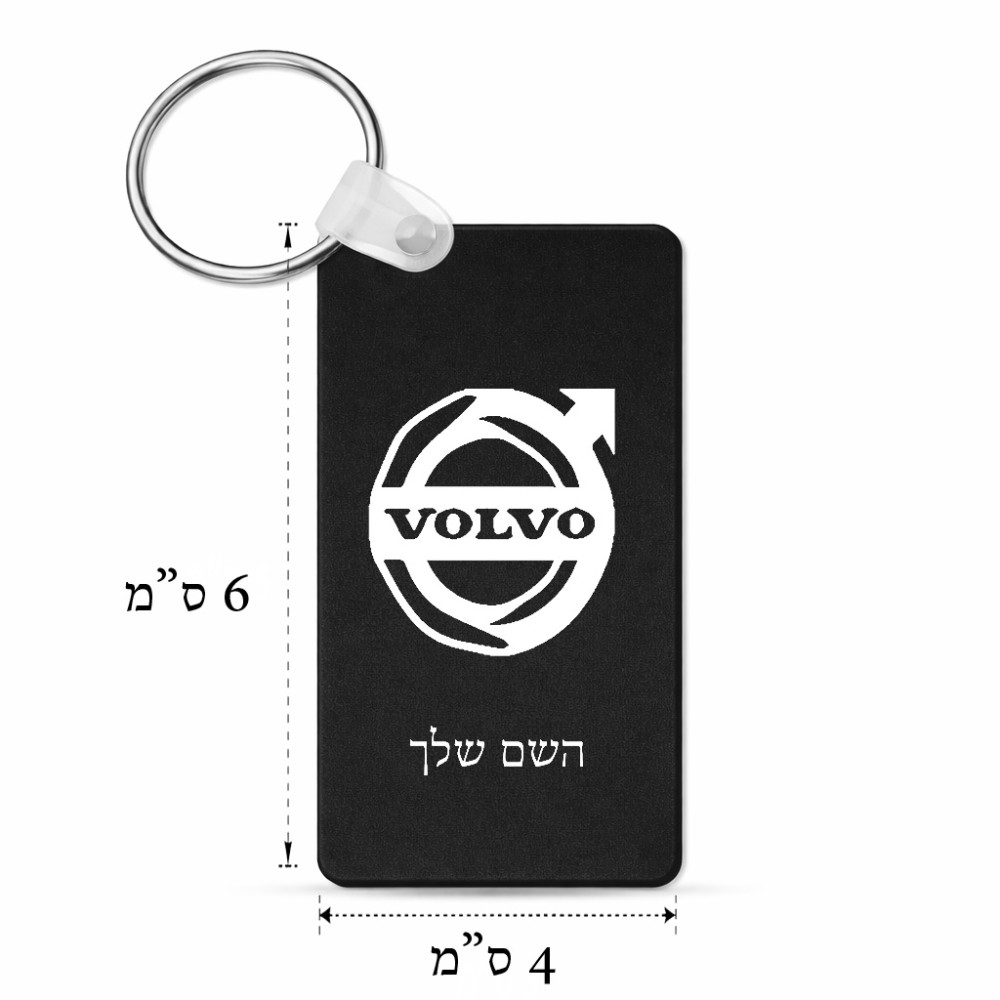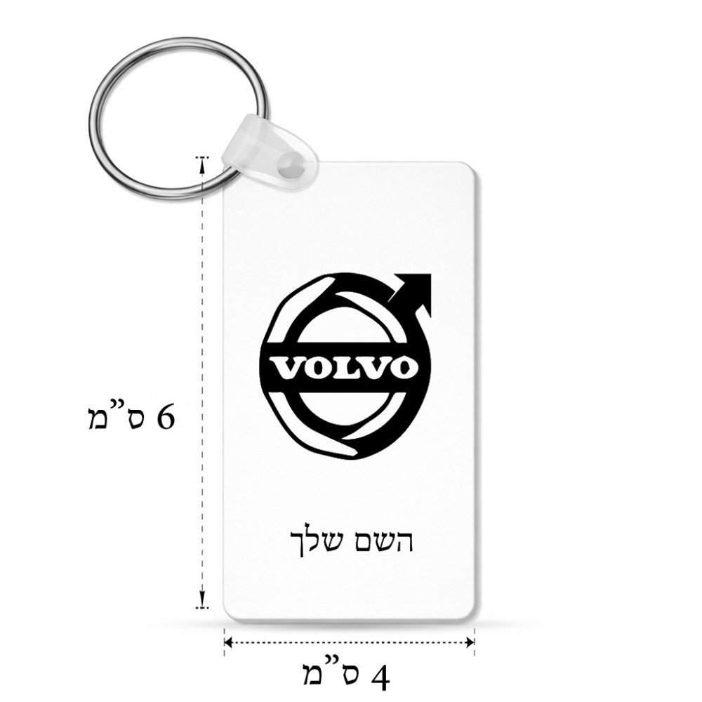 מחזיק מפתחות בצורת מלבן בעיצוב אישי עם השם שלך בעיצוב וולוו גודל המחזיק 6 × 4 ס"מ