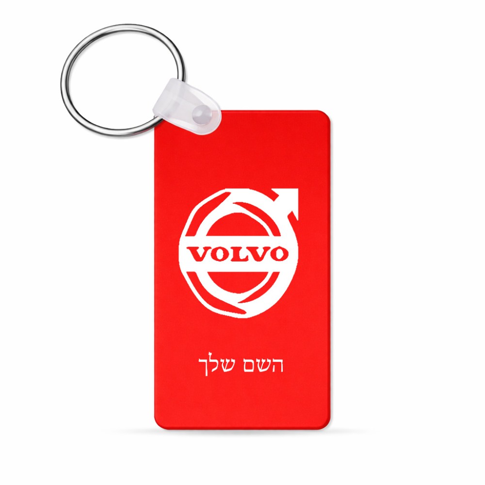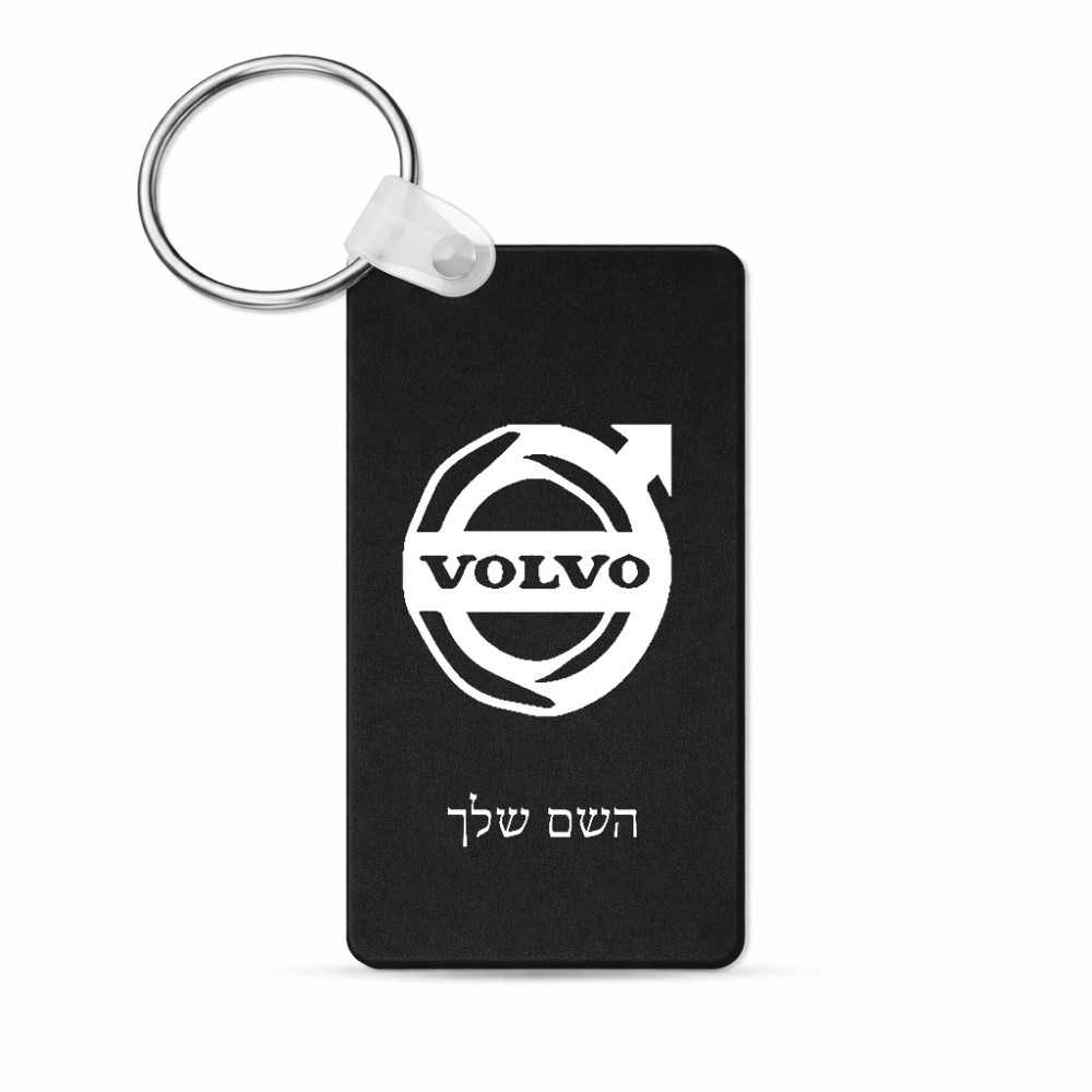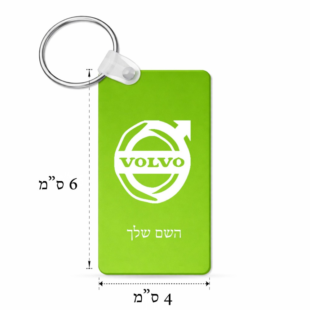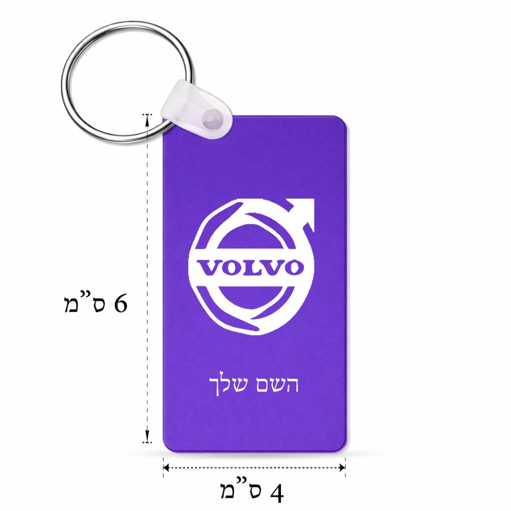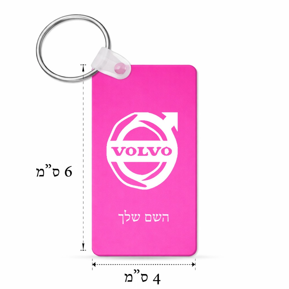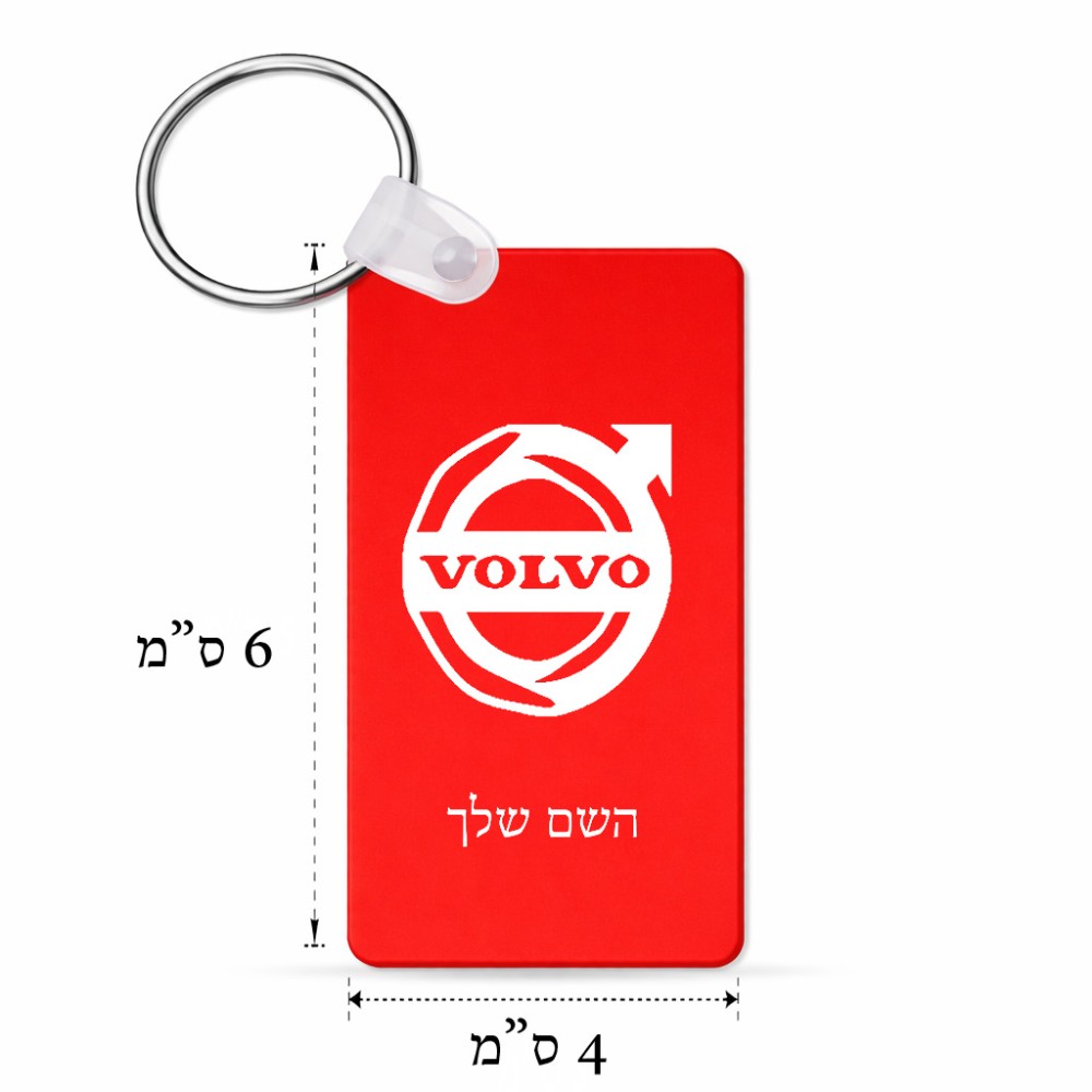מחזיק מפתחות בצורת מלבן בעיצוב אישי עם השם שלך בעיצוב וולוו גודל המחזיק 6 × 4 ס"מ
