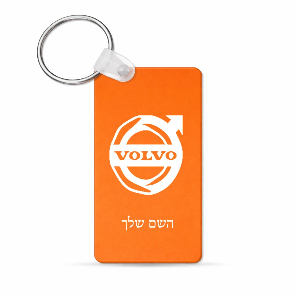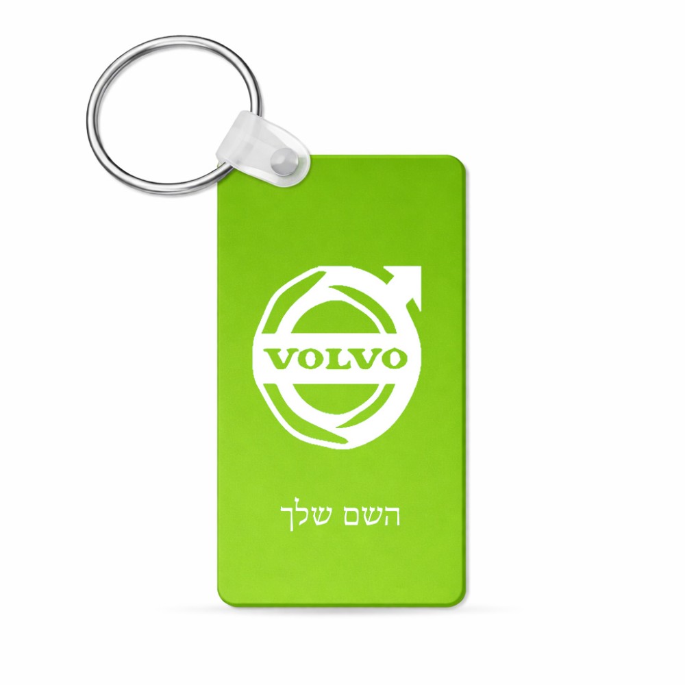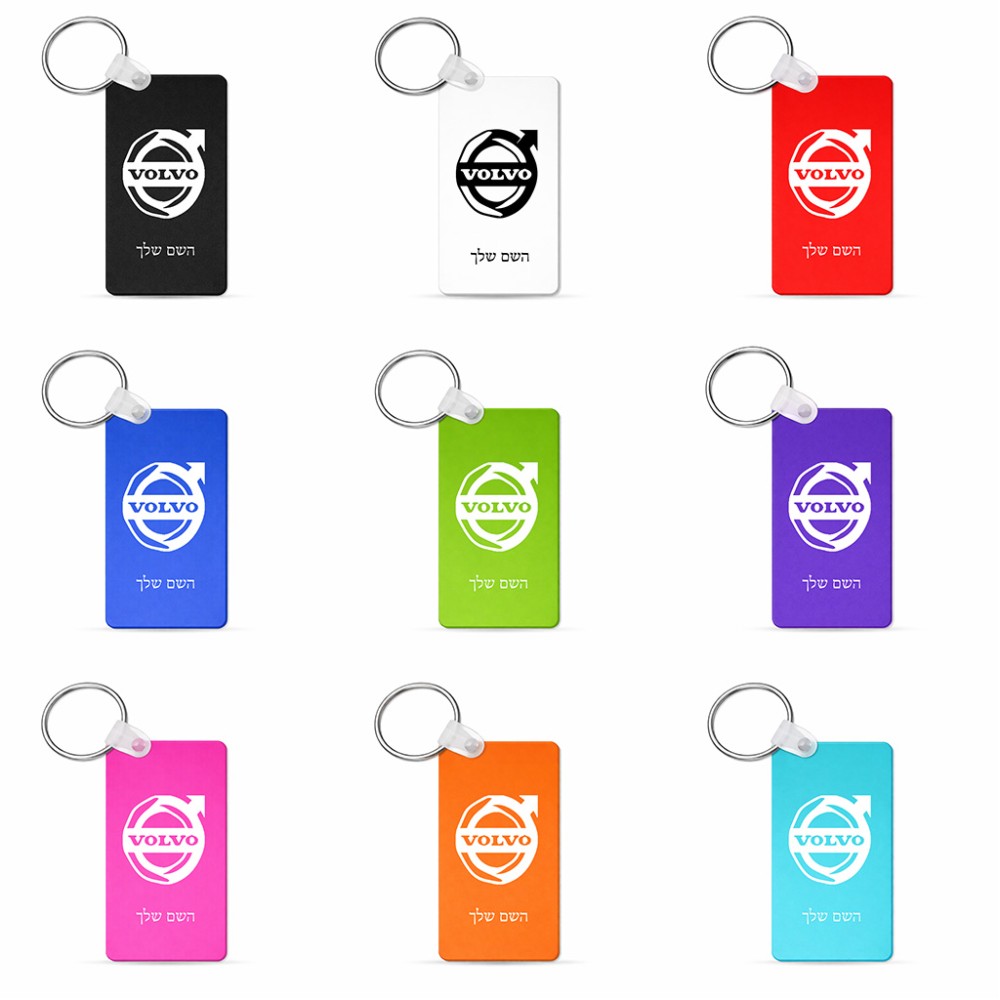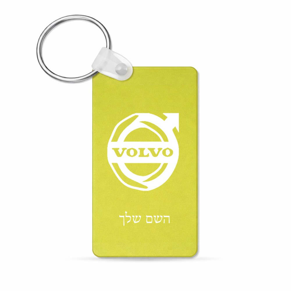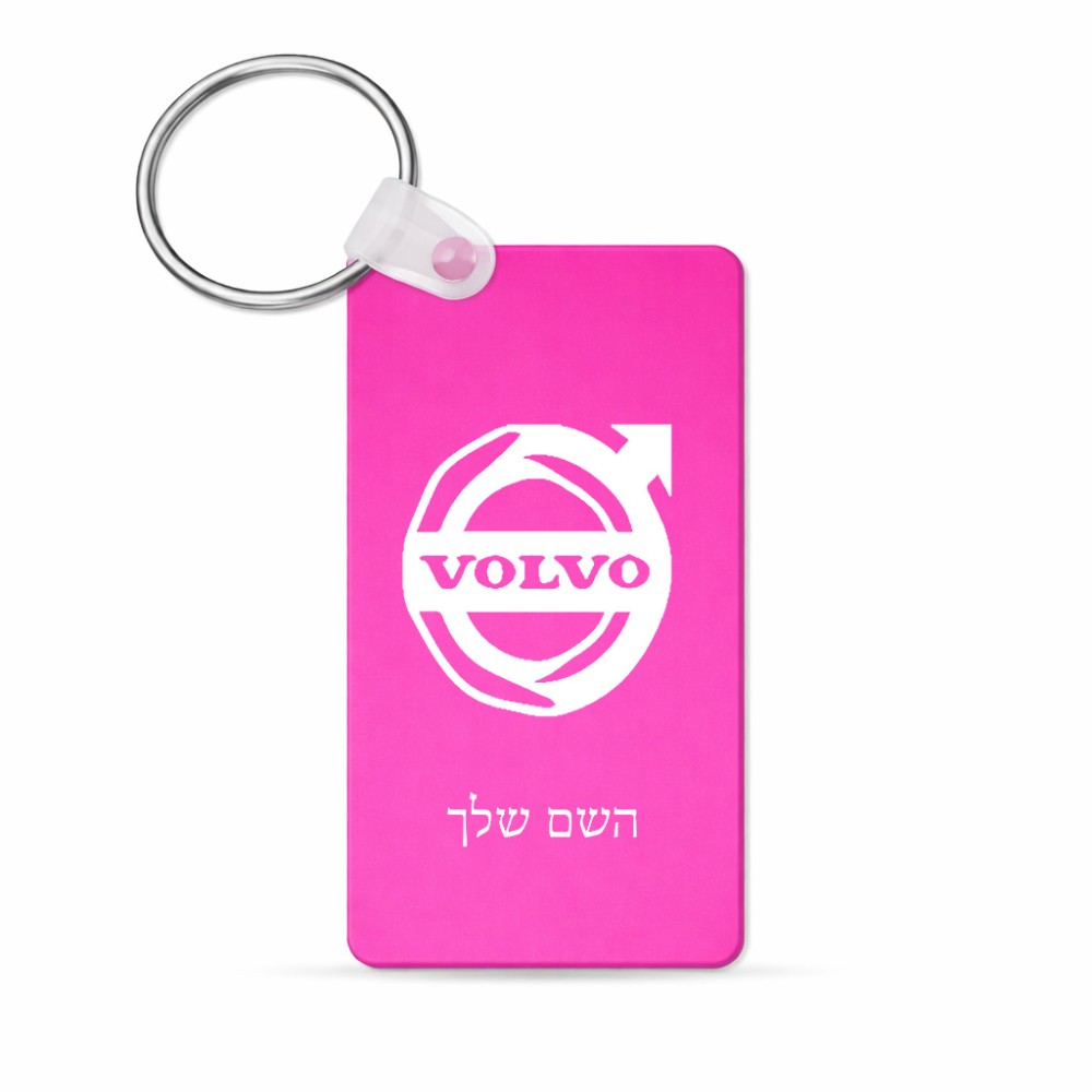 מחזיק מפתחות בצורת מלבן בעיצוב אישי עם השם שלך בעיצוב וולוו גודל המחזיק 6 × 4 ס"מ
